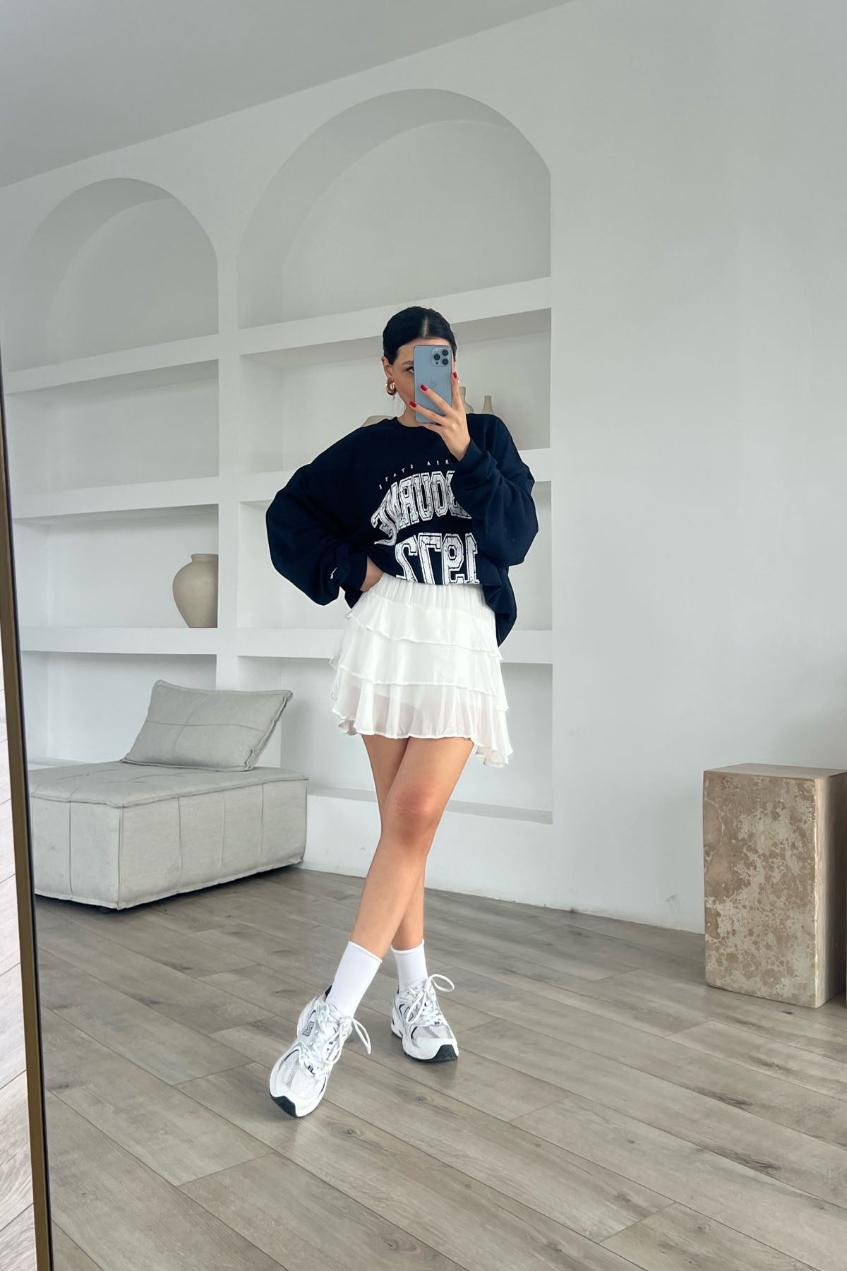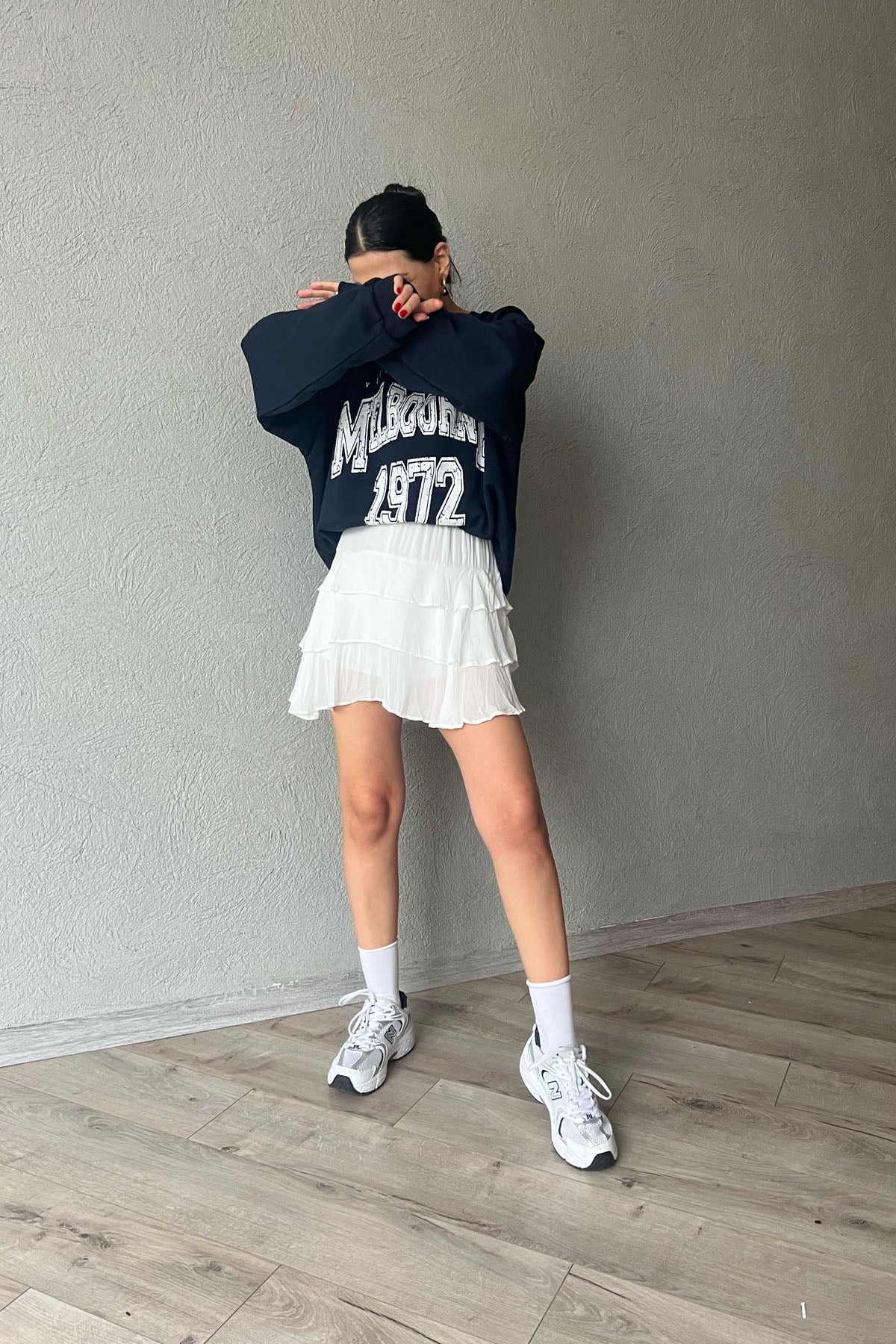 Beyaz Fırfır Detaylı Beli Lastikli Mini Etek SY-1769-Beyaz
