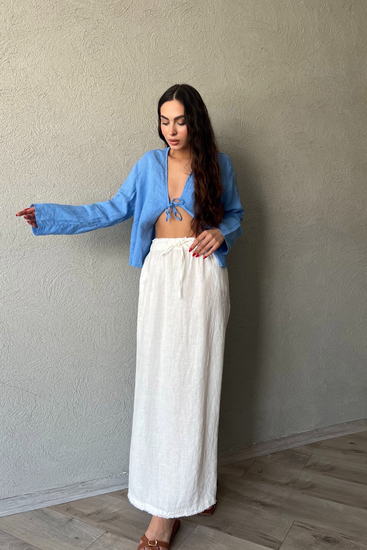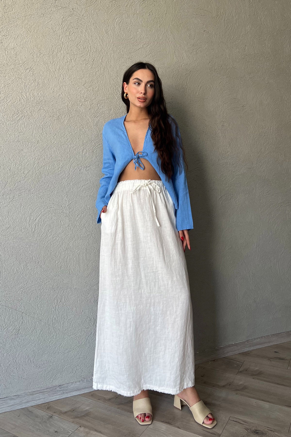 Ürün Detayları ;Beli Bağlama Detaylı Uzun Keten Etek