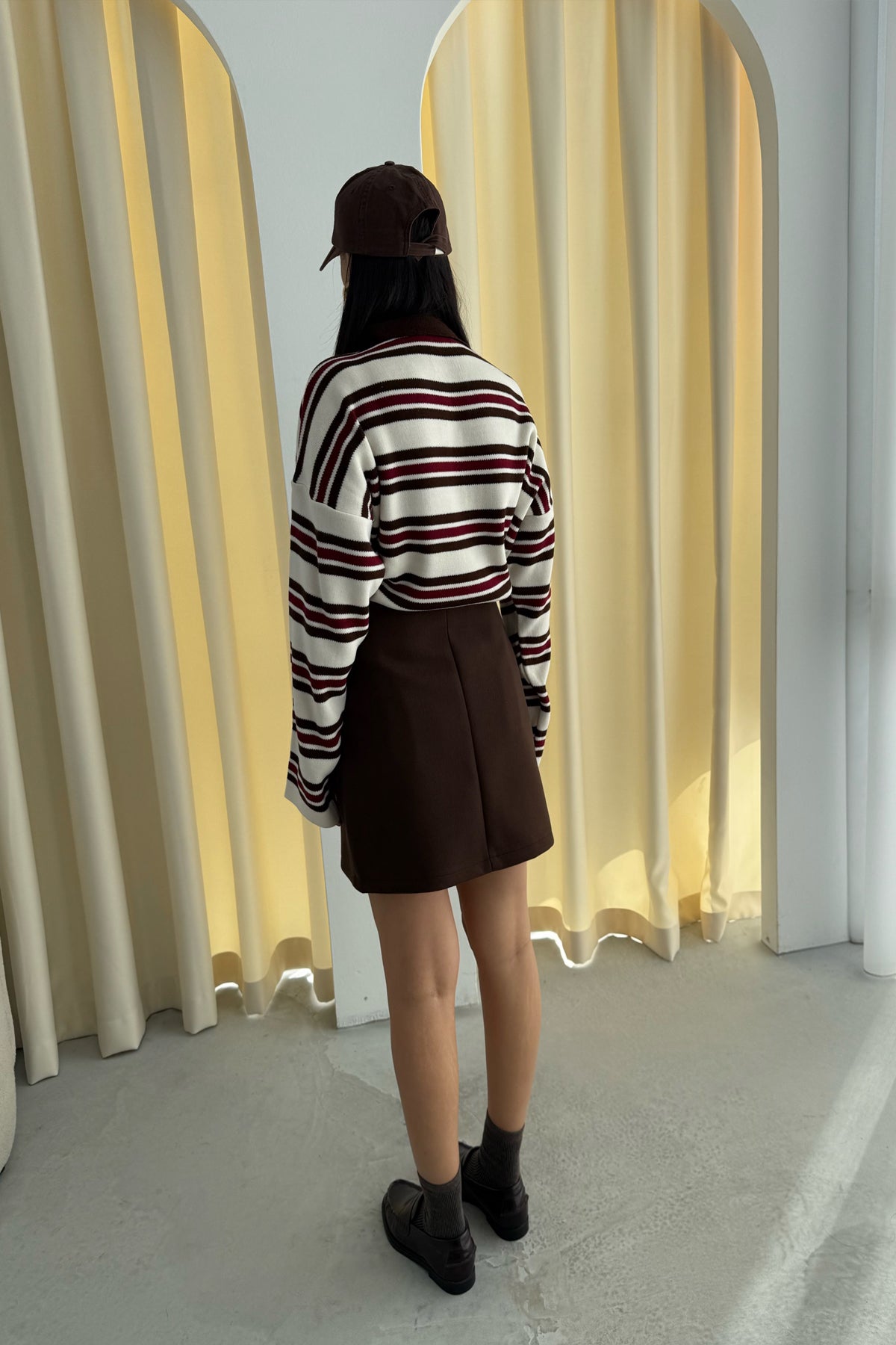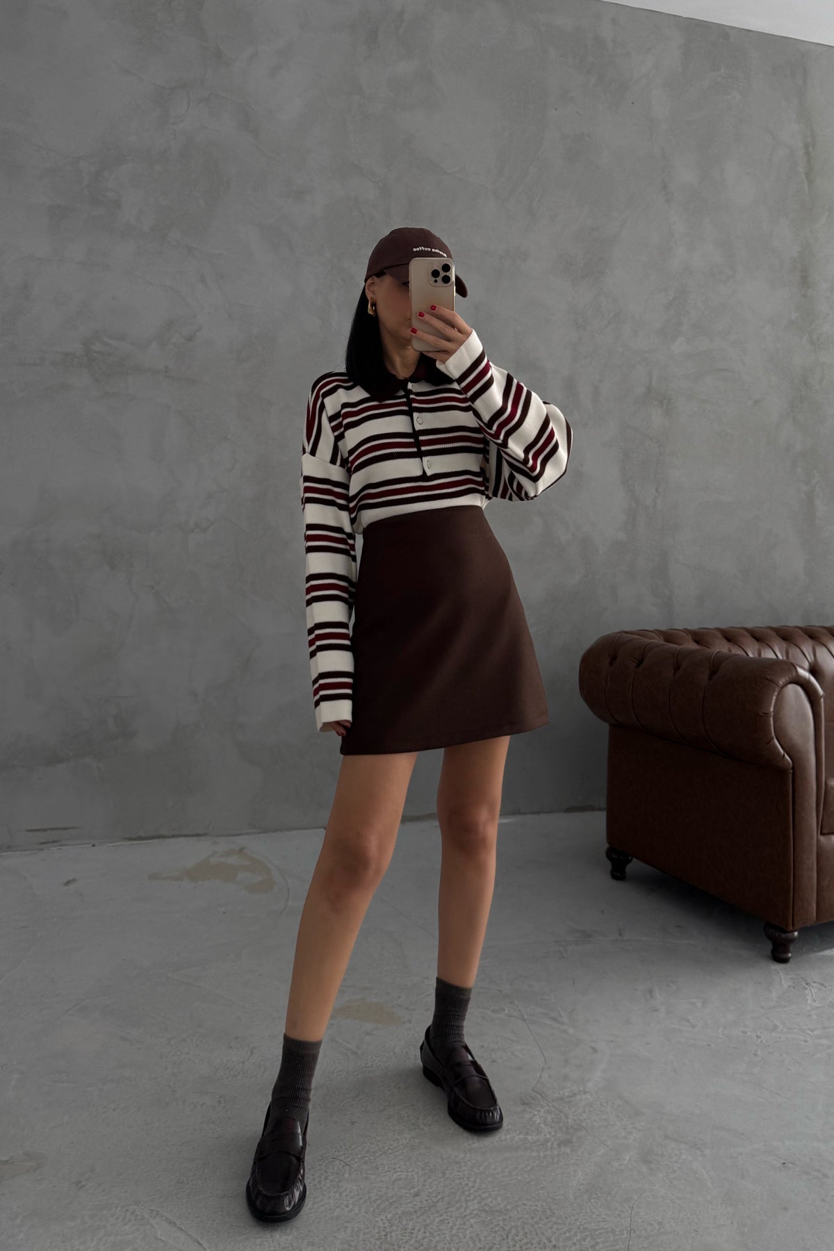 Kahve Kısa Kaşe Etek SY-3480-Kahverengi