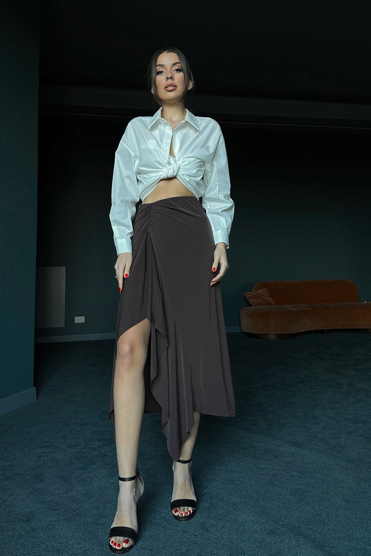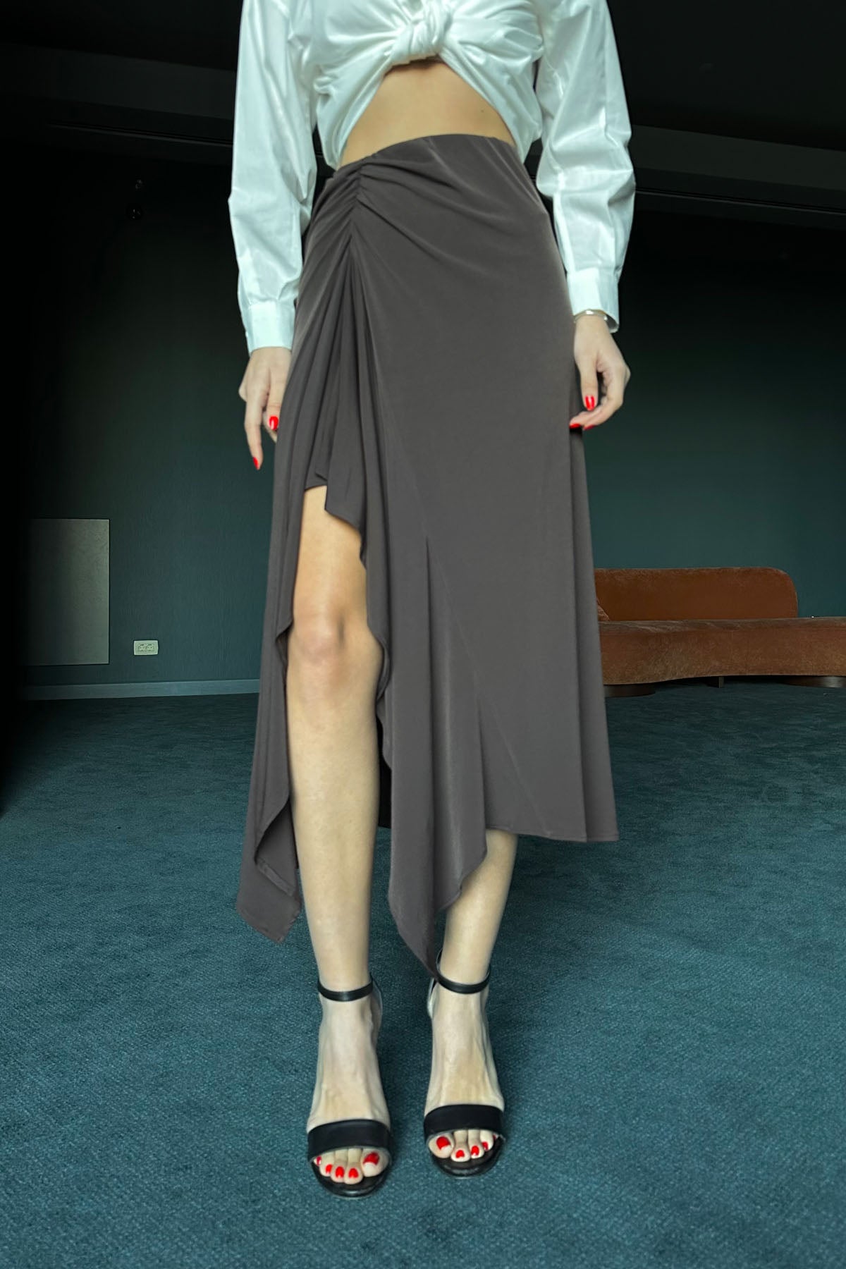 Ürün Detayları ;. Seda Yalçın Atelier ' de en iyi etek fırsatları ! Önü büzgü detaylı maxi etek sezonun kurtarıcısı olacak !