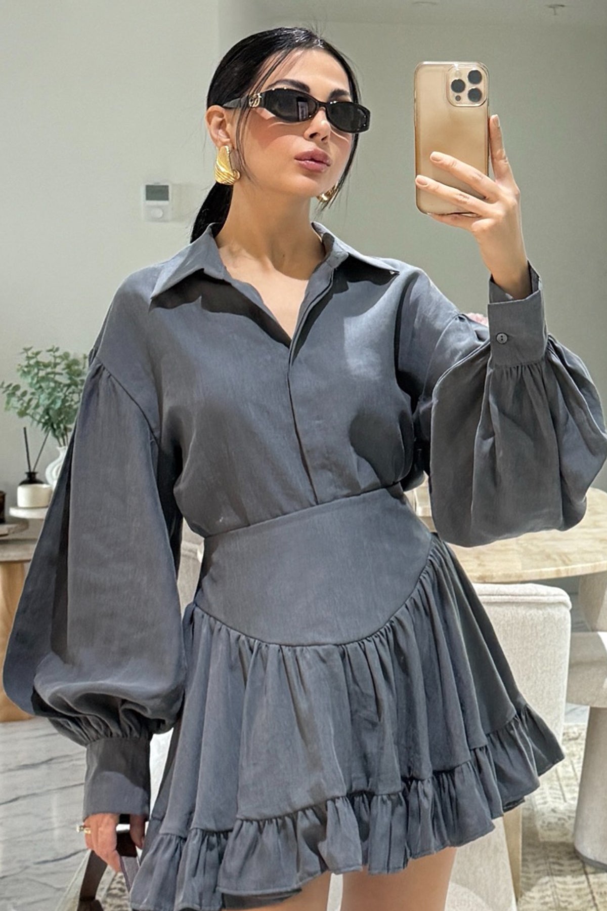 Korse Belli Mini Etek SY-3564-Gri