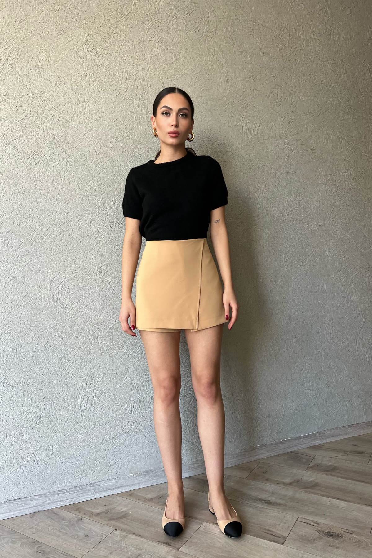 Koyu Bej Asimetrik Şort Etek SY-1650-Koyu Bej