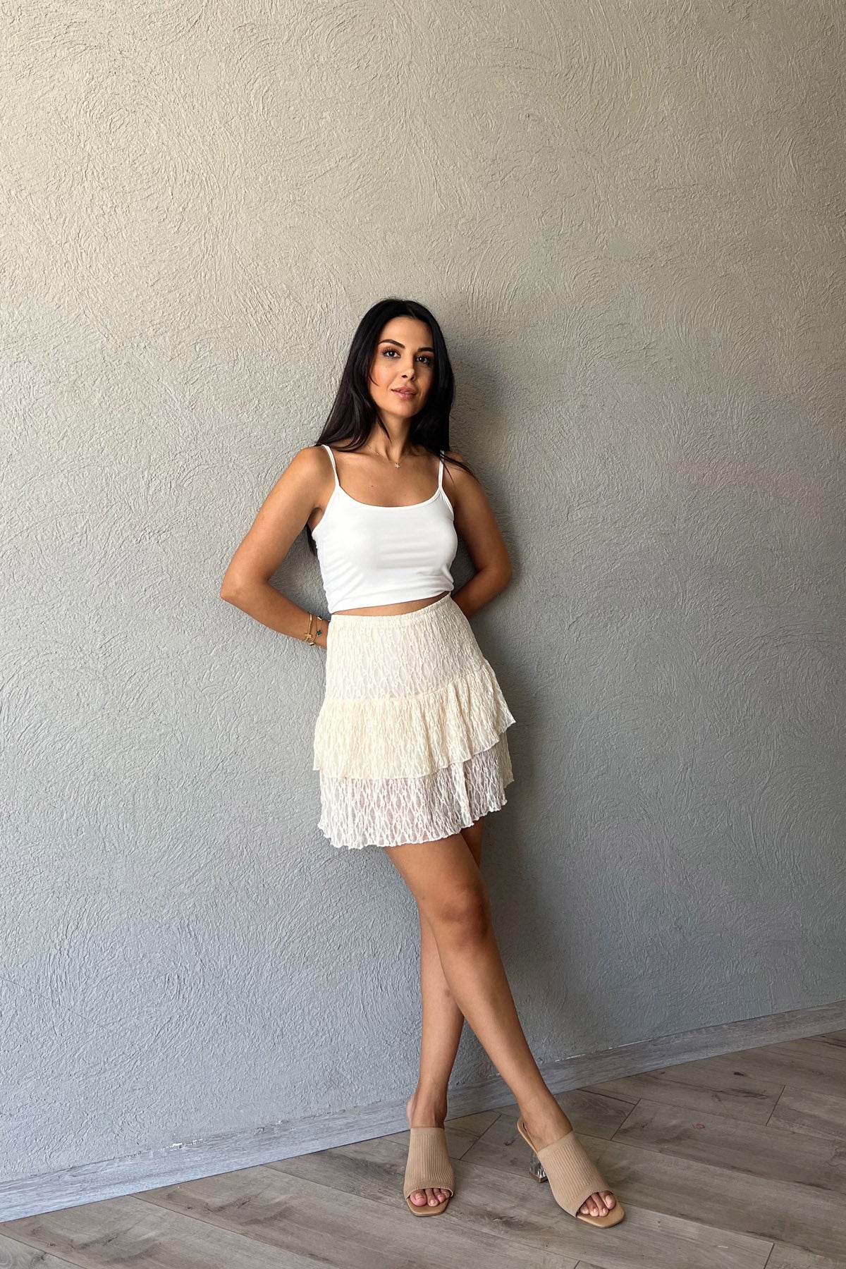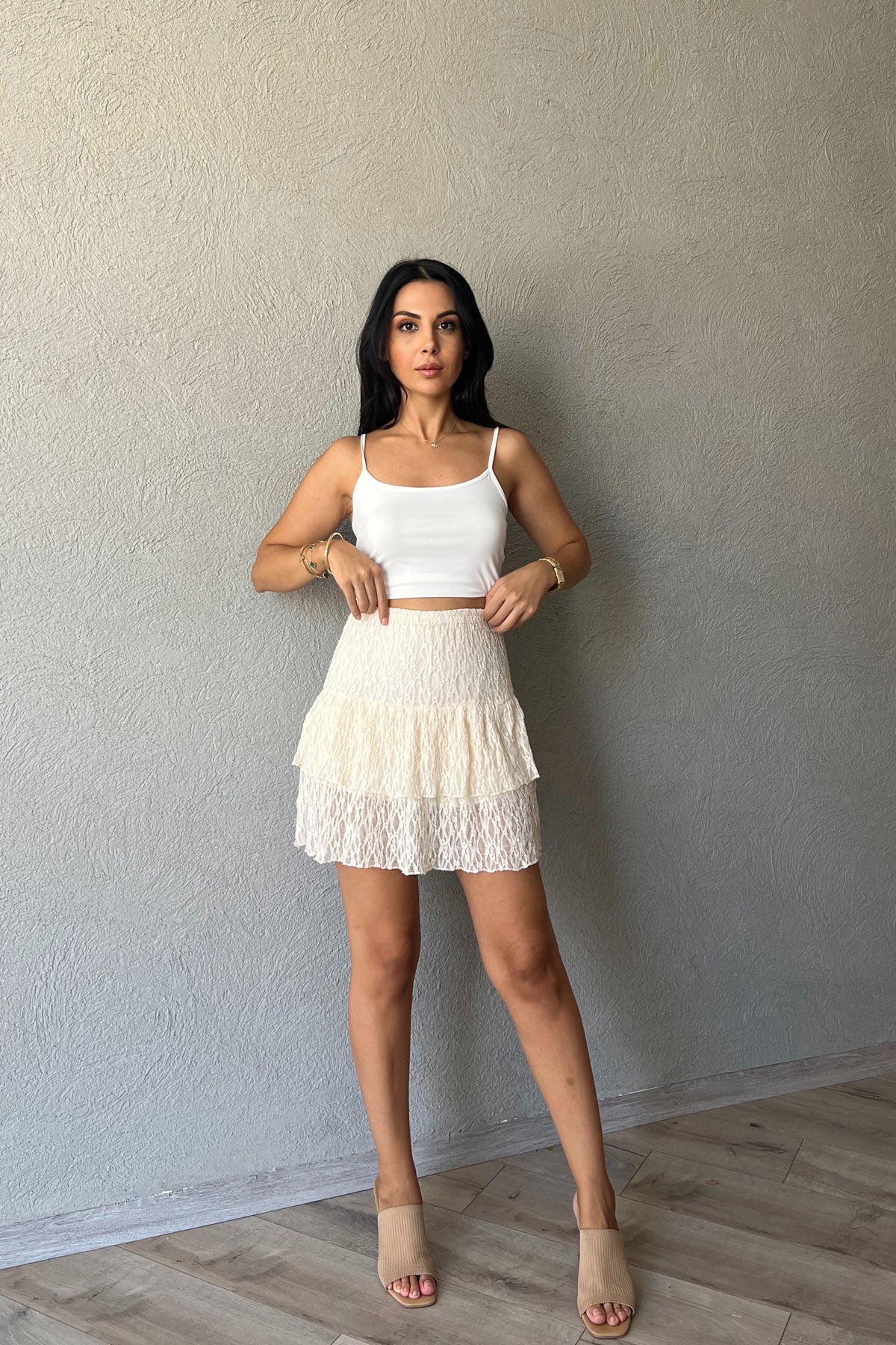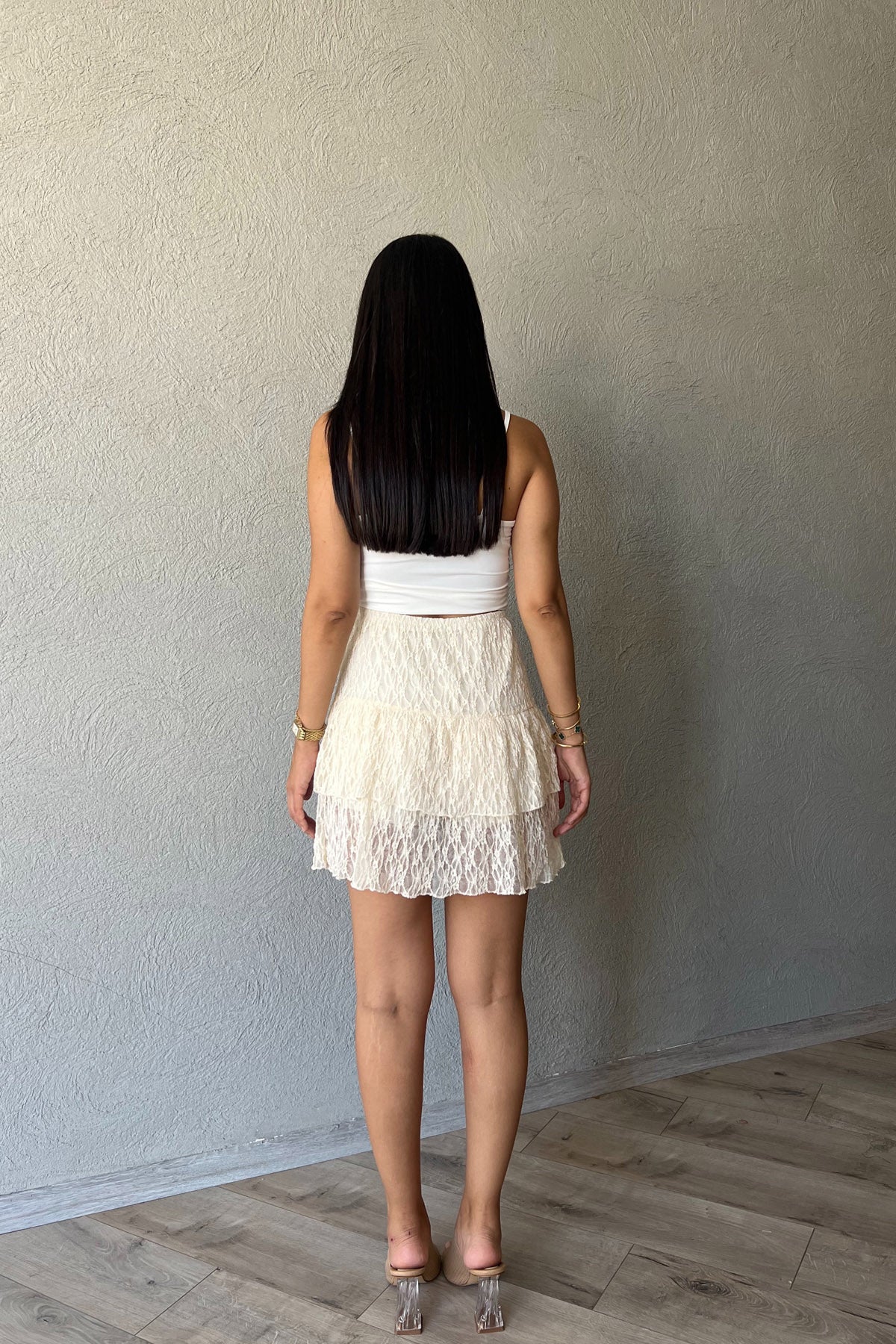 Krem Dantel Detaylı Mini Etek SY-2203-Krem