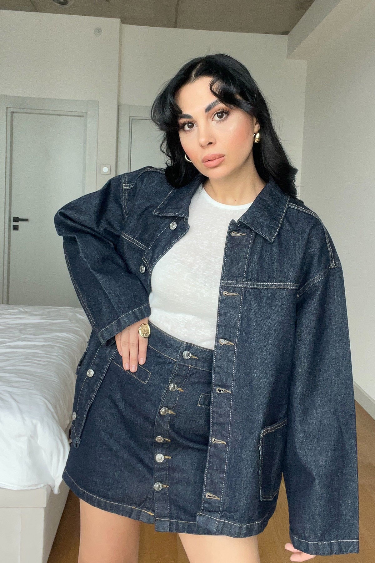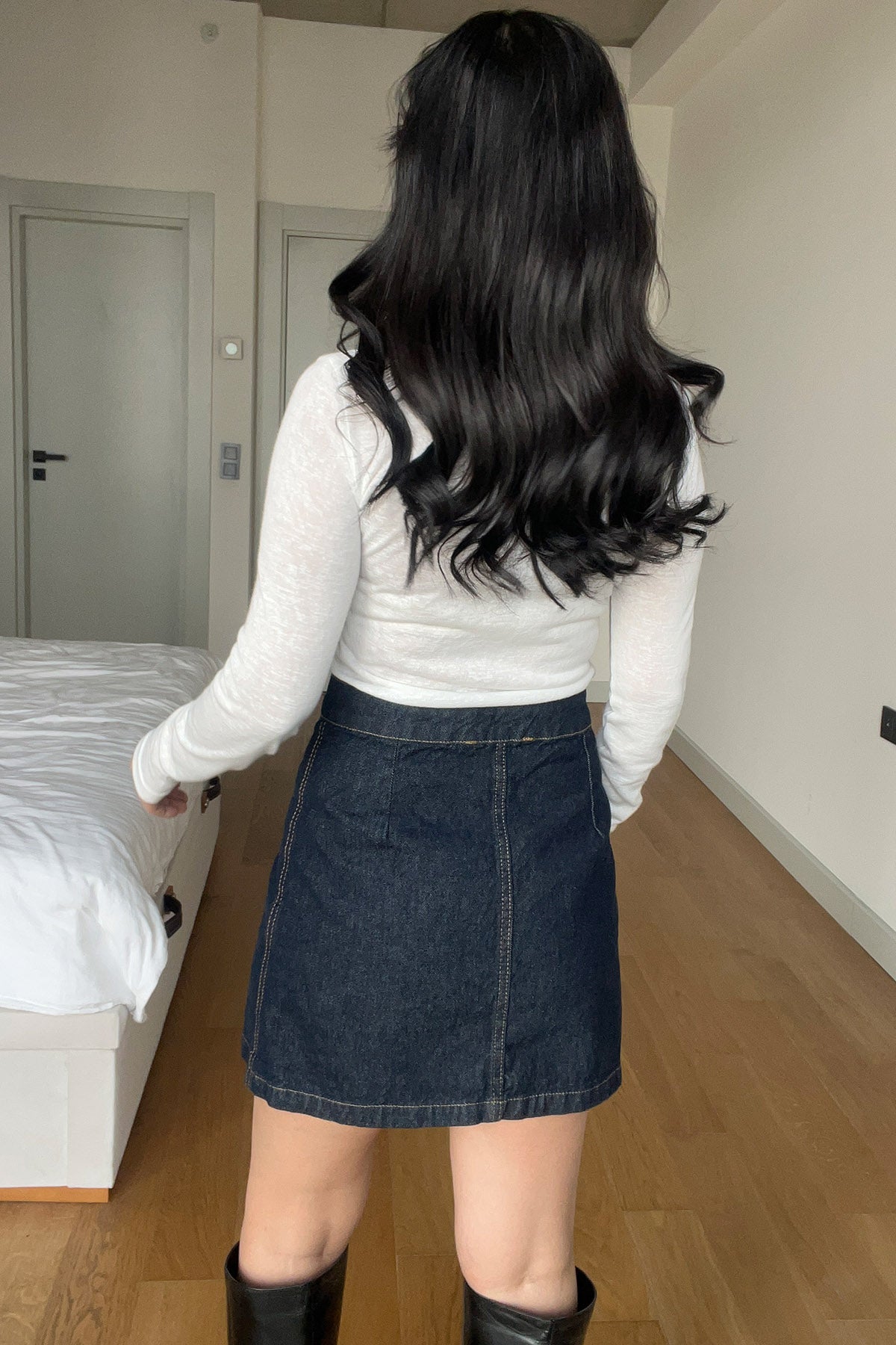 Ürün Detayları ;Lacivert Fleto Cepli Kot Etek