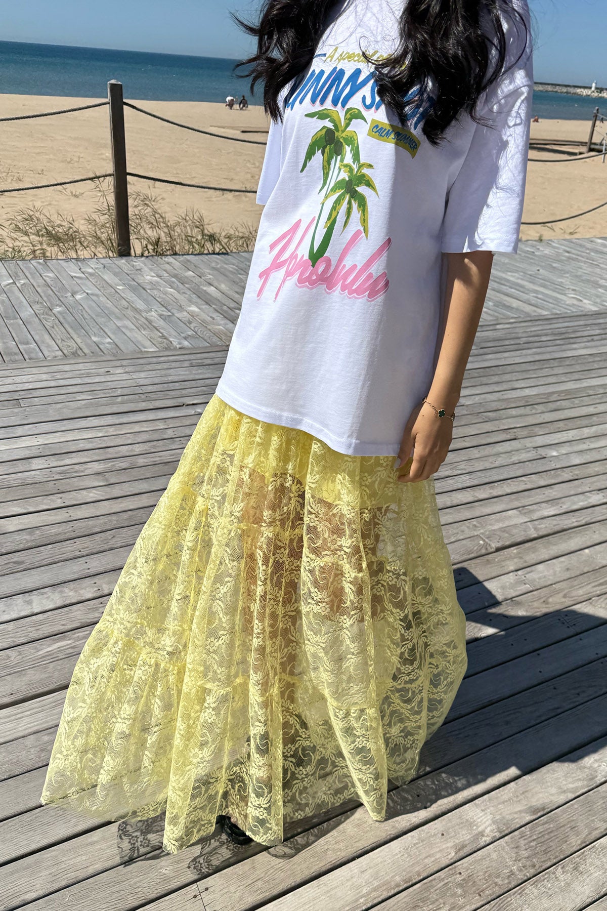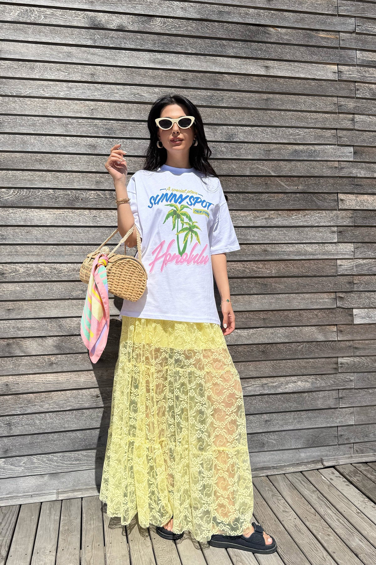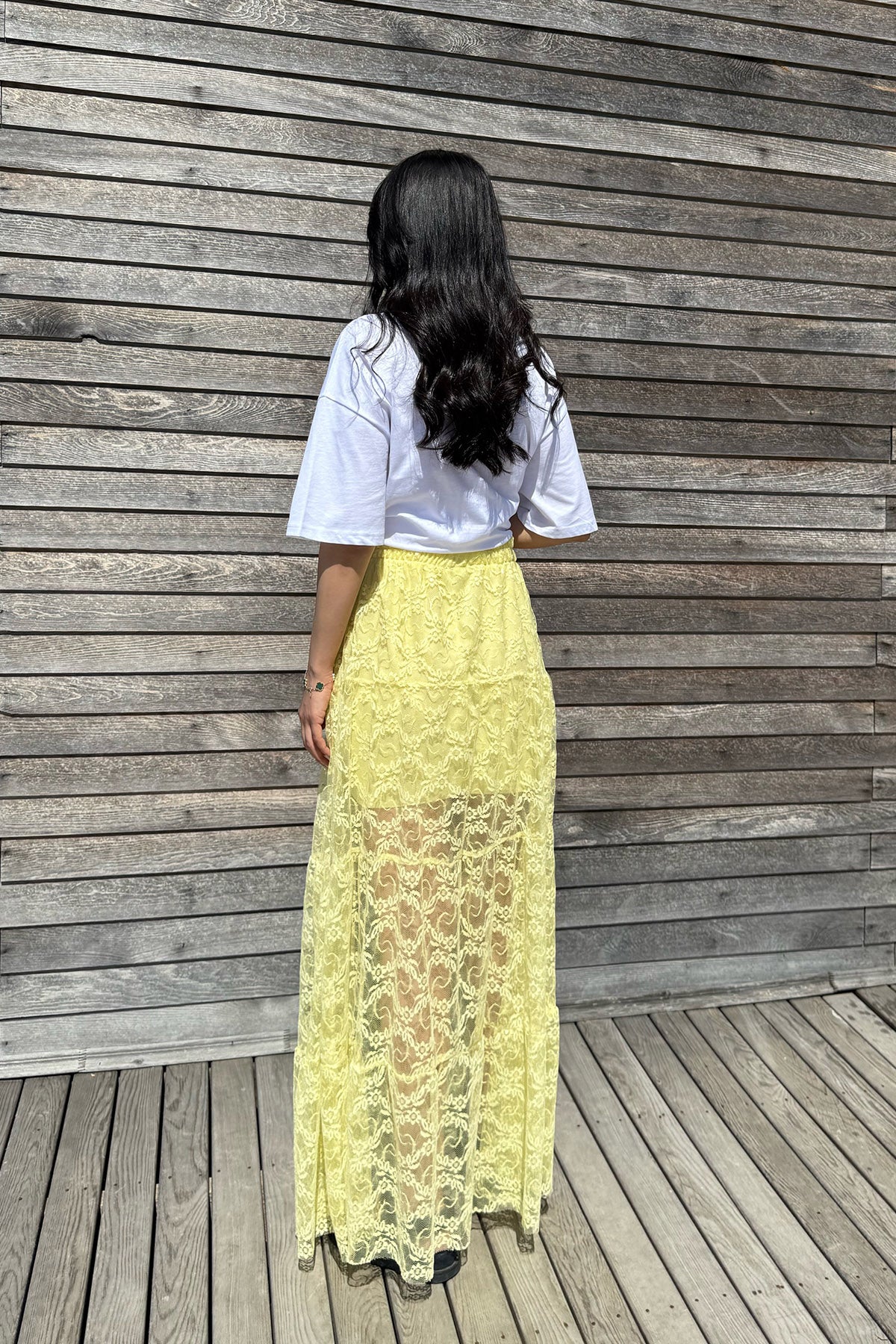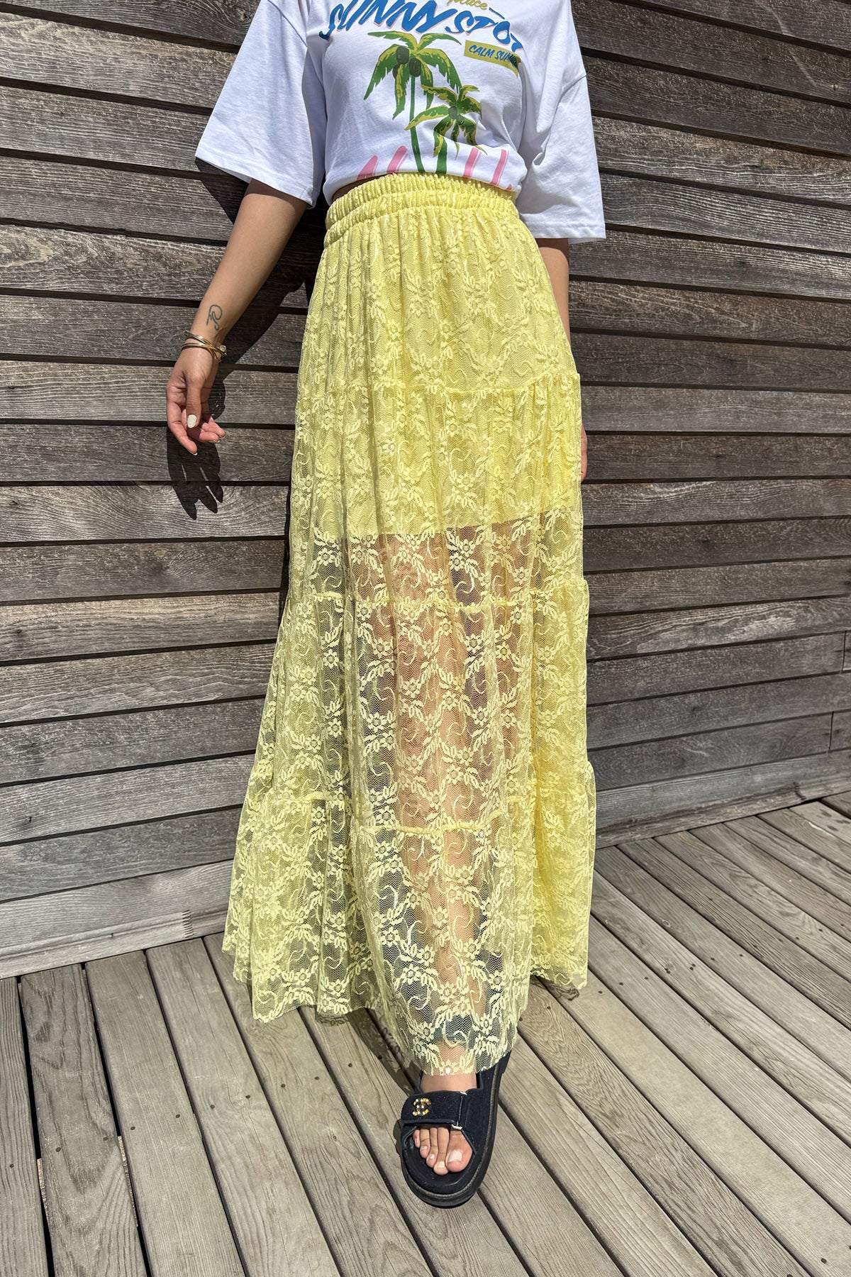 Sarı Astarlı Dantel Etek SY-3169-Sarı