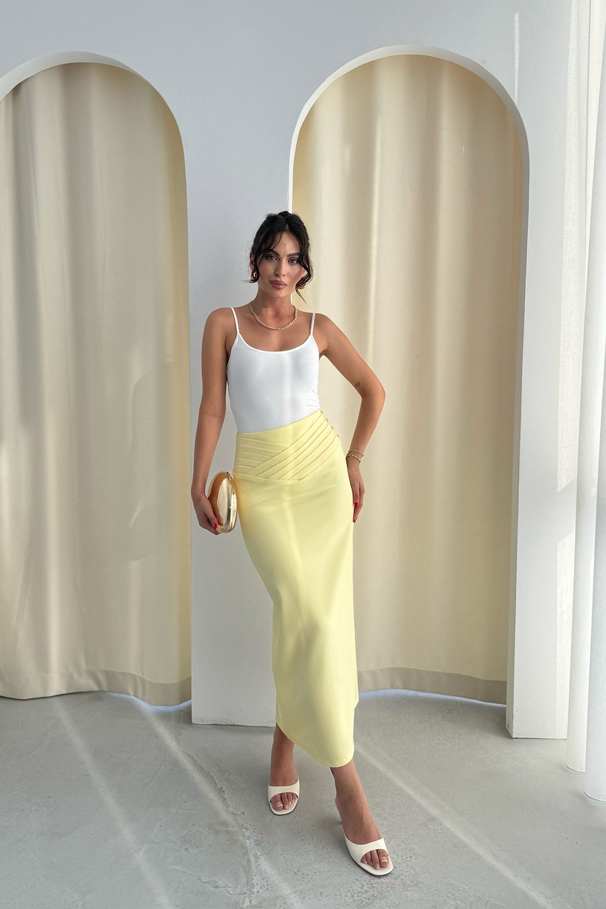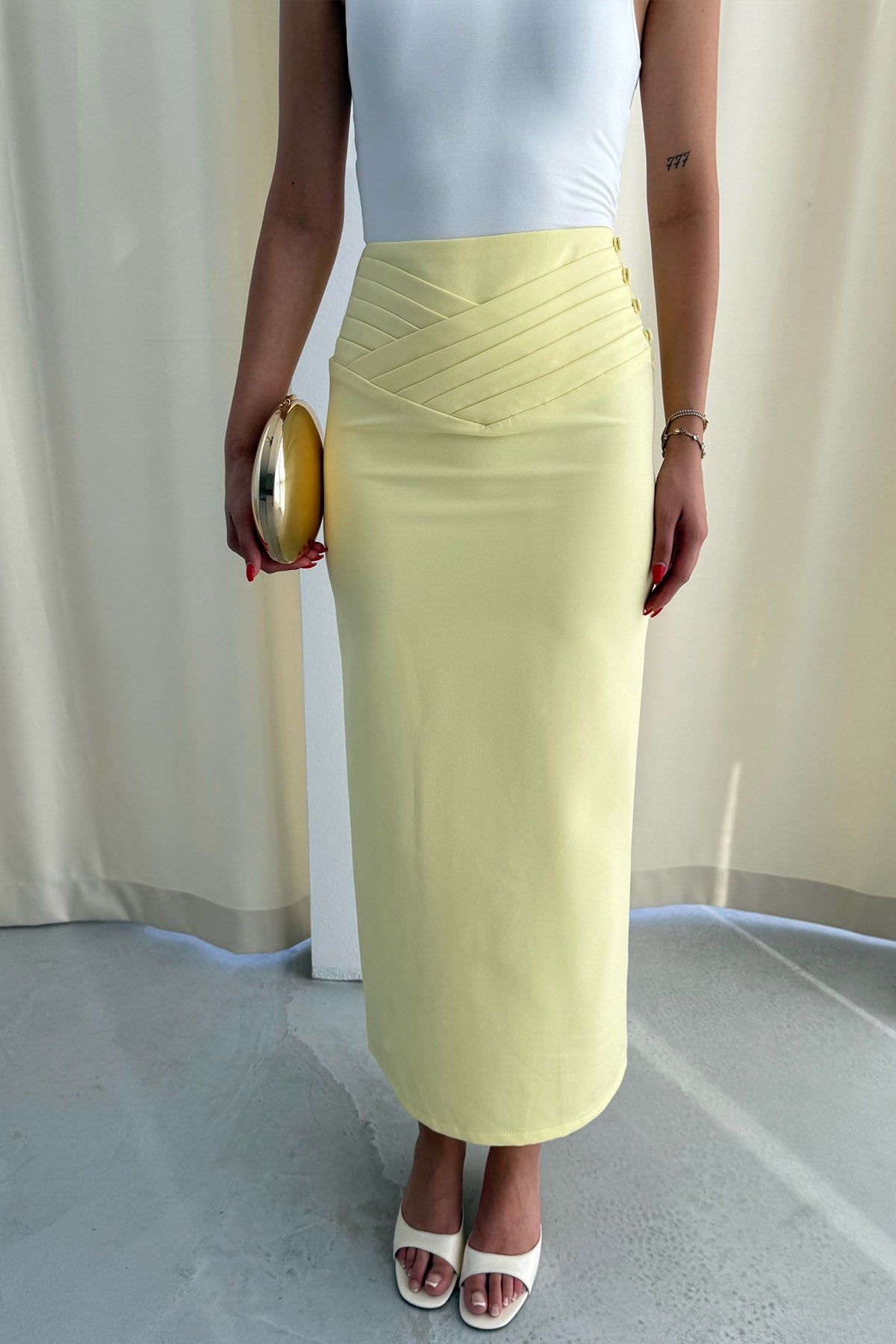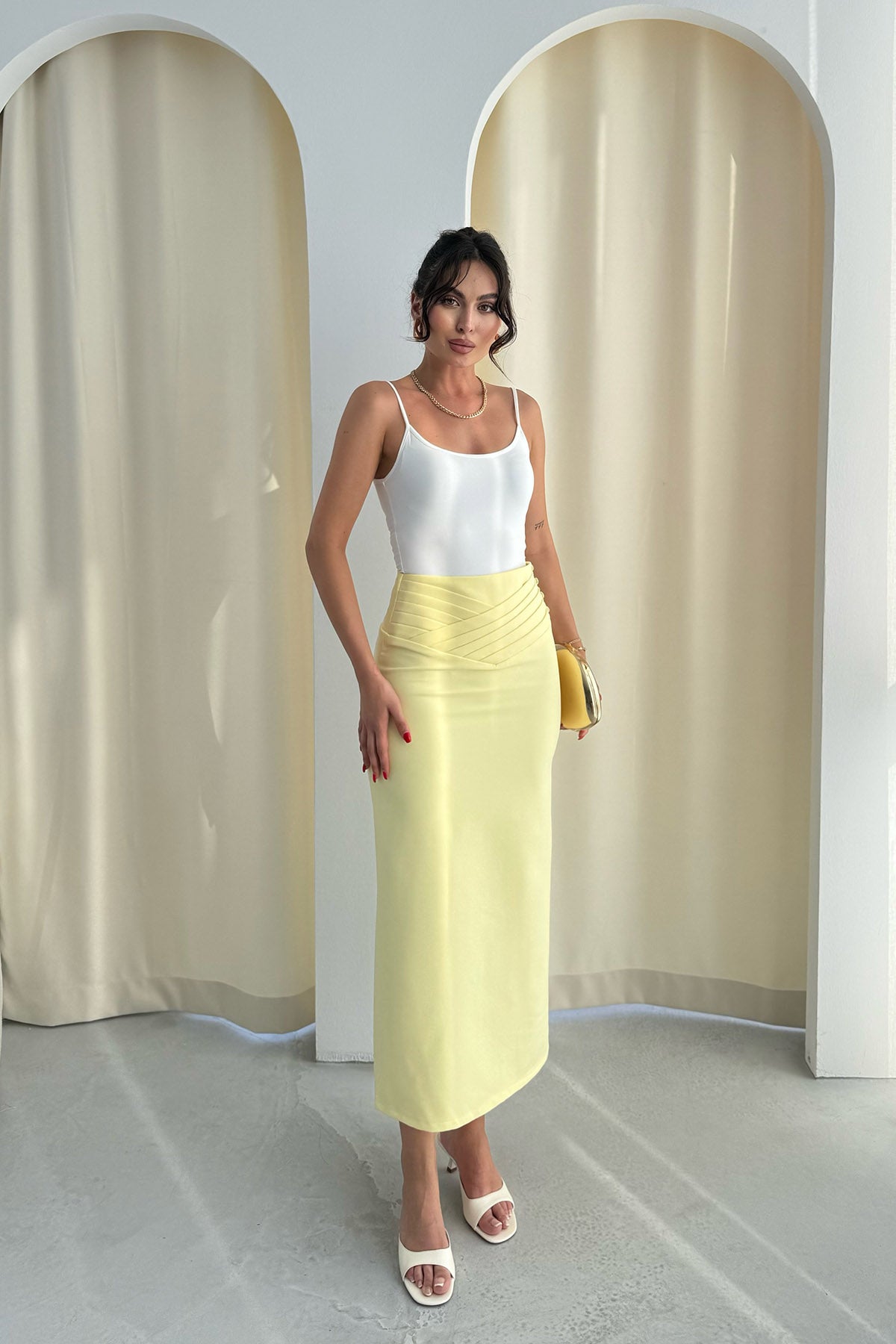 Sarı Kat Detaylı Kalem Etek SY-3258-Sarı