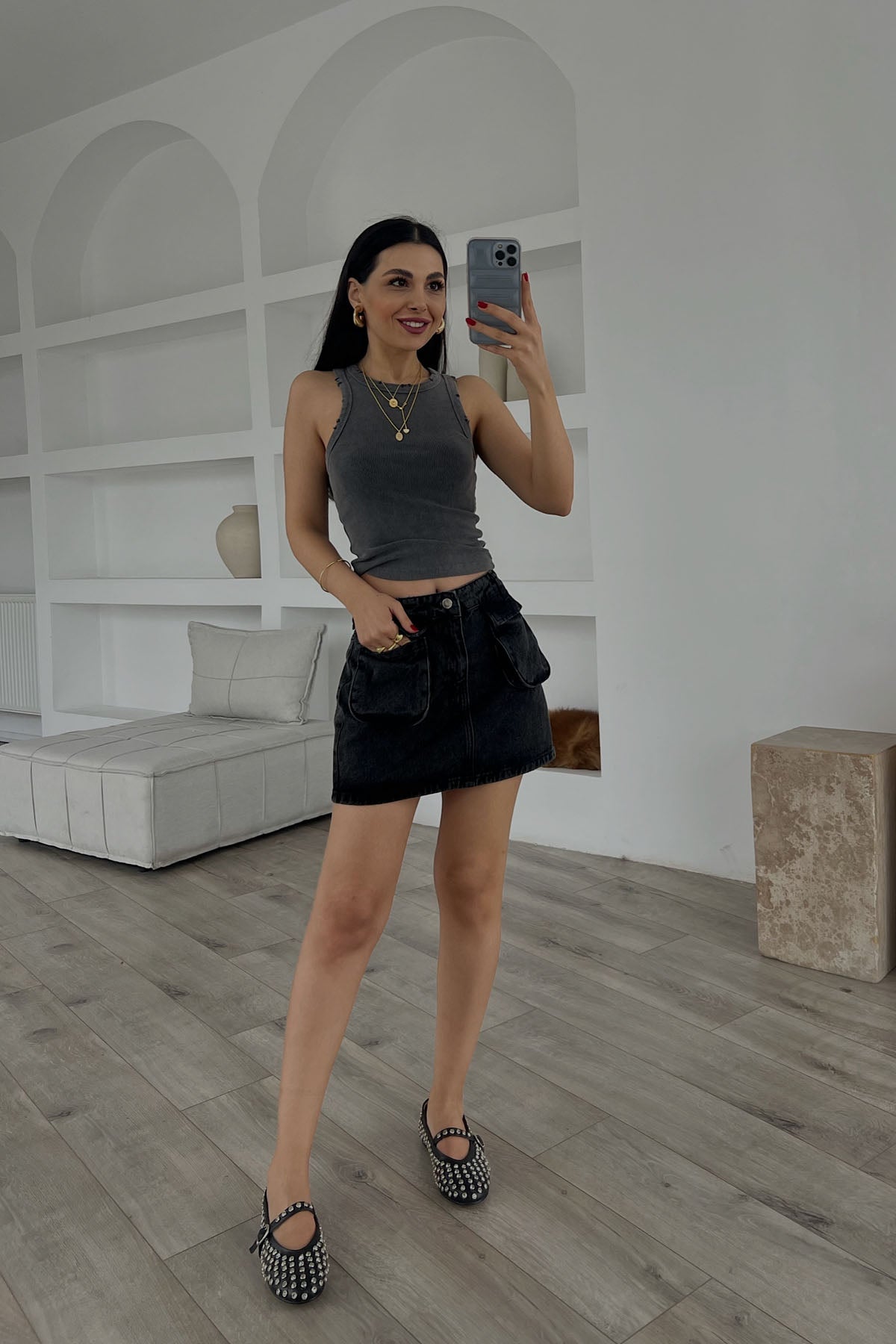 Ürün Detayları :Siyah Kargo Cep Detaylı Kısa Denim Etek