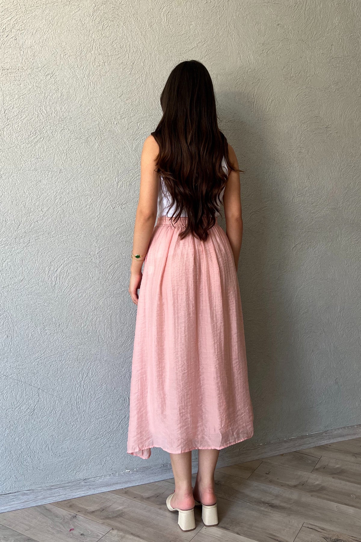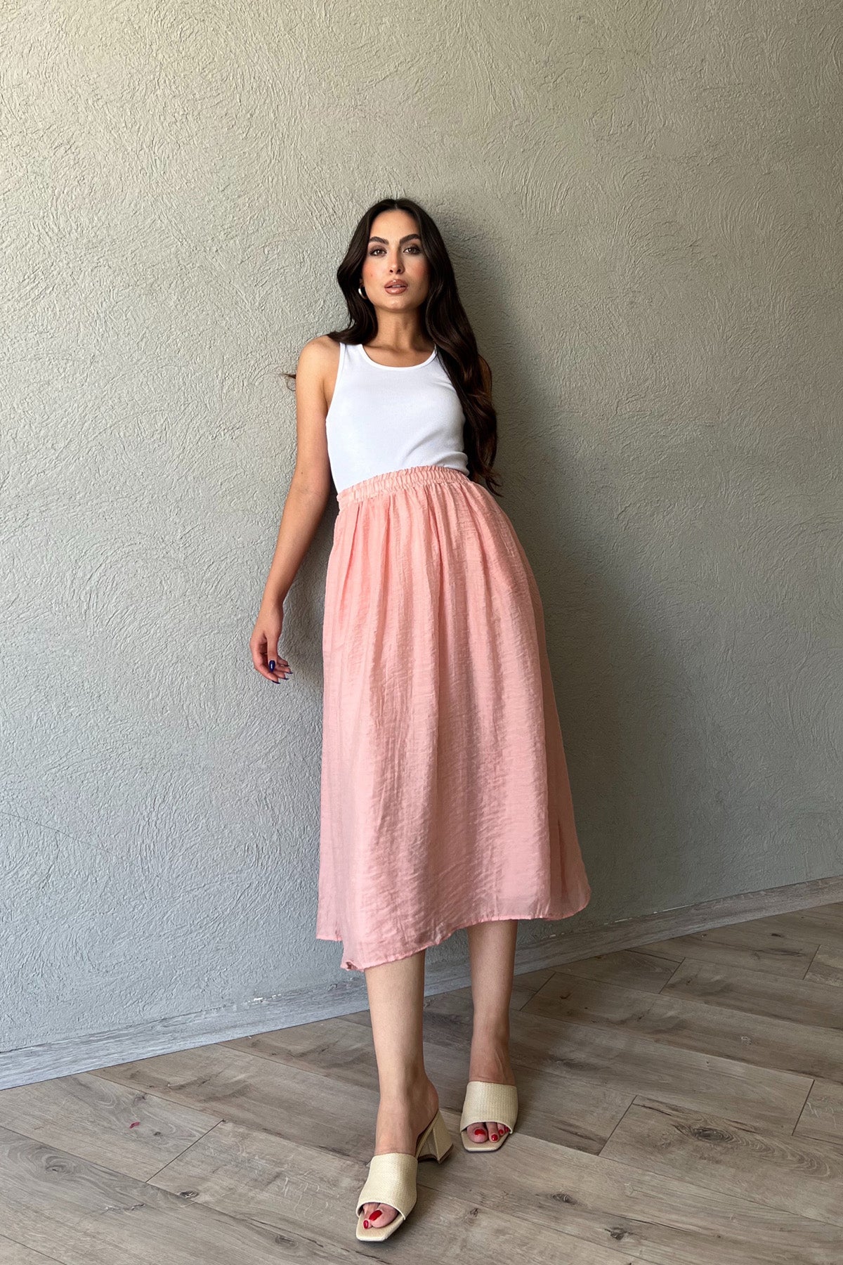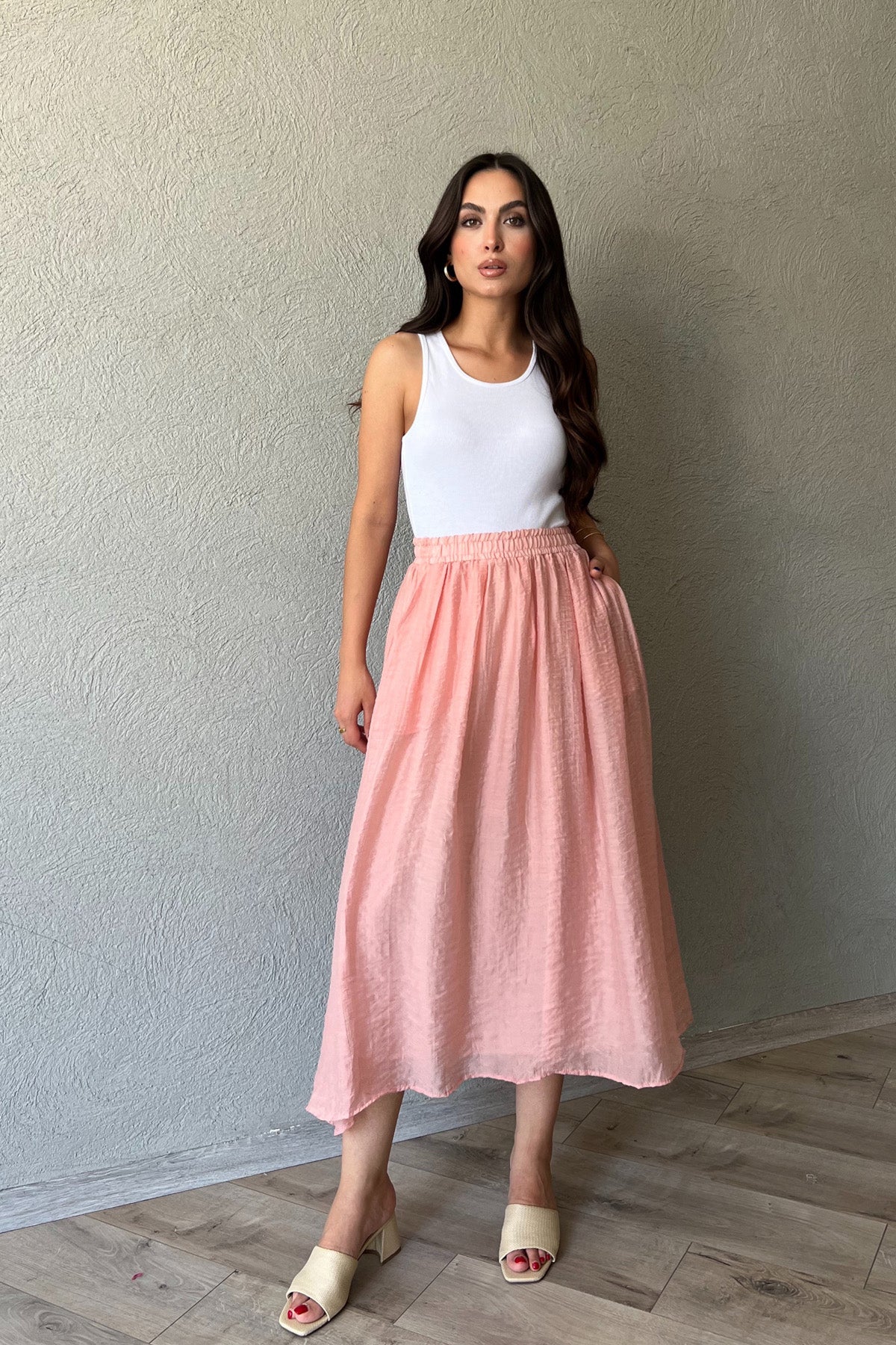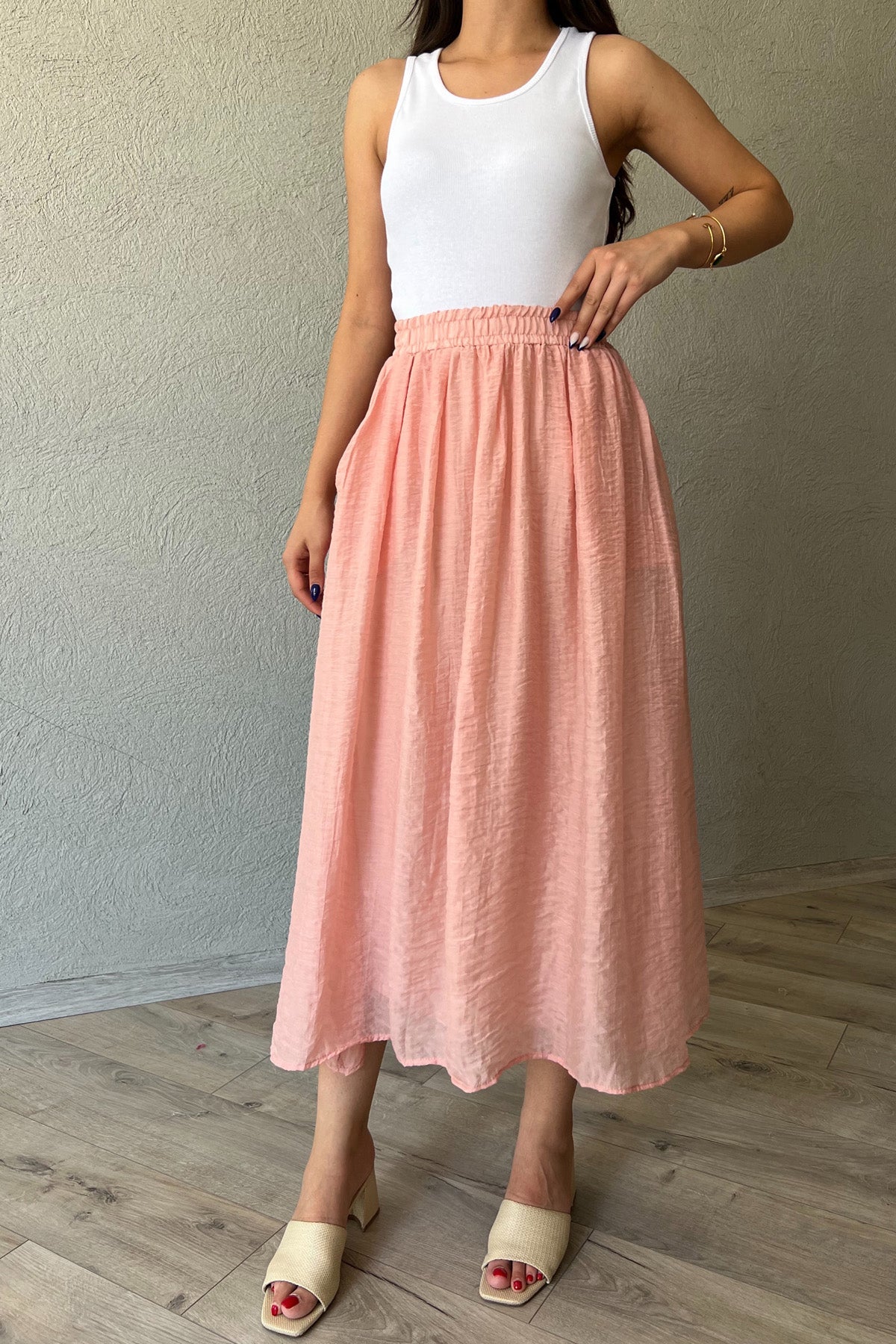 Somon Dokuma Detaylı Modal Etek SY-2158-Somon