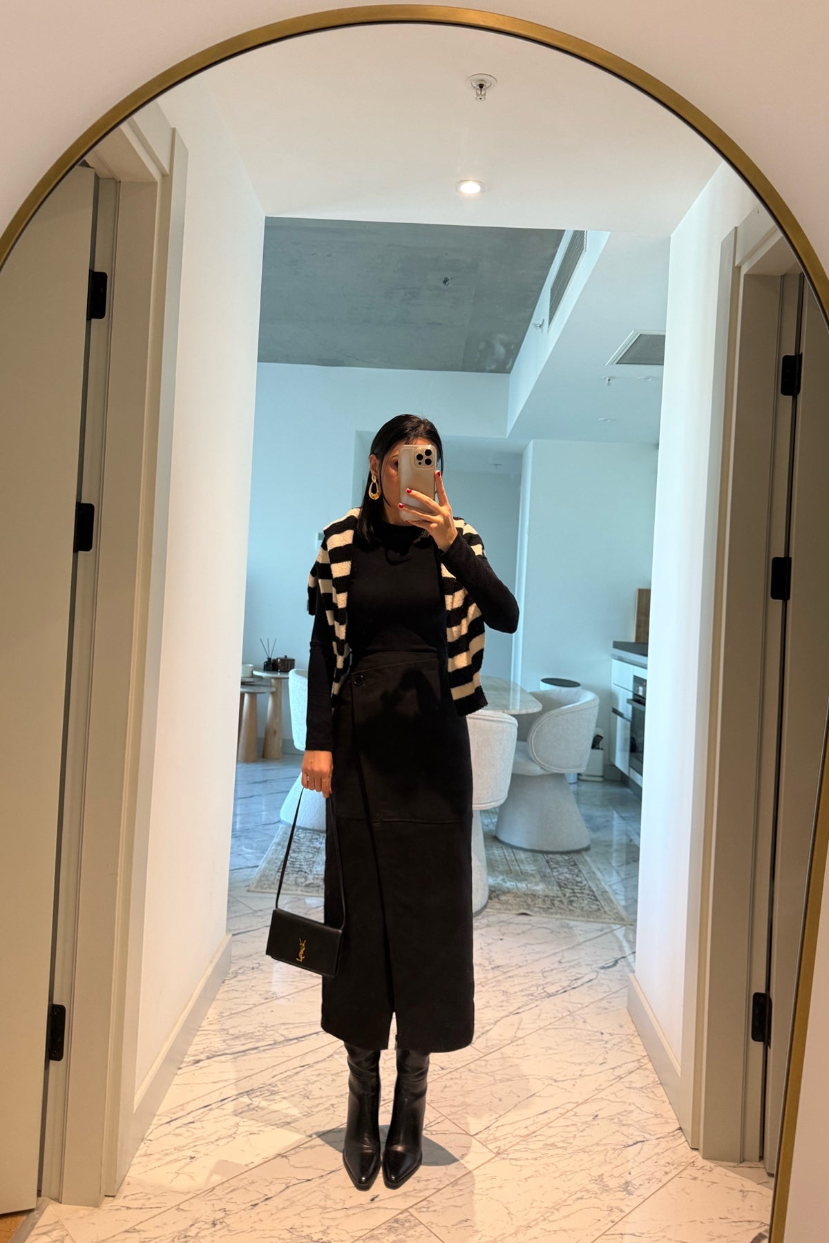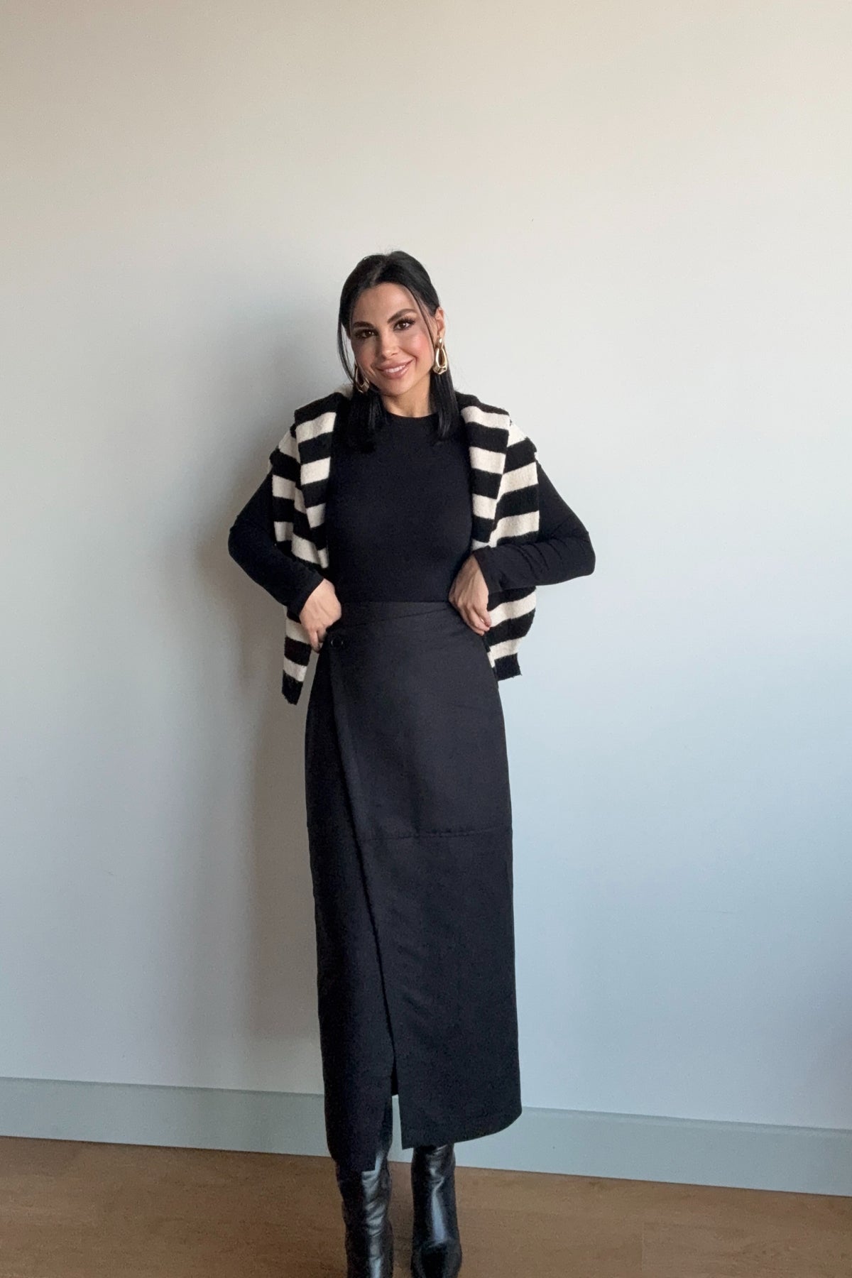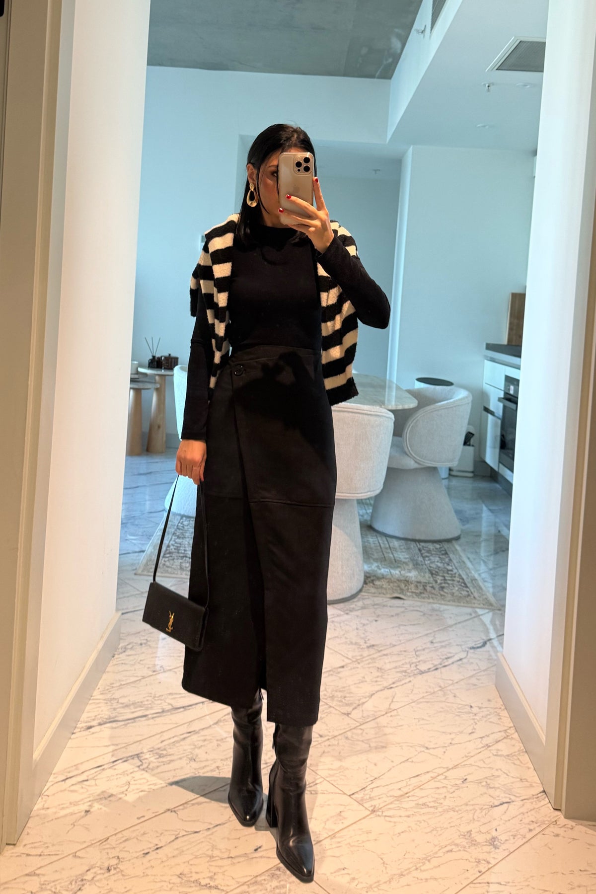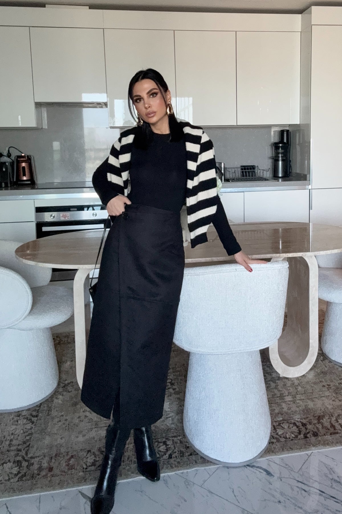 Ürün Detayları;Süet Anvelop Siyah Midi Etek