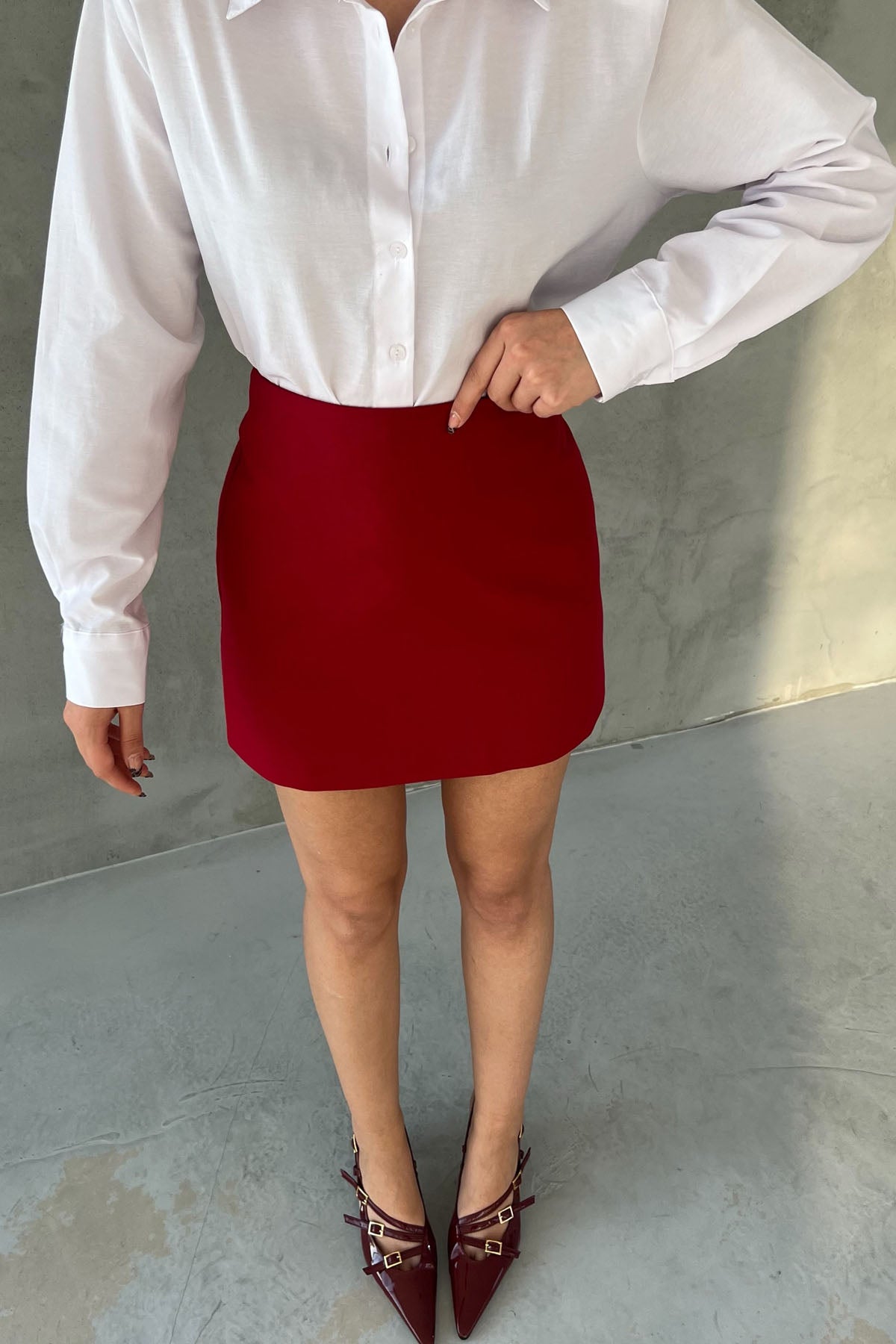 Vişne Çürüğü Fermuarlı Klasik Mini Etek SY-2777-Vişne Çürüğü