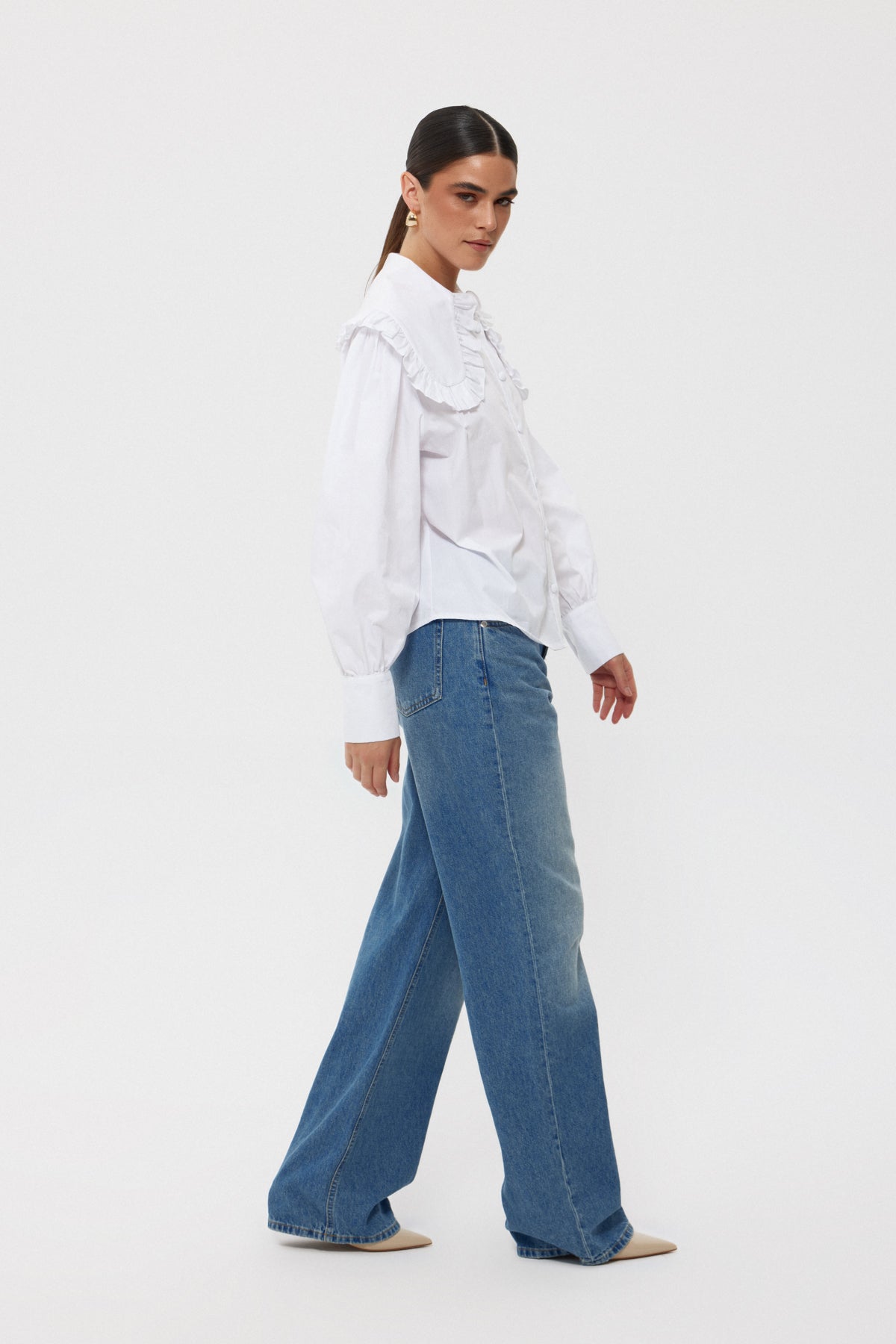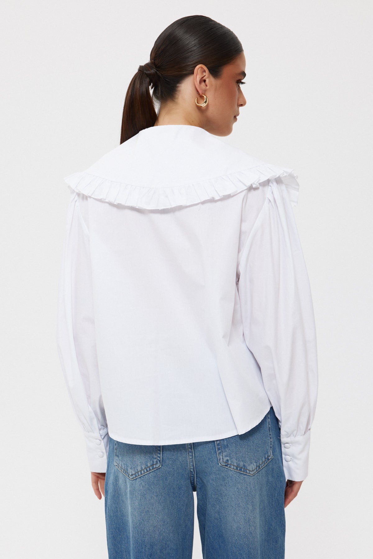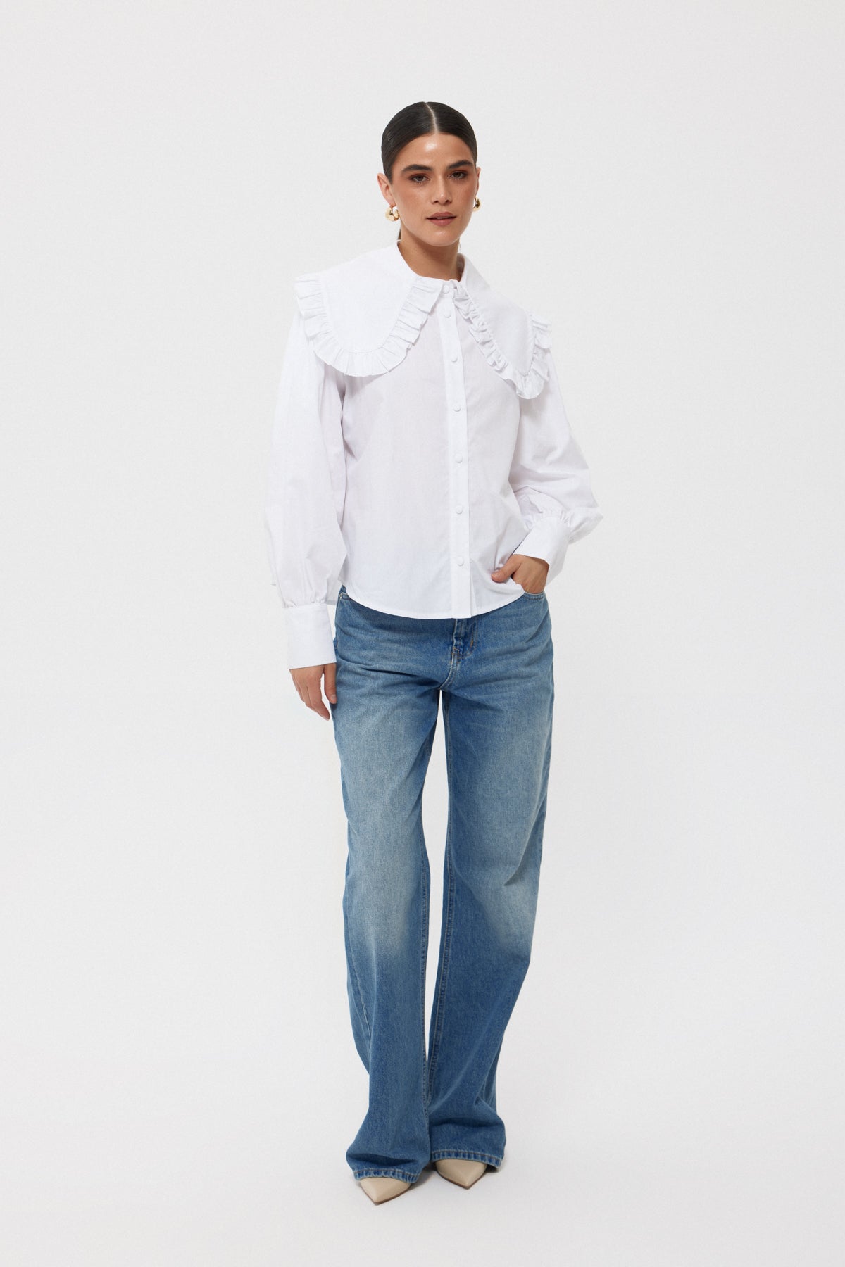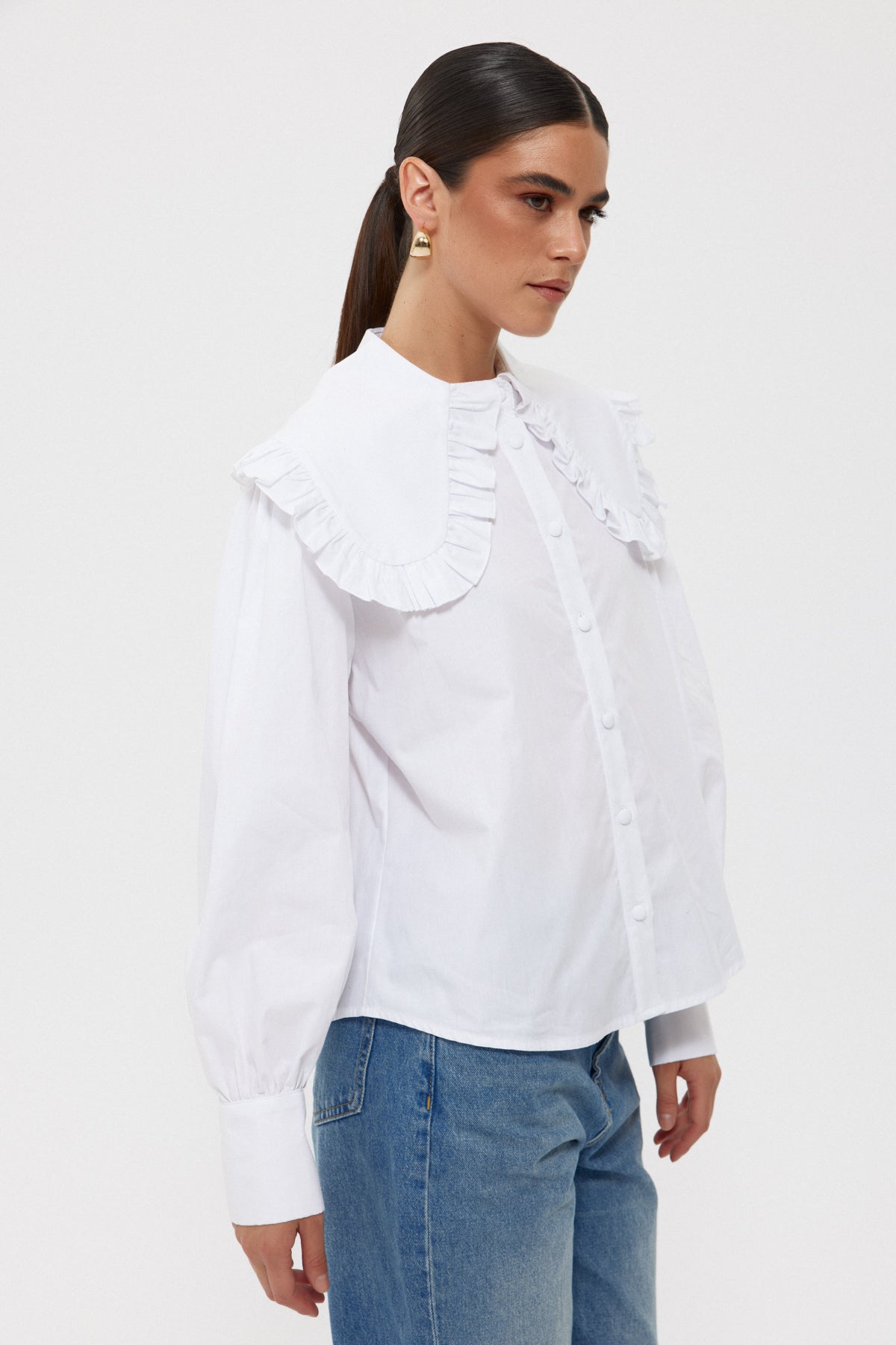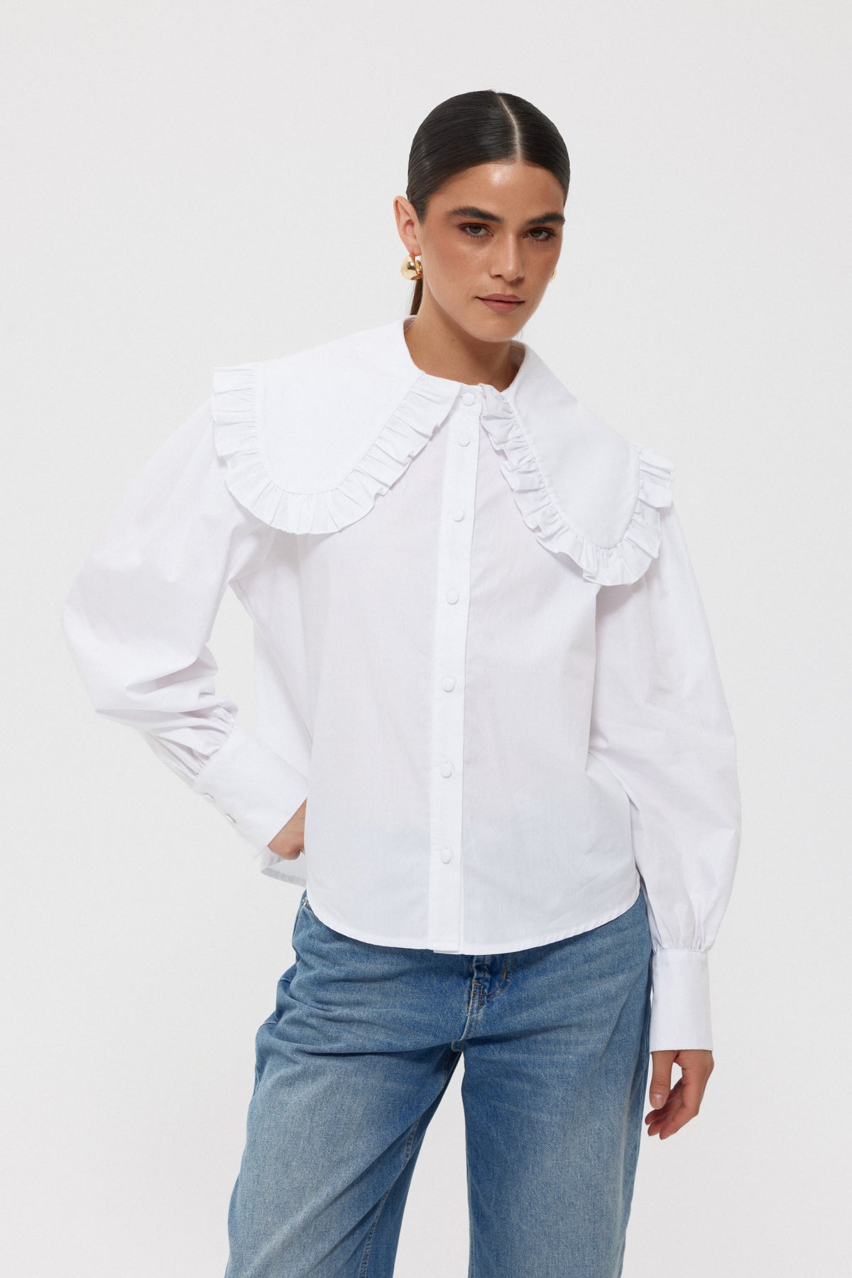 Beyaz Bebe Yaka Uzun Kollu Basic Gömlek SY-2535-Beyaz