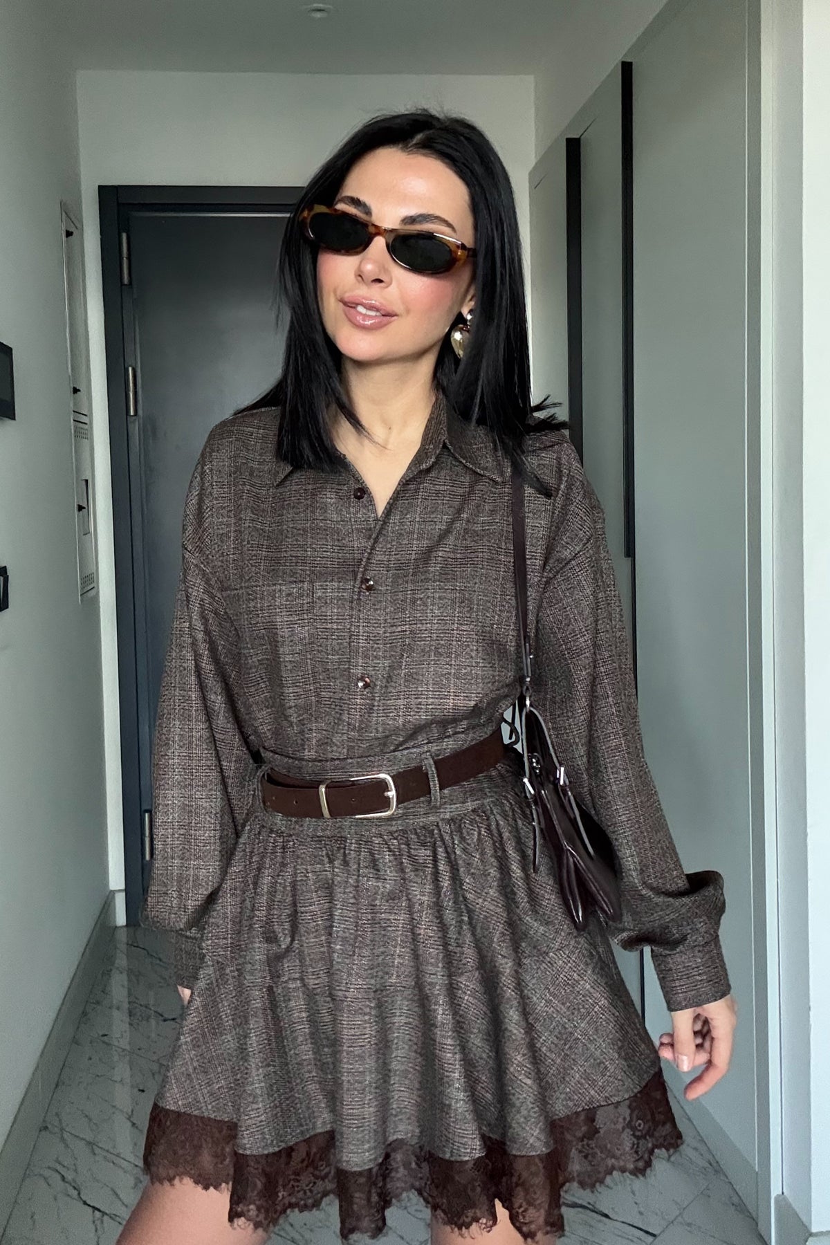 Kahverengi Ekose Rihanna Gömlek SY-3493-Kahverengi