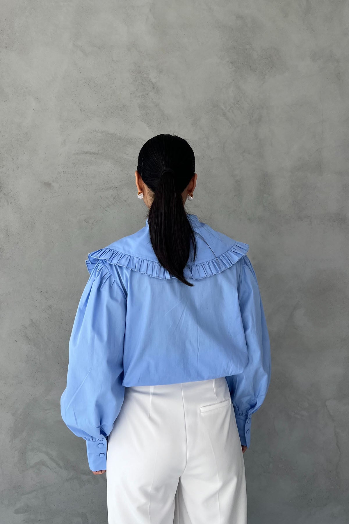 Ürün Detayları ; Sezonun en sevilen Gömlekleri Seda Yalçın Atelier'de sizleri bekliyor. Mavi Bebe Yaka Uzun Kollu Basic Gömlek kombinlerinizin vazgeçilmezi olacak !