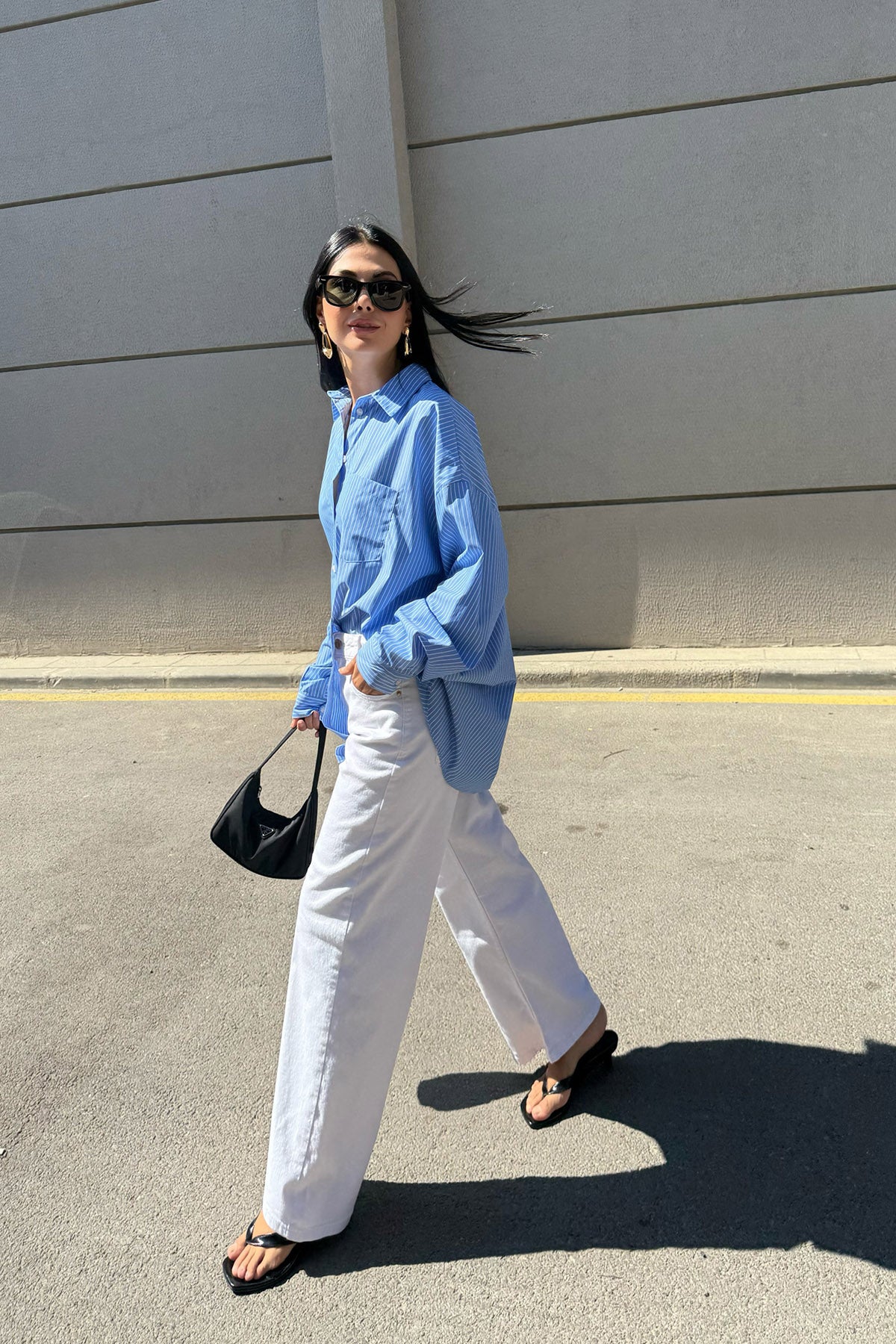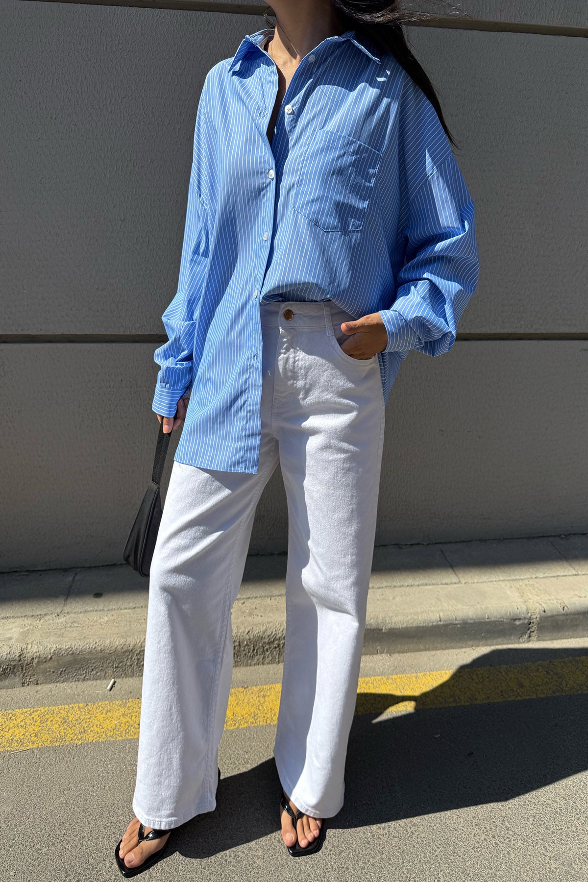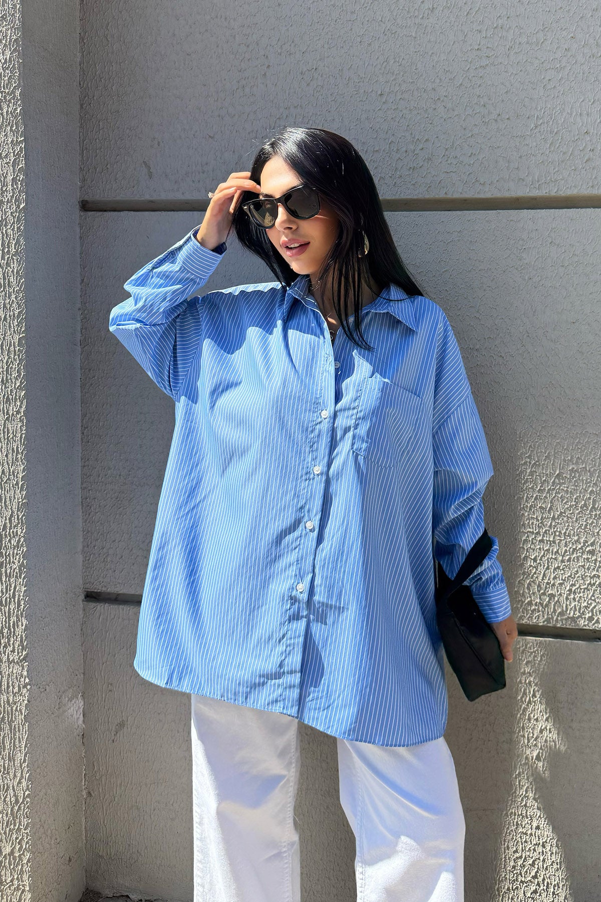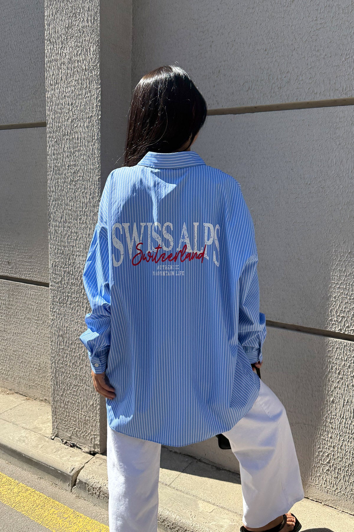 Mavi Çizgili Sırt Baskılı Uzun Kol Gömlek SY-3320-Mavi