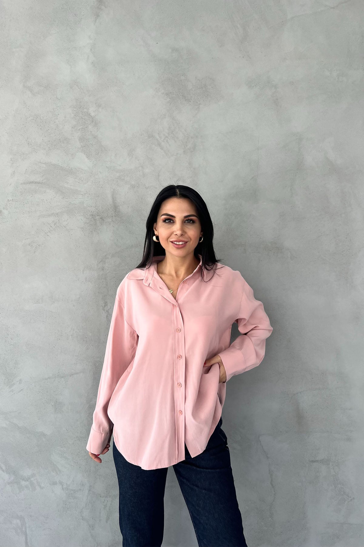 Ürün Detayları ; Sezonun en sevilen Gömlekleri Seda Yalçın Atelier'de sizleri bekliyor Pudra Modal Kumaş Uzun Kol Basic Gömlek kombinlerinizin vazgeçilmezi olacak !
