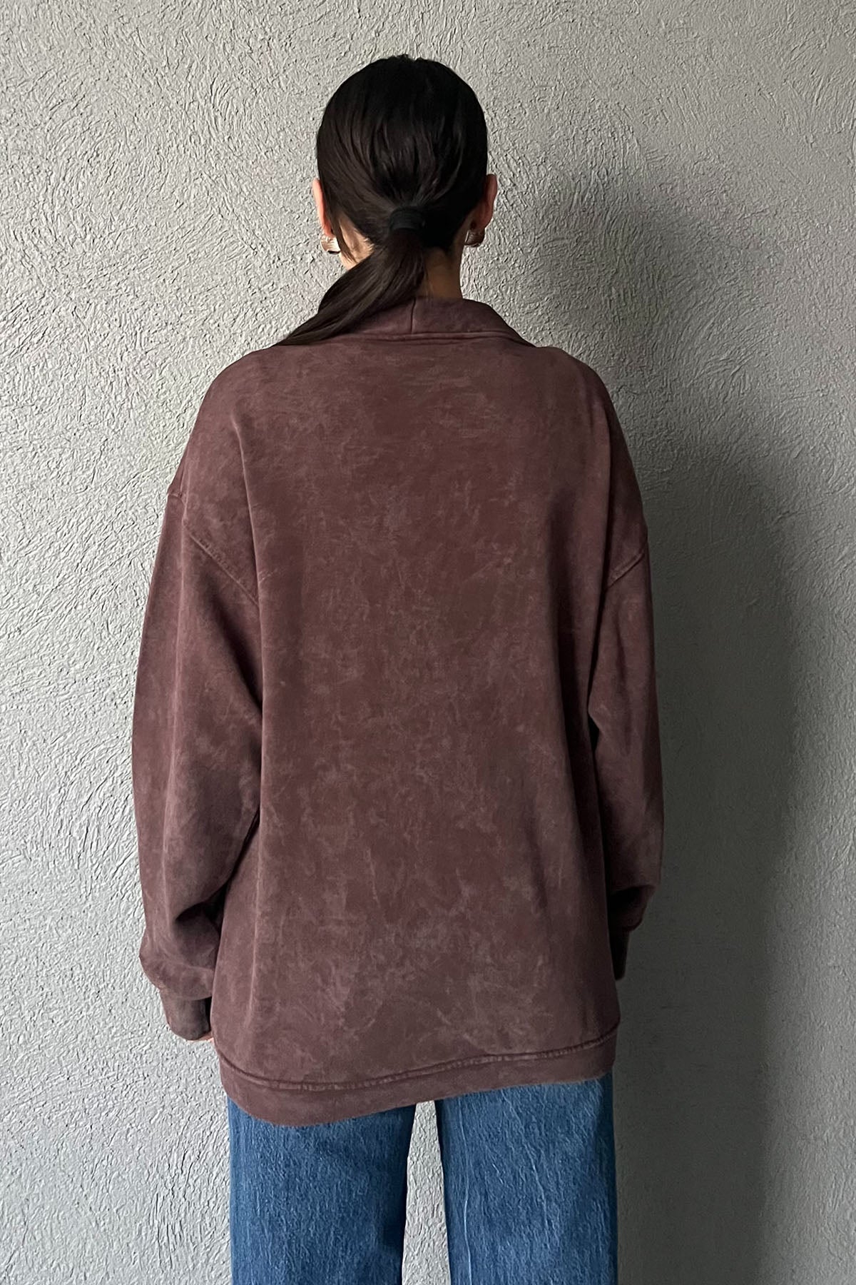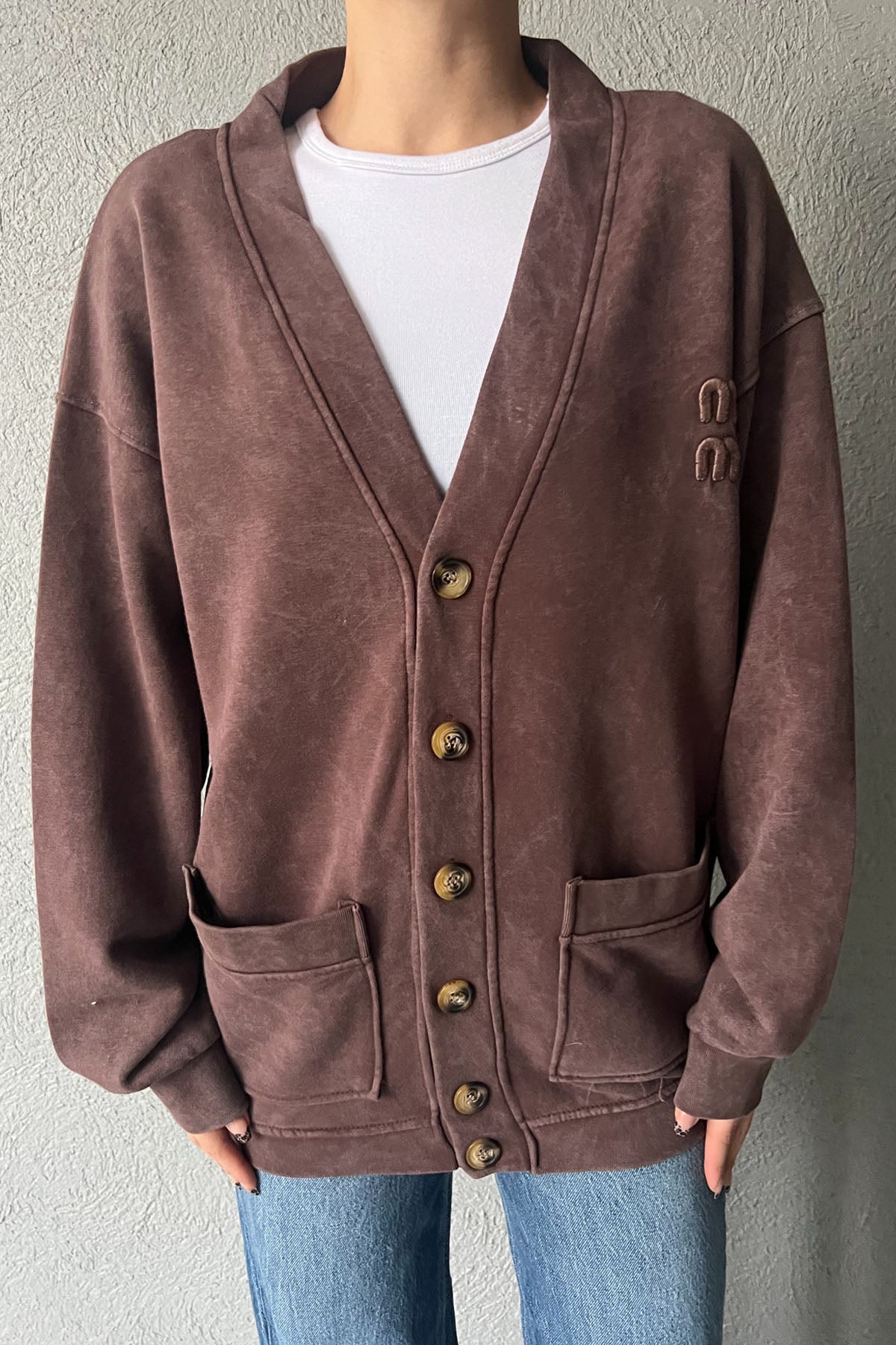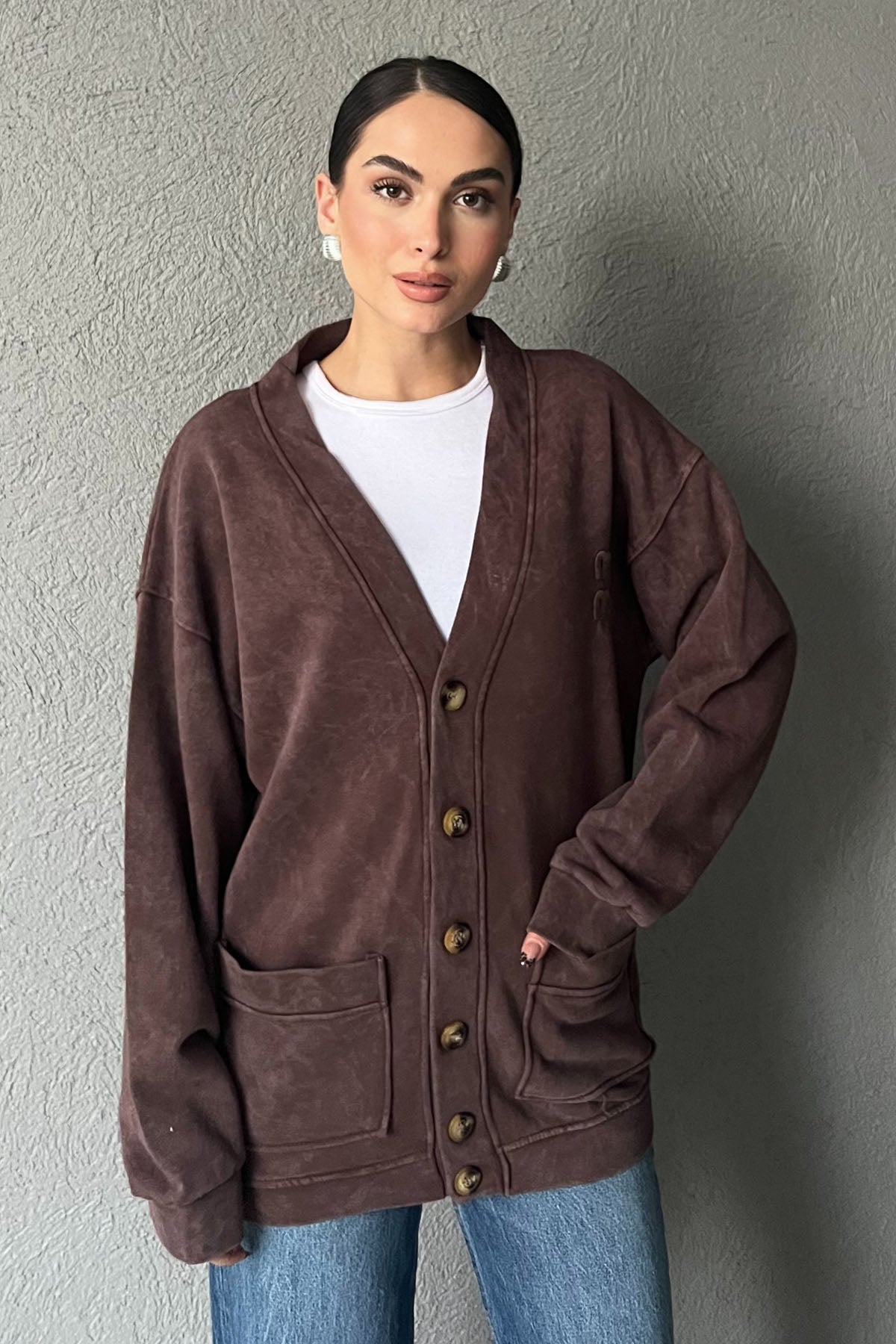 Kahve Logo Detay Yıkamalı Hırka SY-2751-Kahve