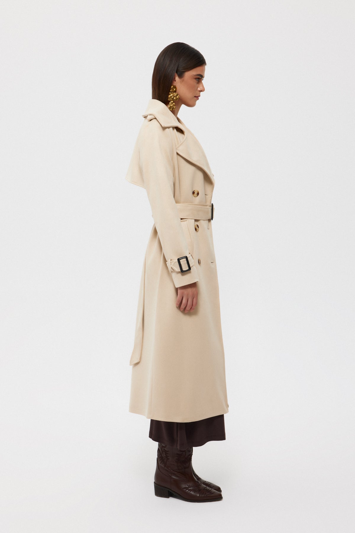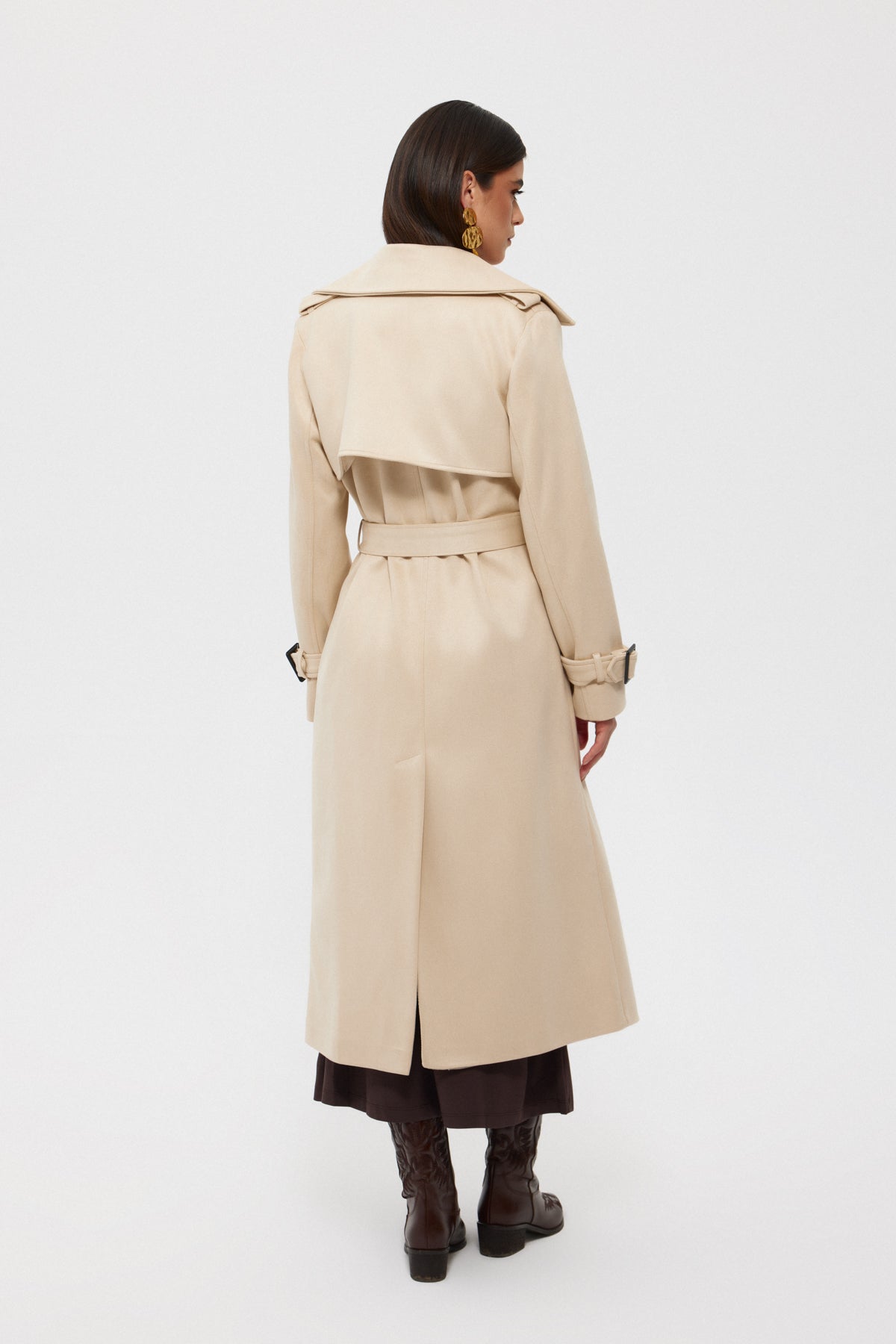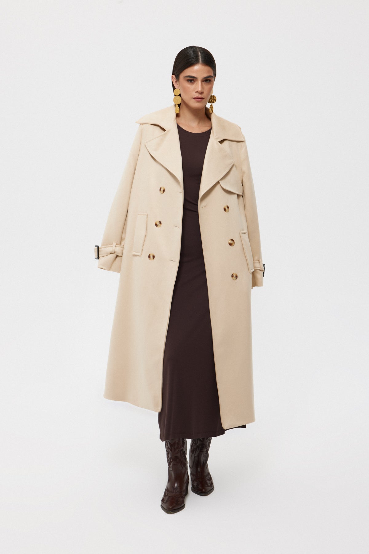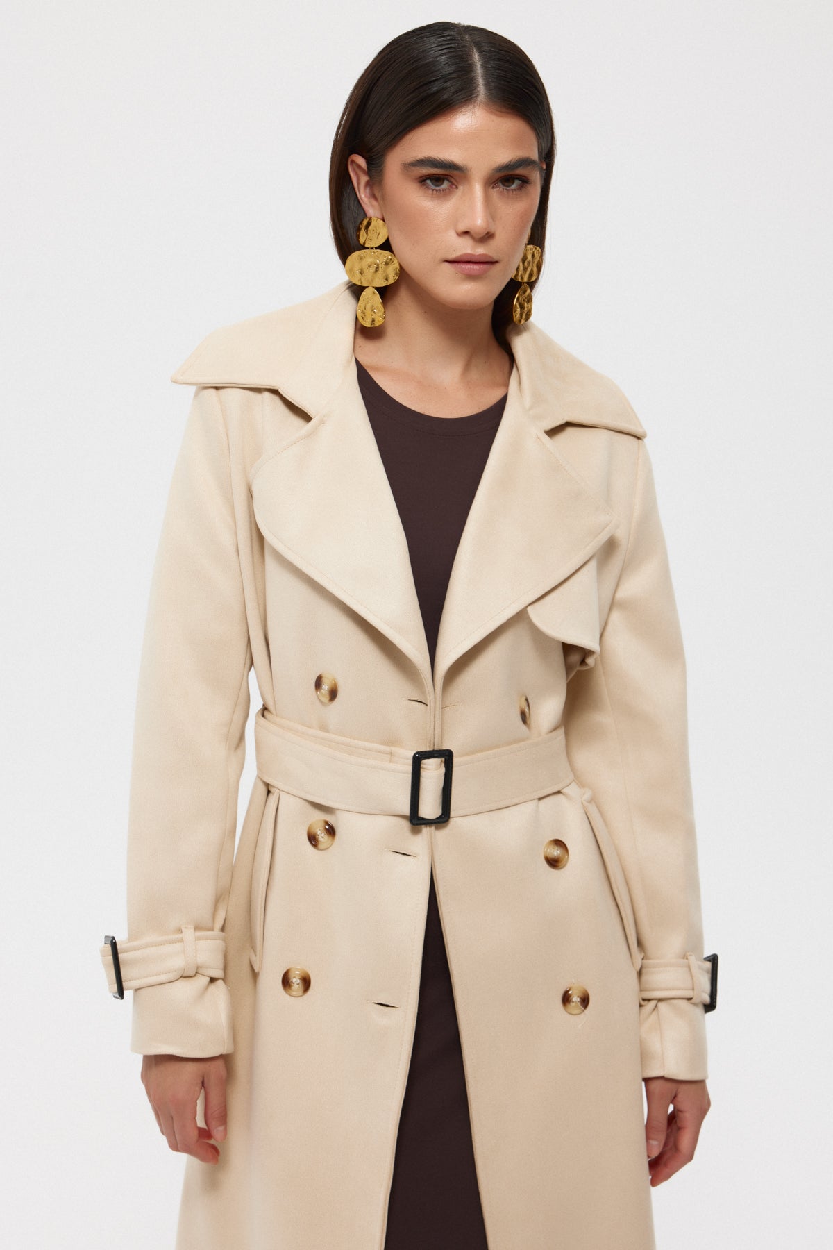 Bej Süet Kemerli Düğmeli Uzun Kaban SY-2403-Bej