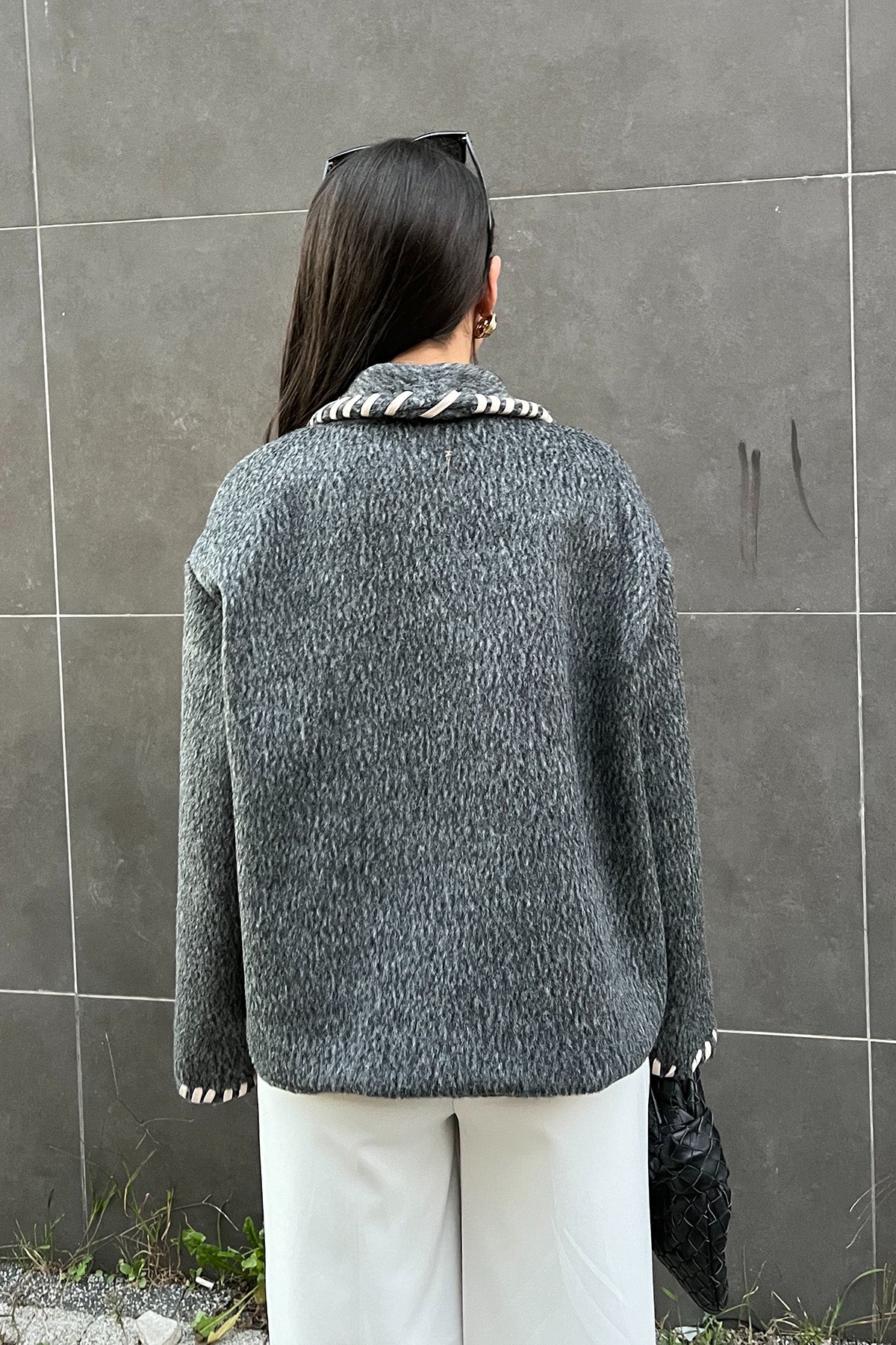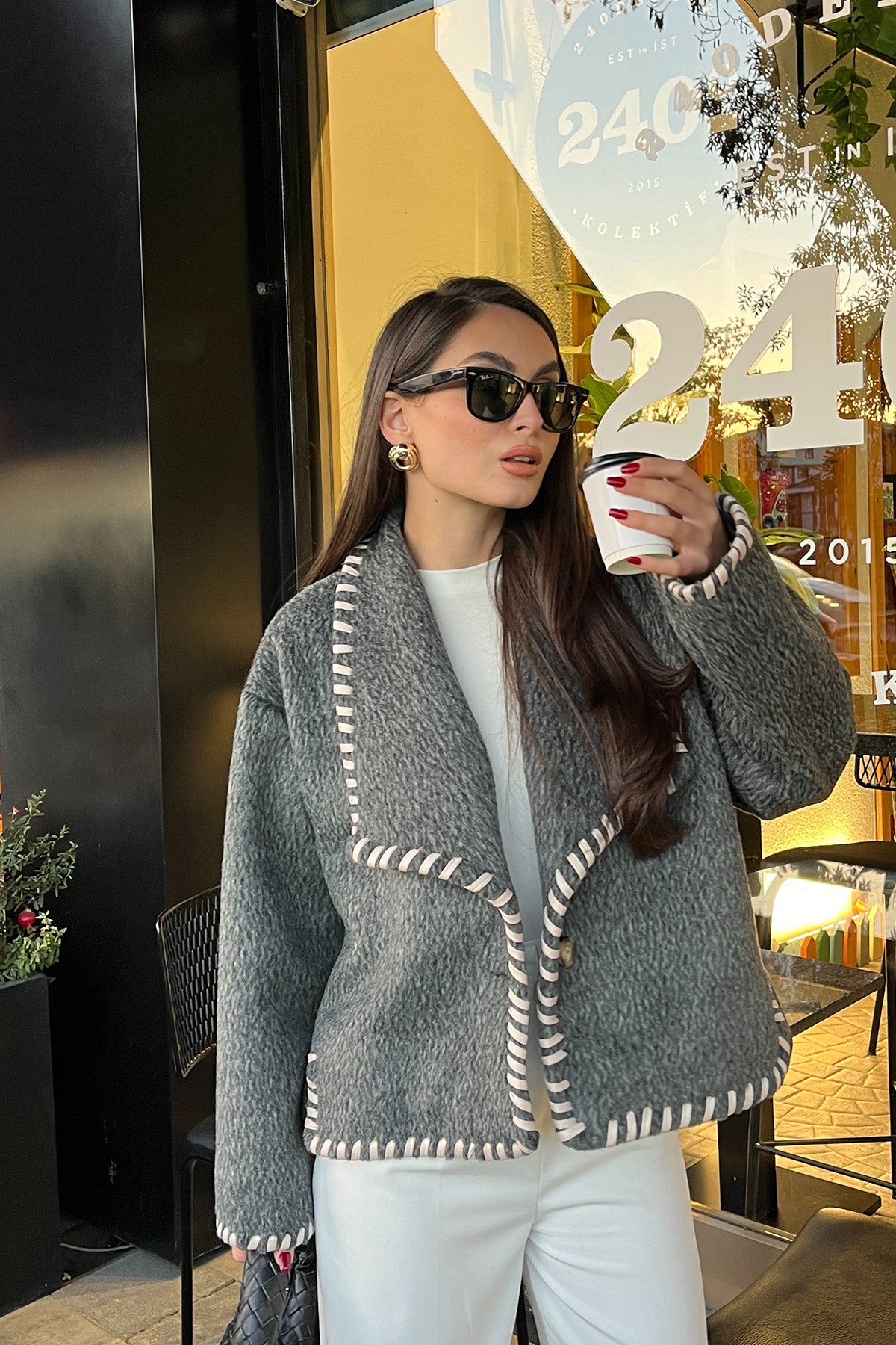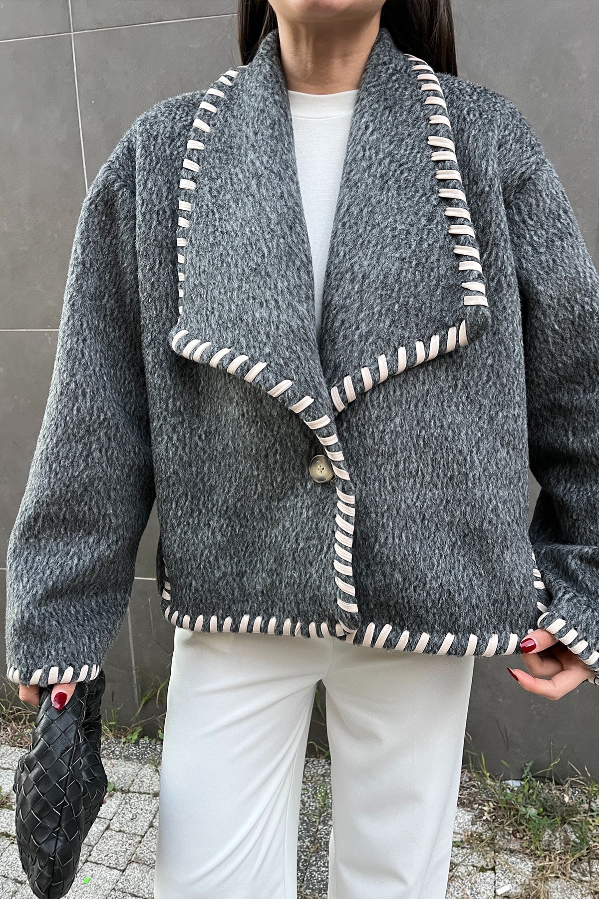 Gri Tasarım Kaşe Ceket Kaban SY-2720-Gri