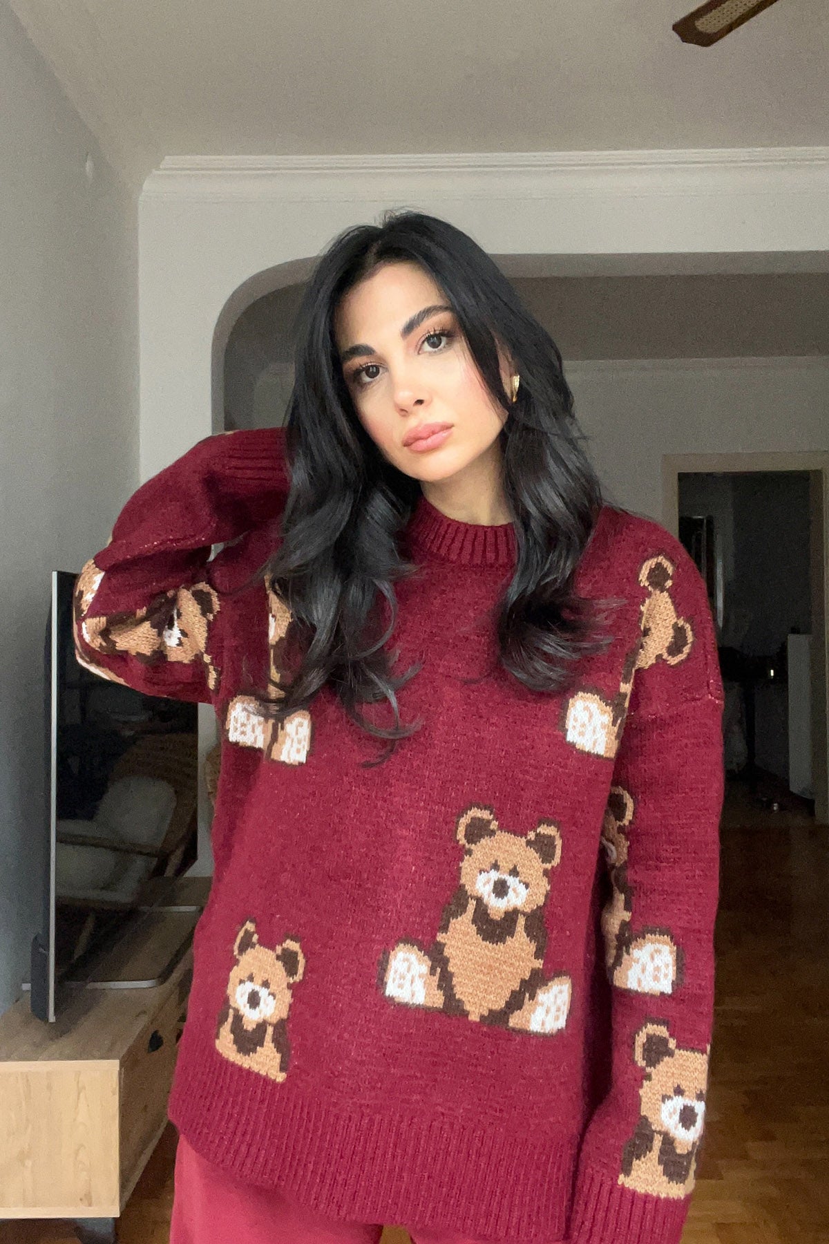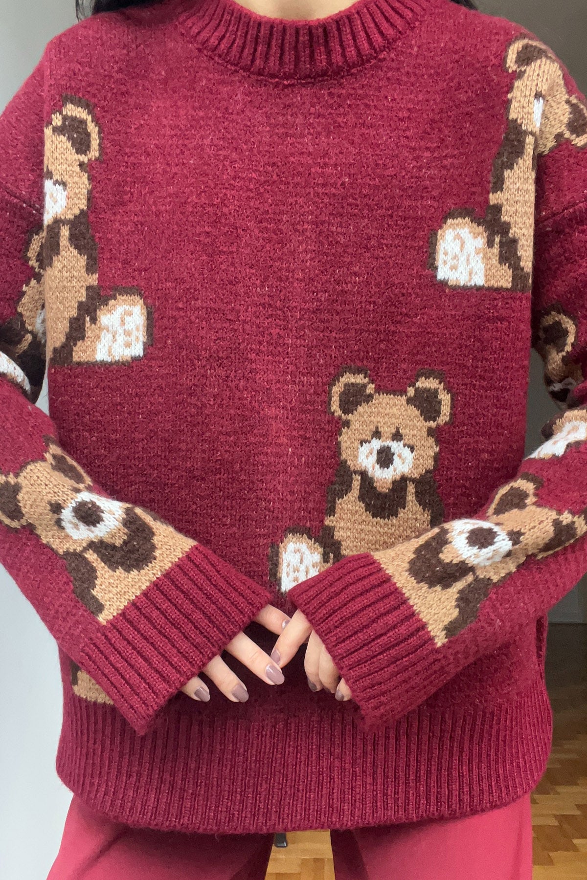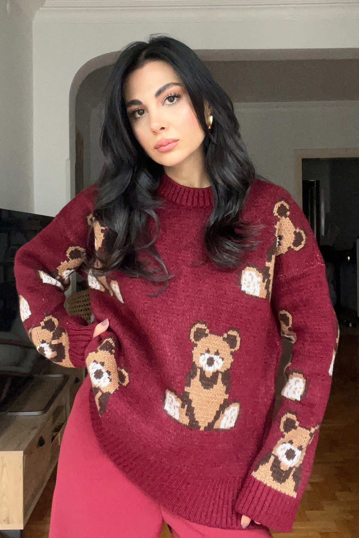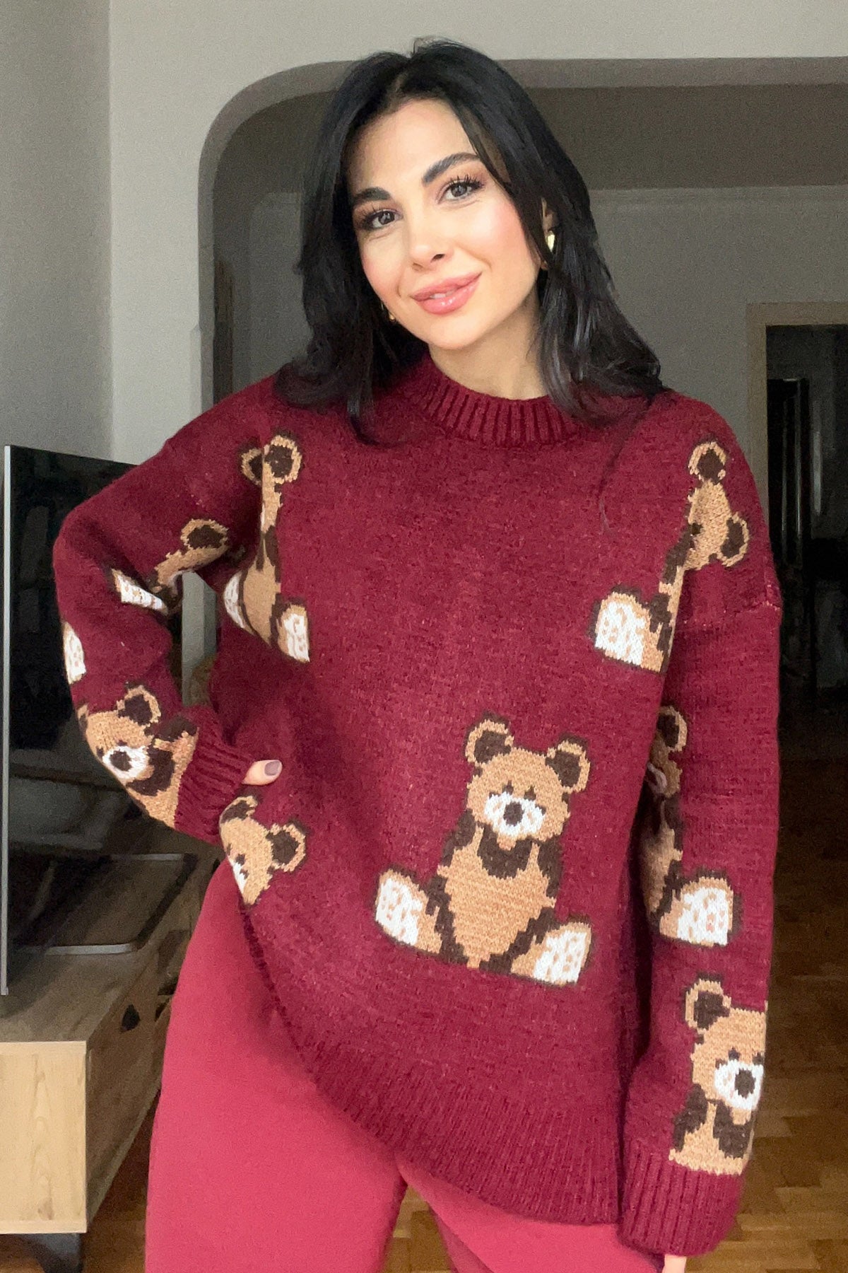 Bordo Ayıcıklı Kazak SY-2882-Bordo