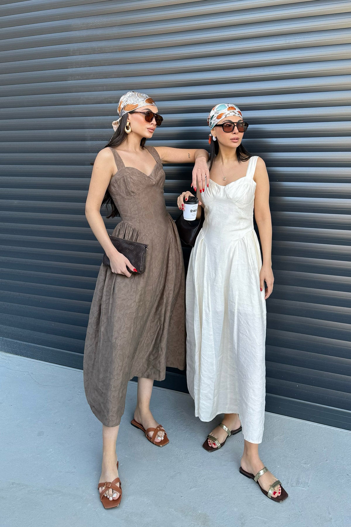 Ürün Detayları ; Sezonun en sevilen Elbise Seda Yalçın Atelier'de sizleri bekliyor Bej Yanları Büzgülü Göğüs Kuplu Elbise kombinlerinizin vazgeçilmezi olacak !