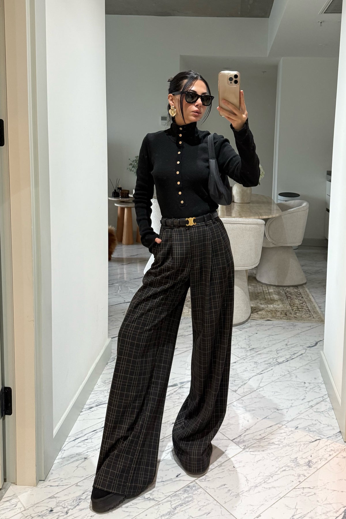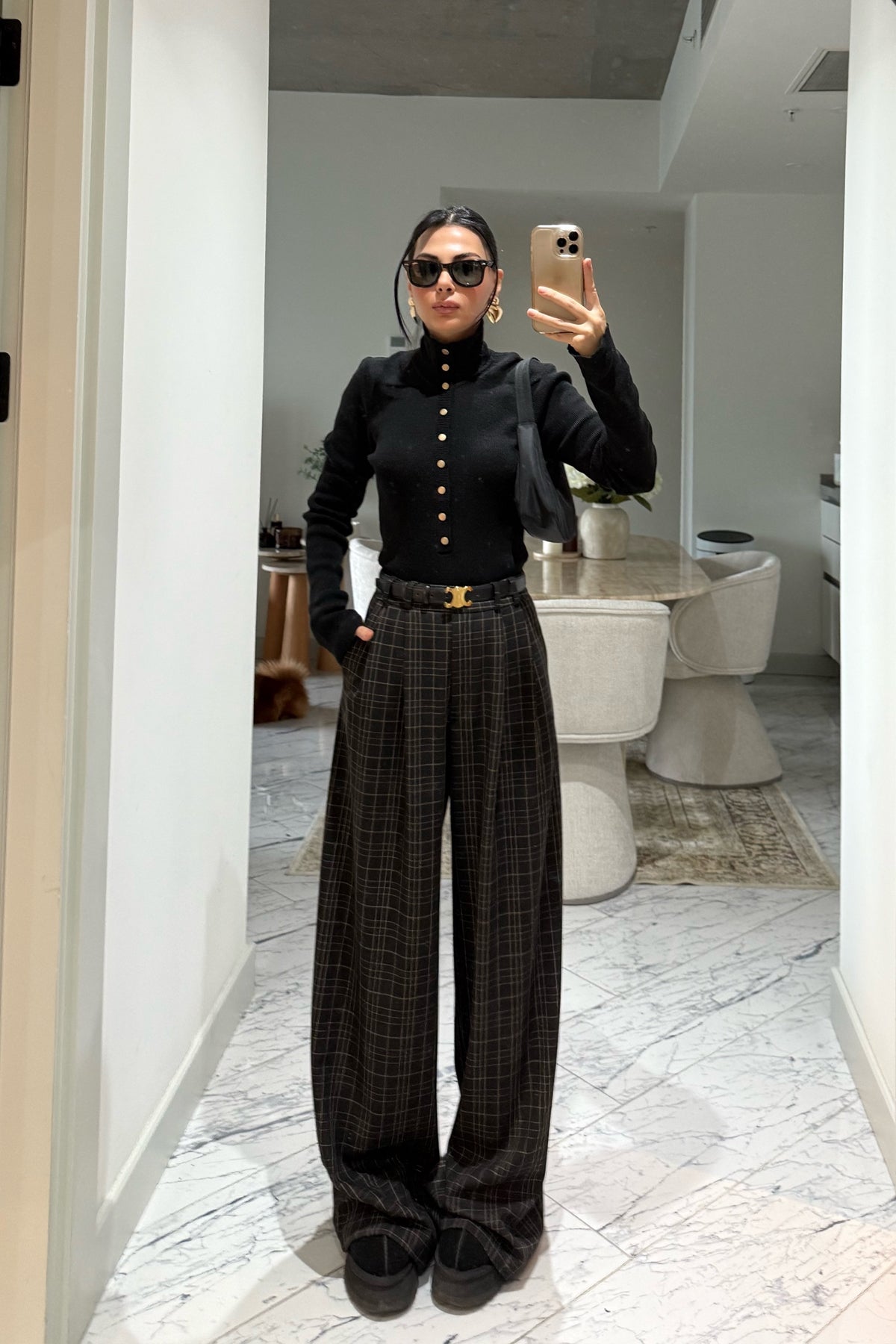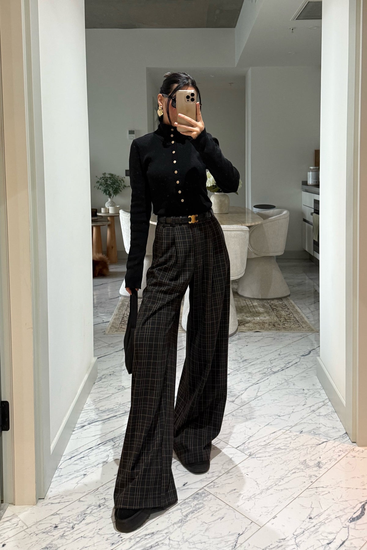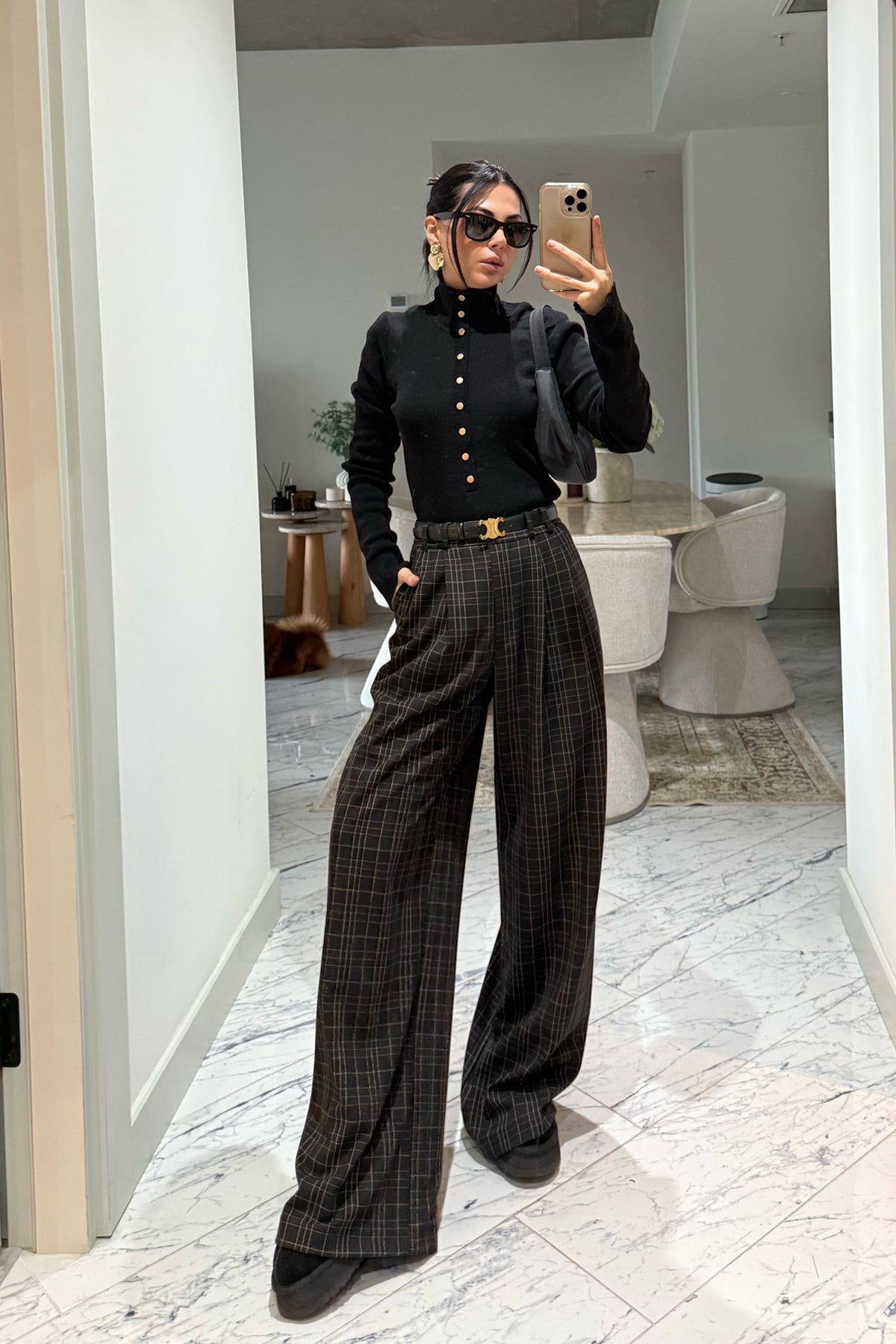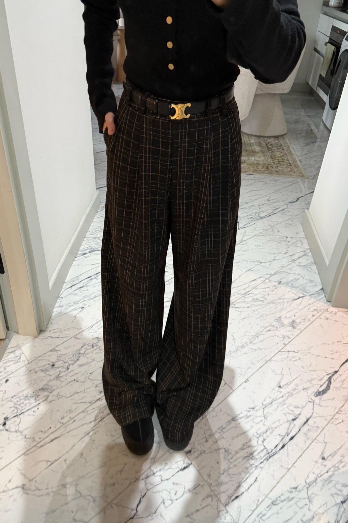 Ürün Detayları:Antrasit Yüksek Bel Ekoseli Kahve Çizgili Pantolon