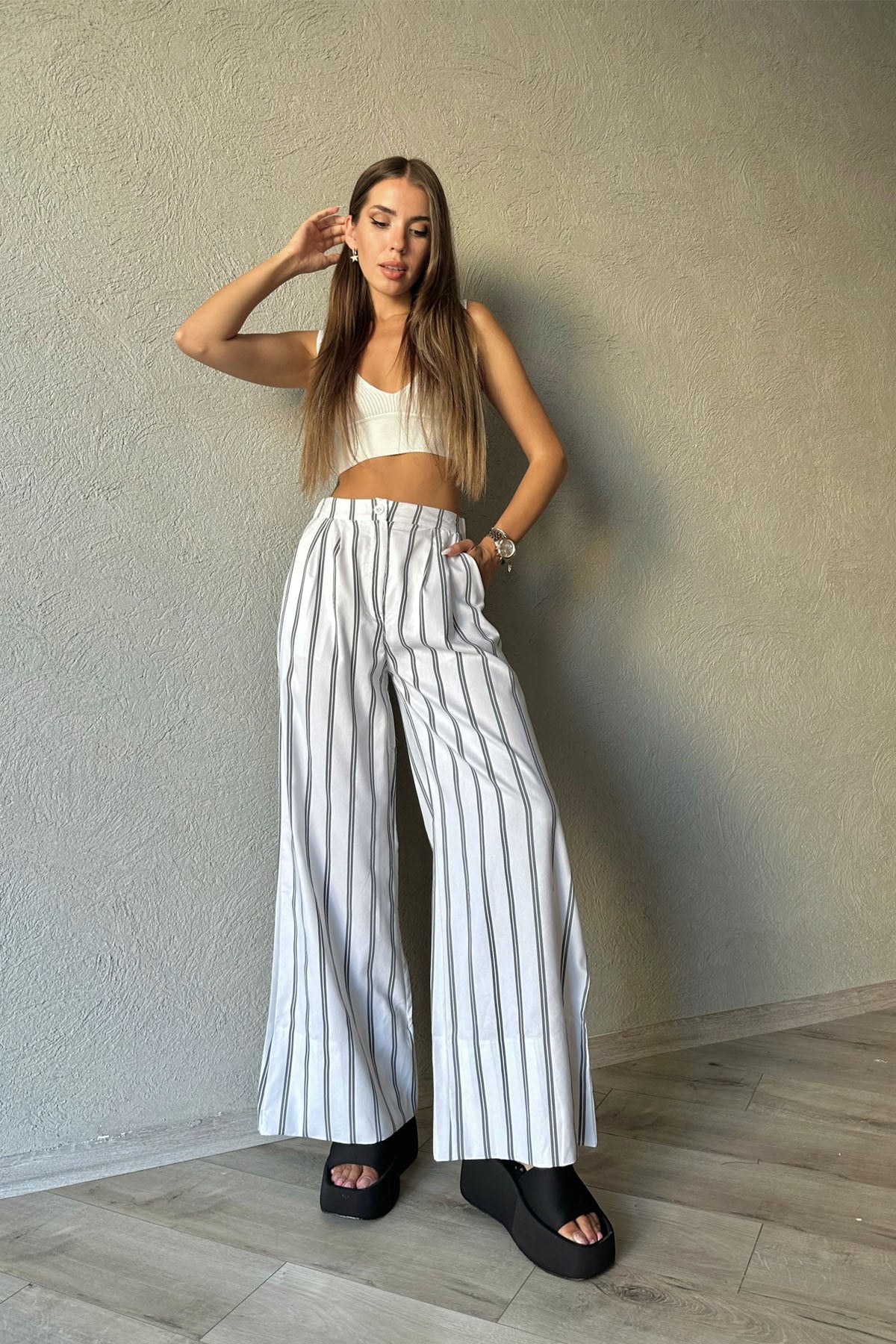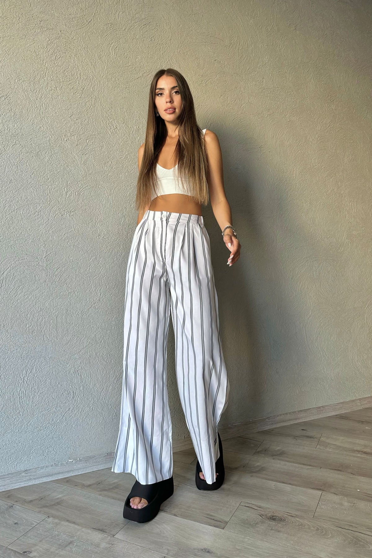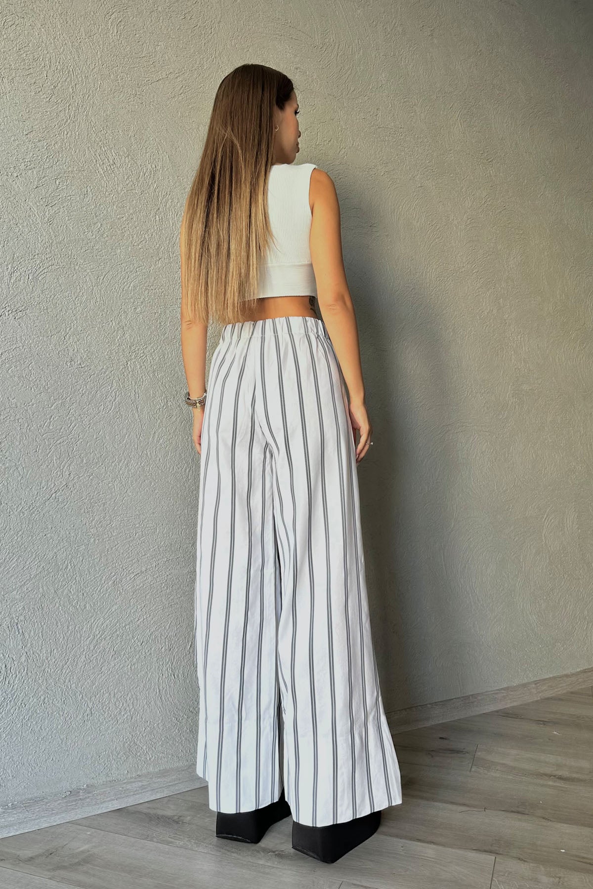 Ürün Detayları ; Beyaz Çift Çizgili pantolon. Beli lastiklidir, uygun iç çamaşırı kullanımı öneririz.
