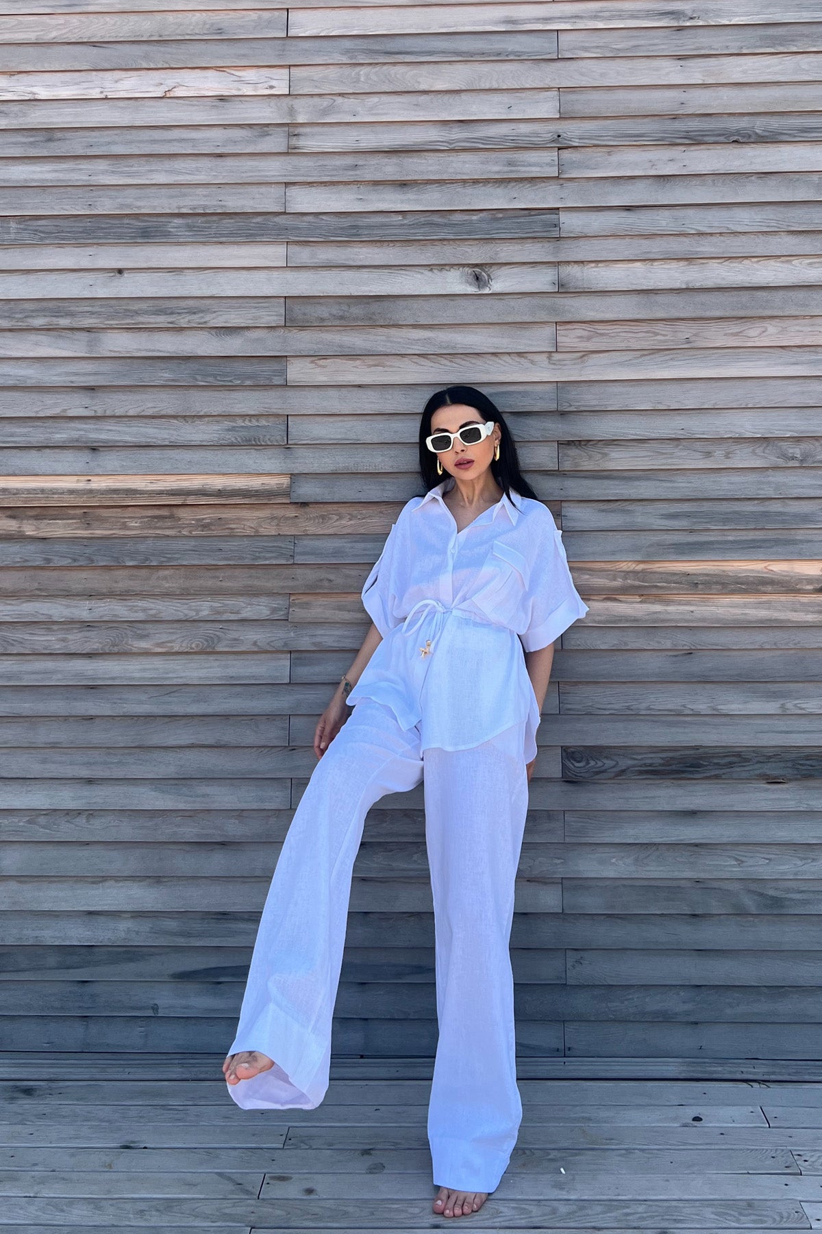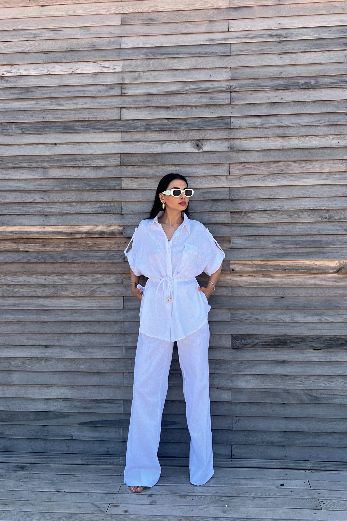 Belden Bağlama Detaylı Keten Takım