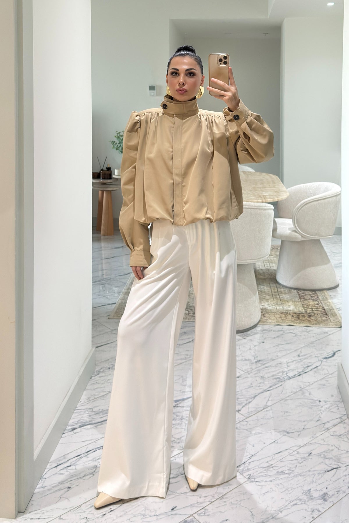Ekru Pilili Palazzo Pantolon SY-3598-Ekru