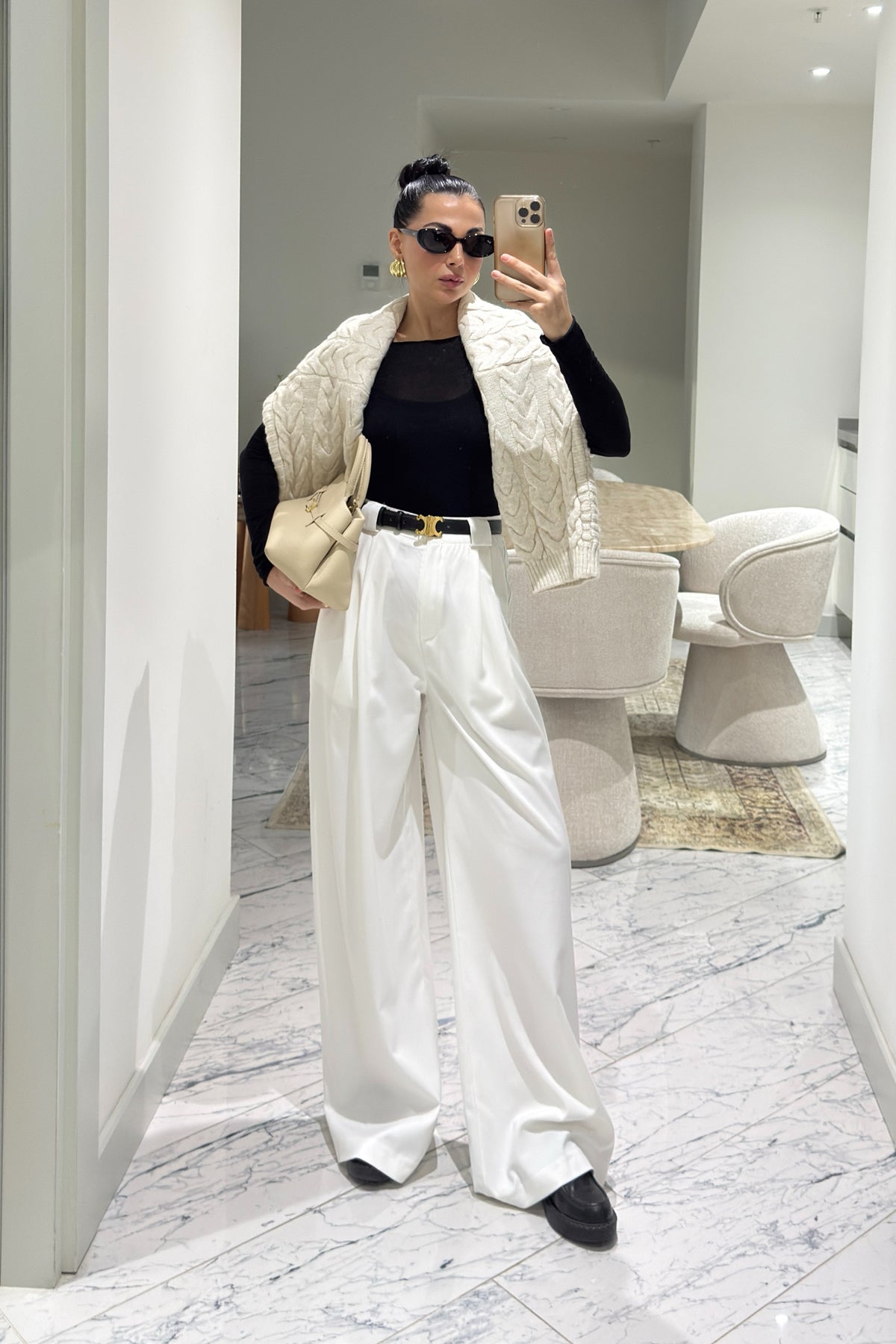 Ürün Detayları:Ekru Pilili Palazzo Pantolon