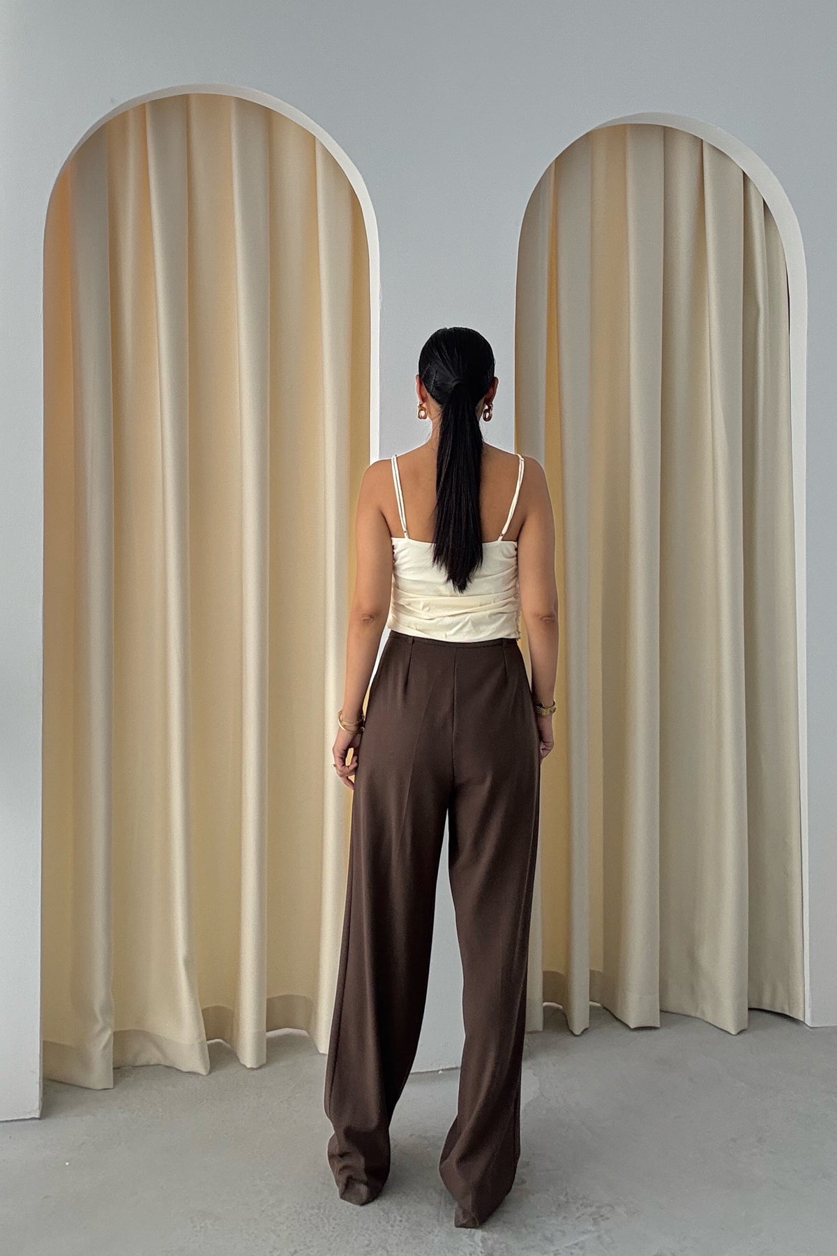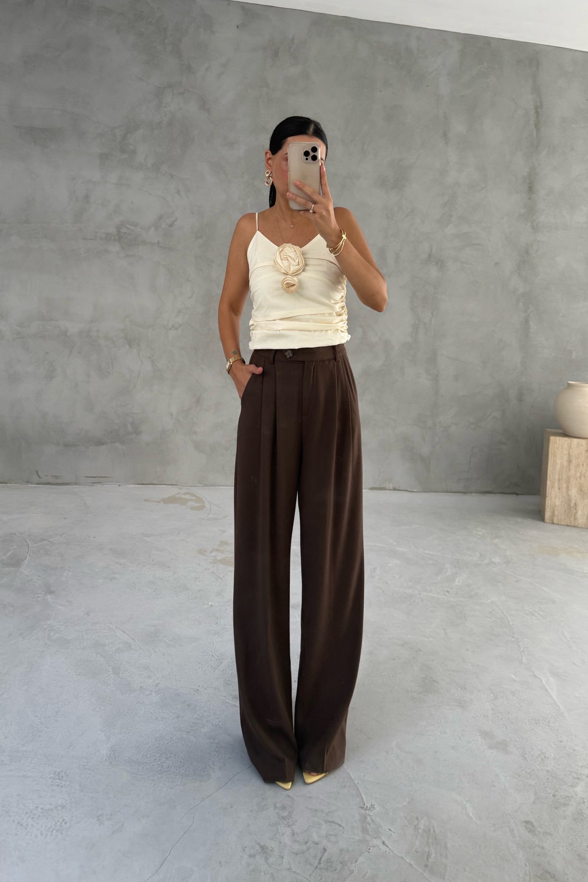 Kahve Yüksek Bel Bol Paça Palazzon Pantolon SY-3325-Kahve