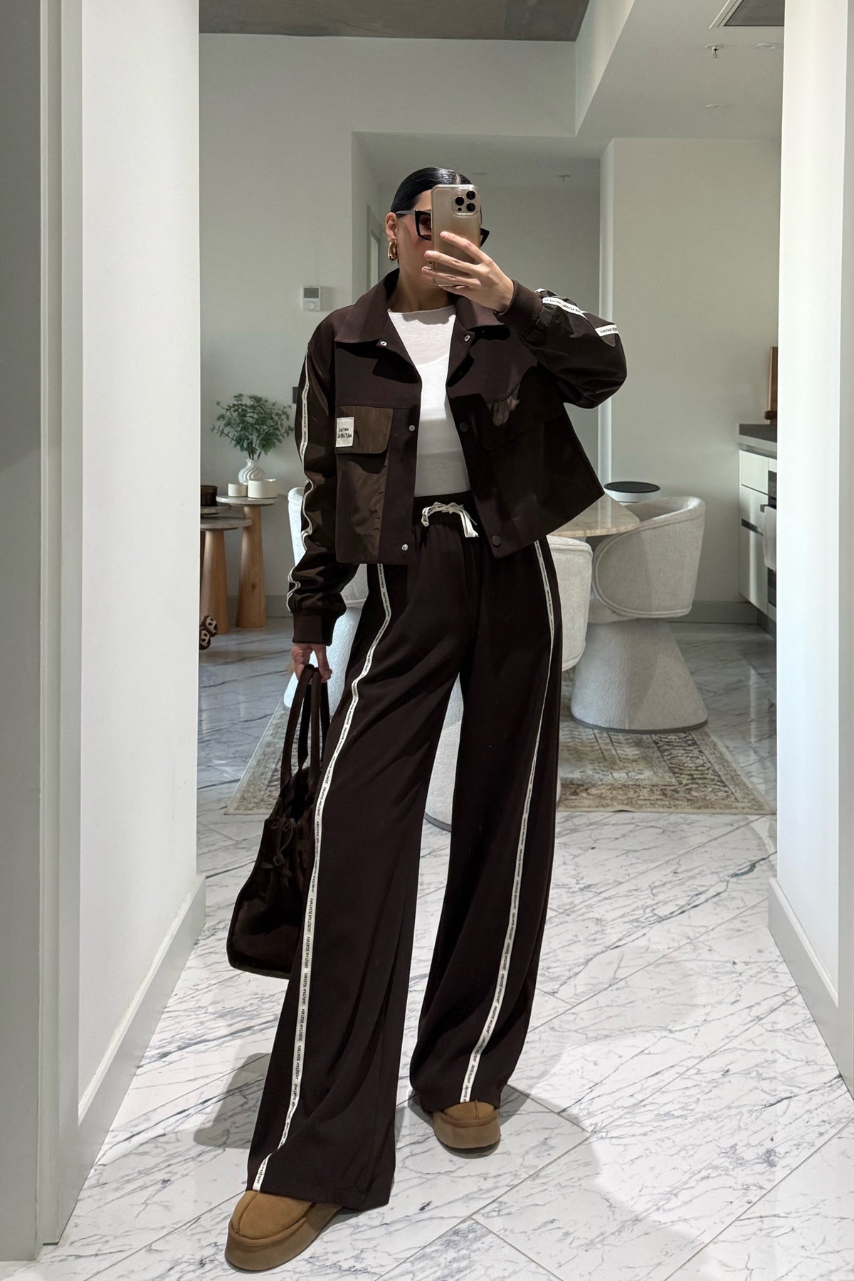 Ürün Detayları: Kahverengi Şerit Yazı Detaylı Yüksek Bel Pantolon