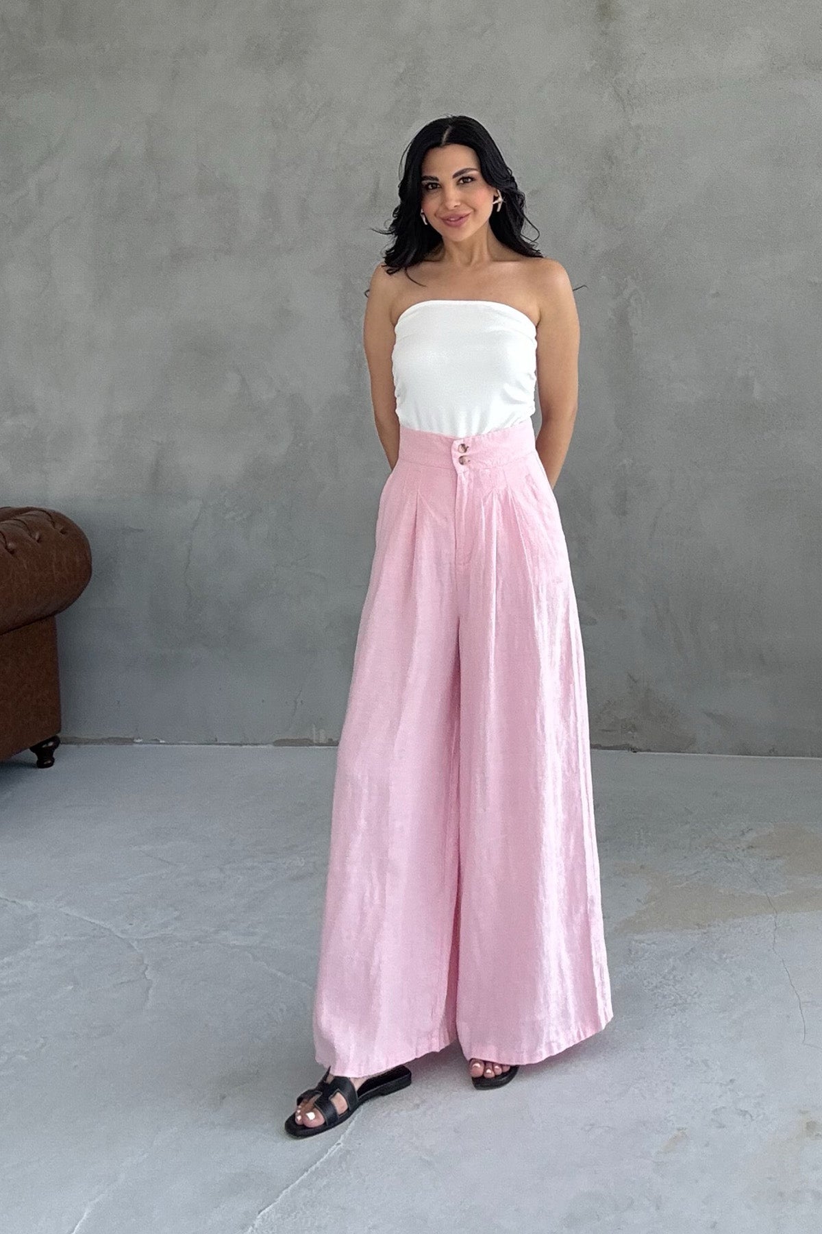 Pembe Çift Düğmeli Keten Pantolon SY-2228-Pembe