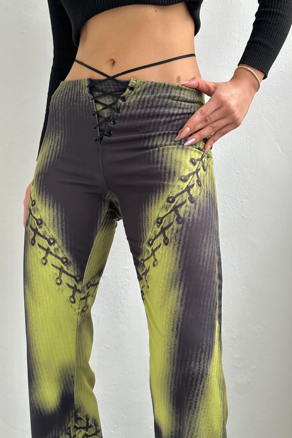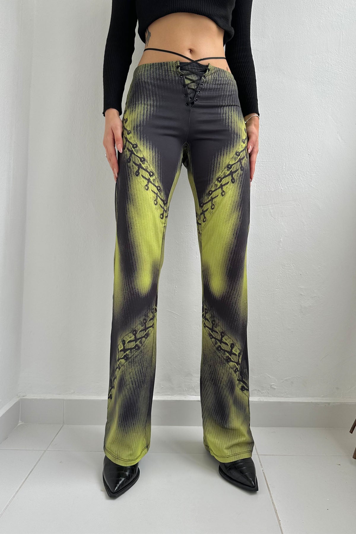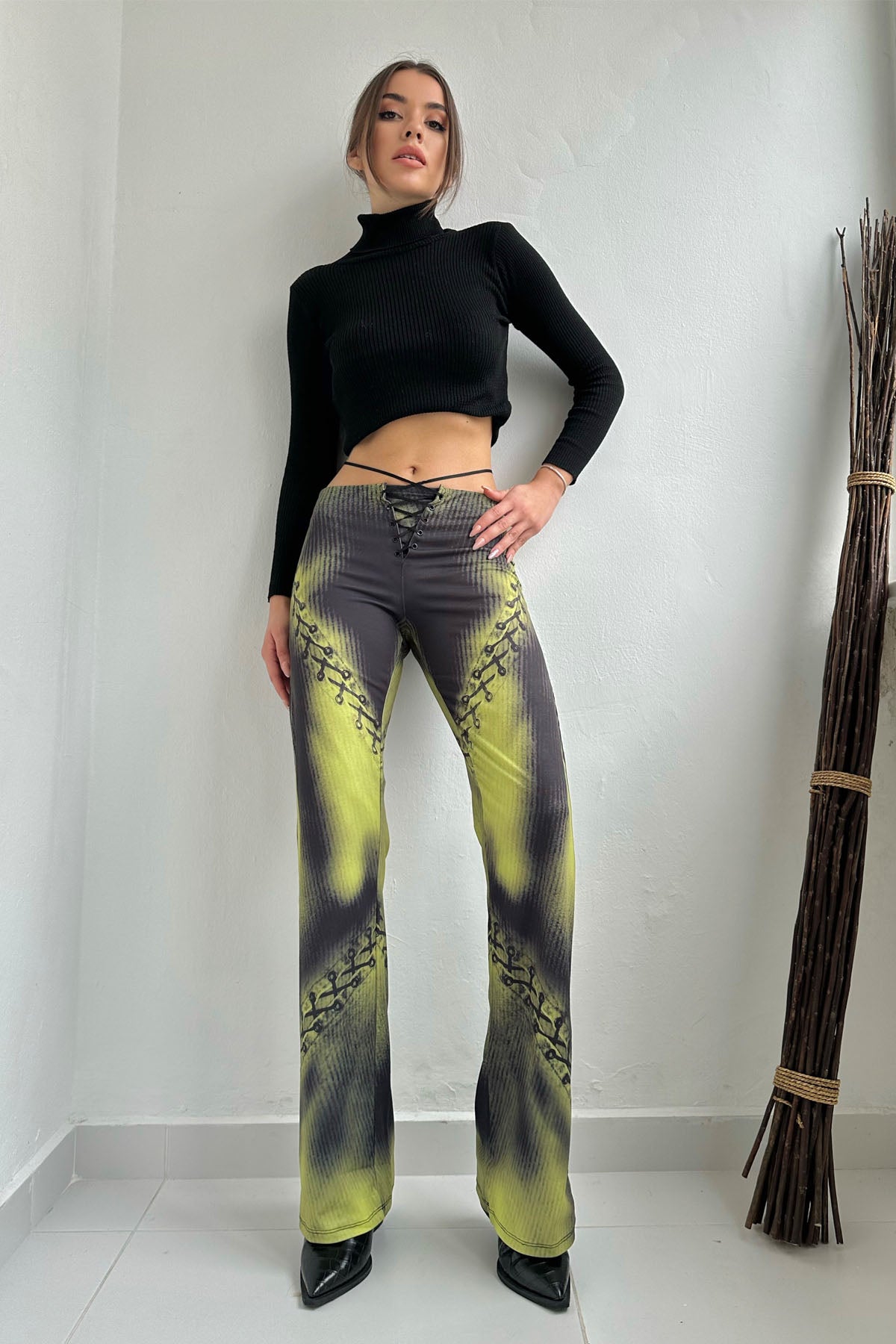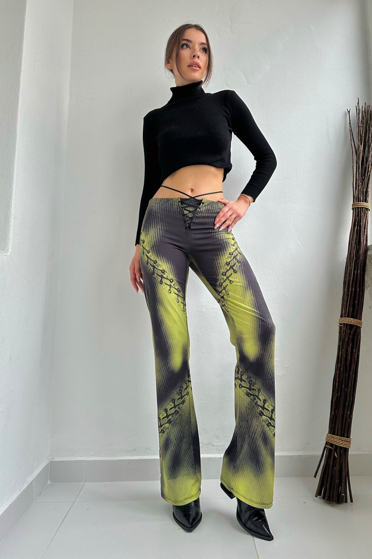 Siyah Desenli Beli Bağlama Detay Pantolon SY-0118-Siyah