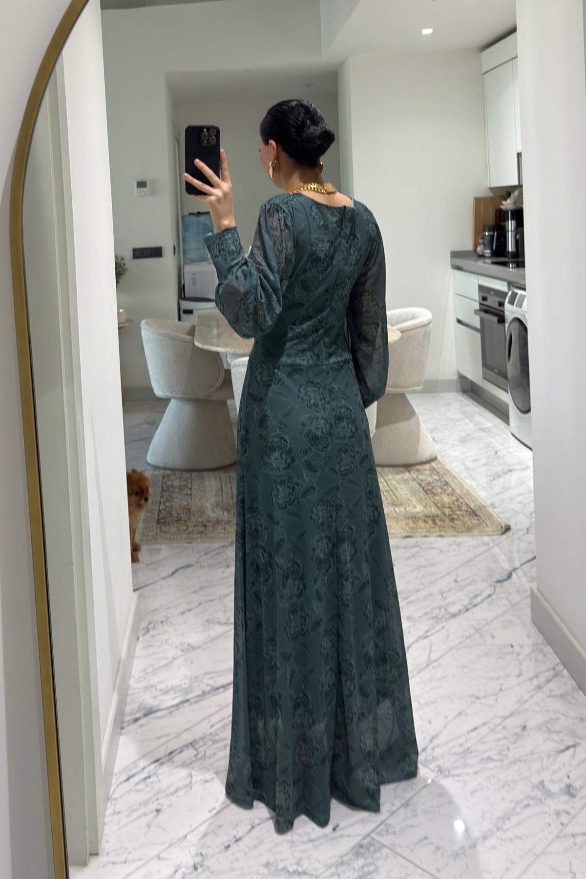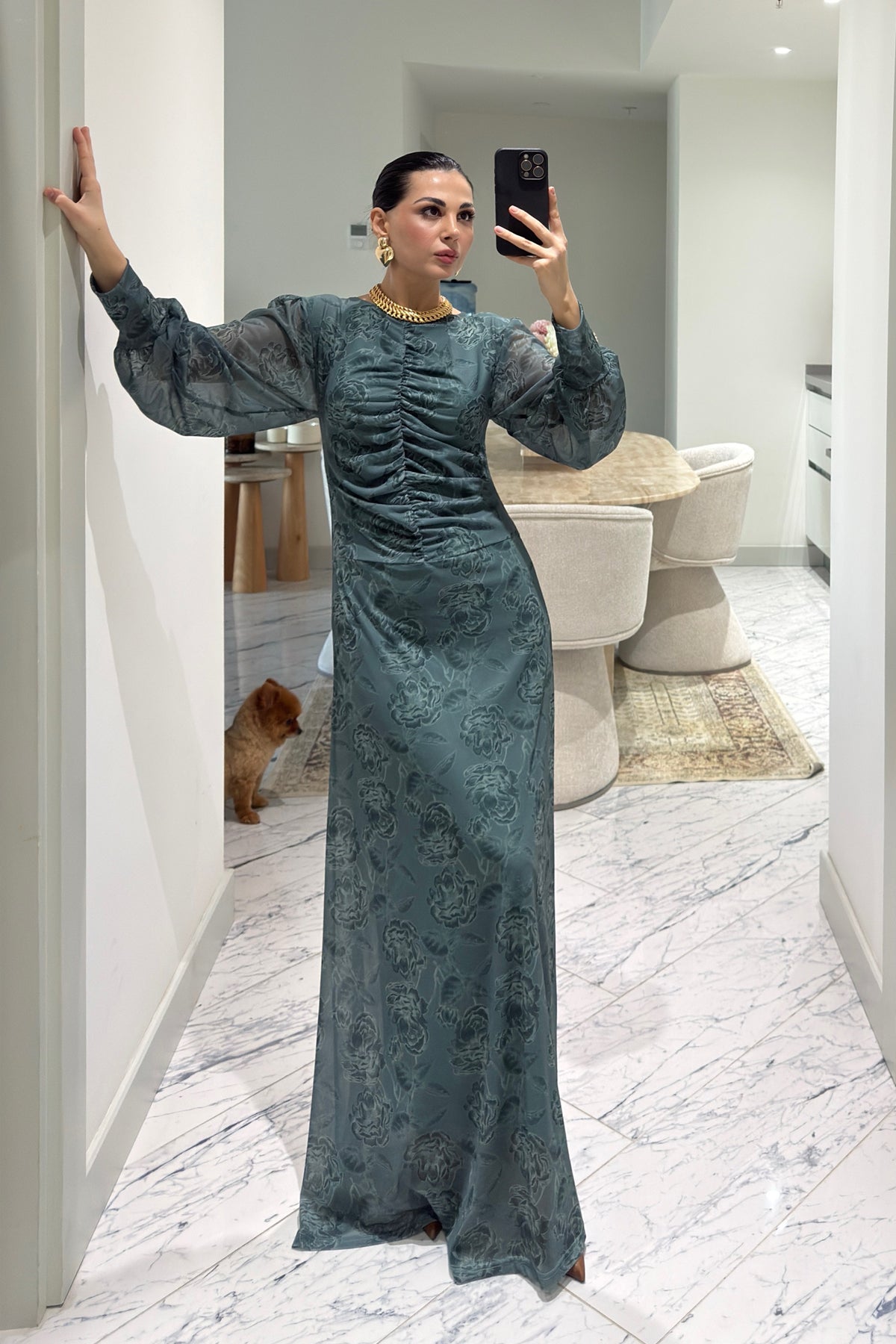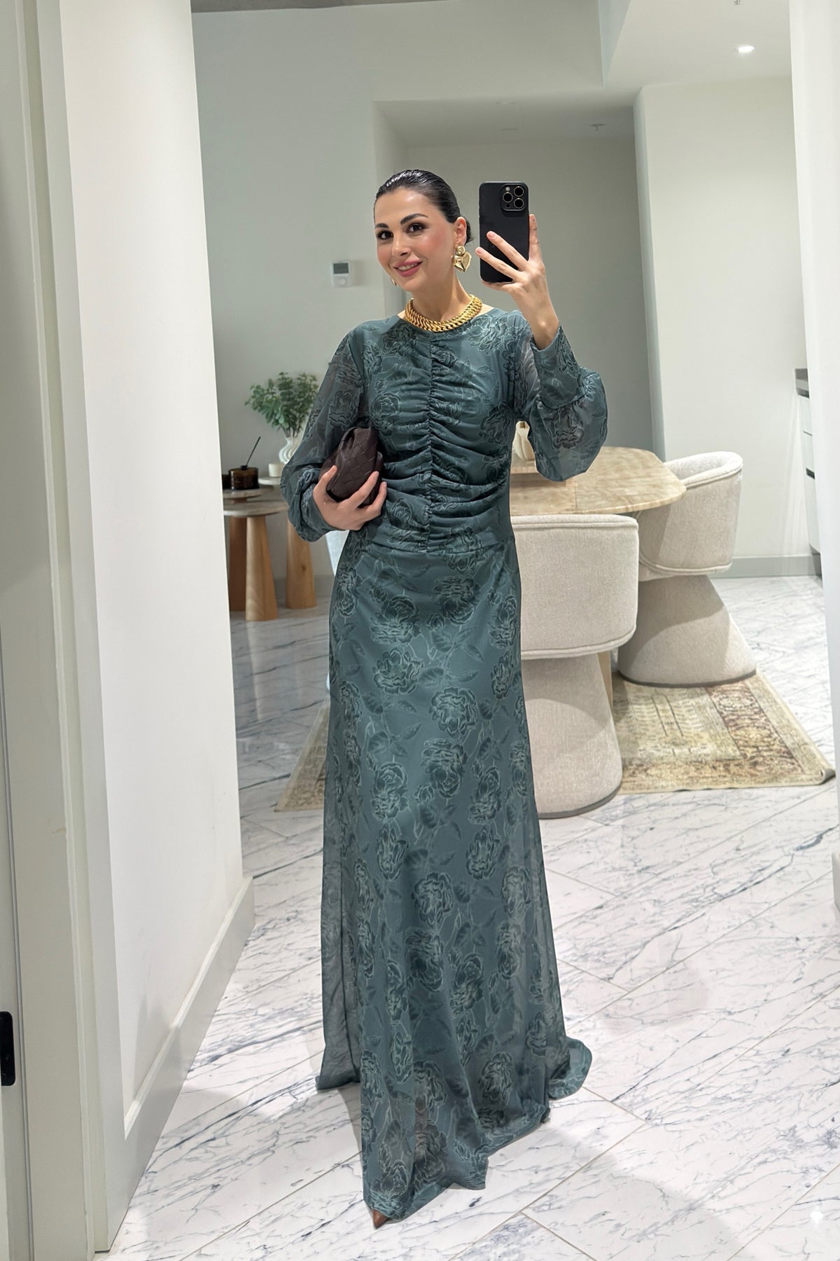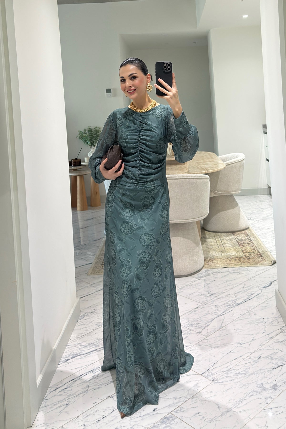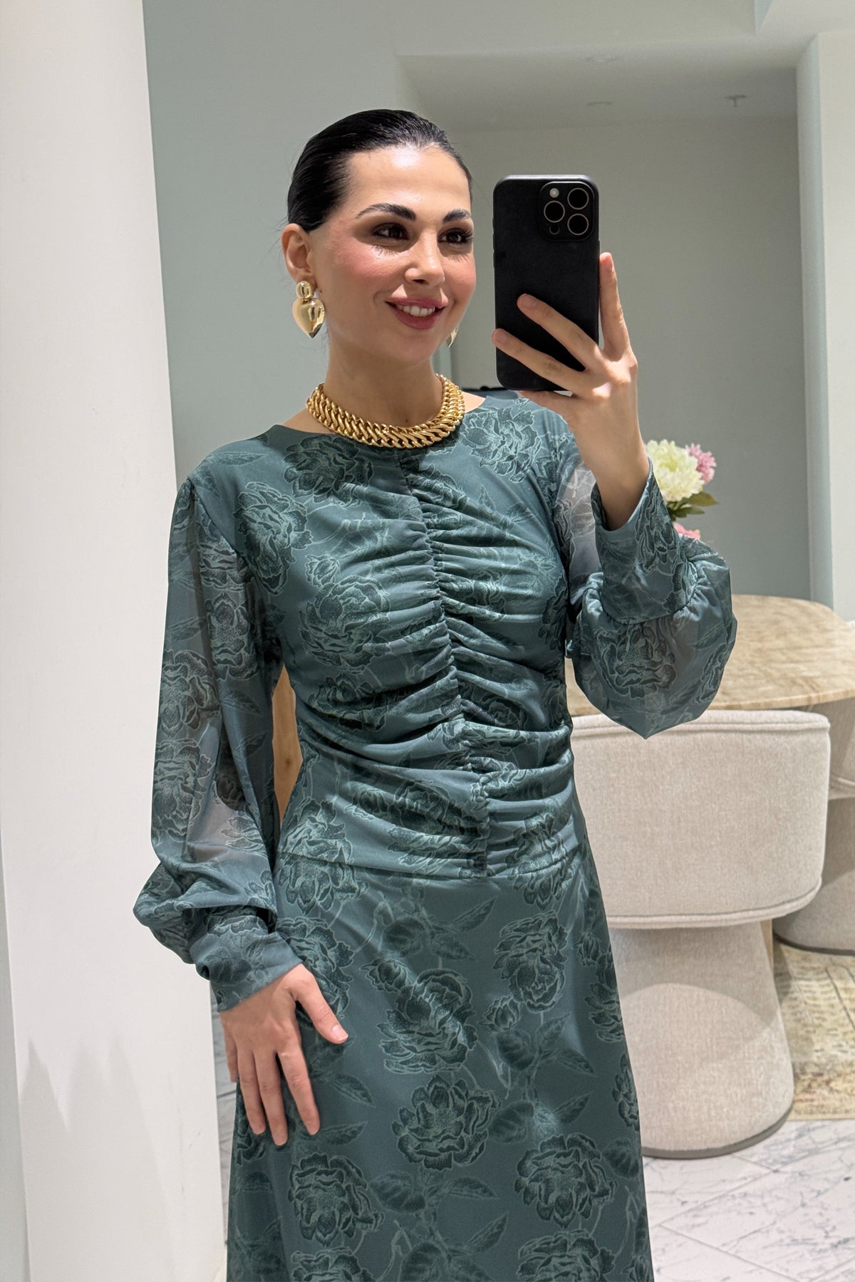 Ürün Detayları:Yeşil Önü Büzgü Detaylı Elbise
