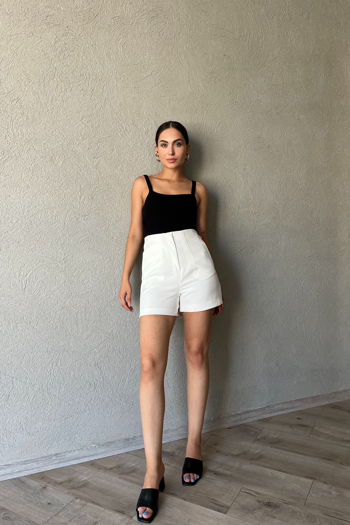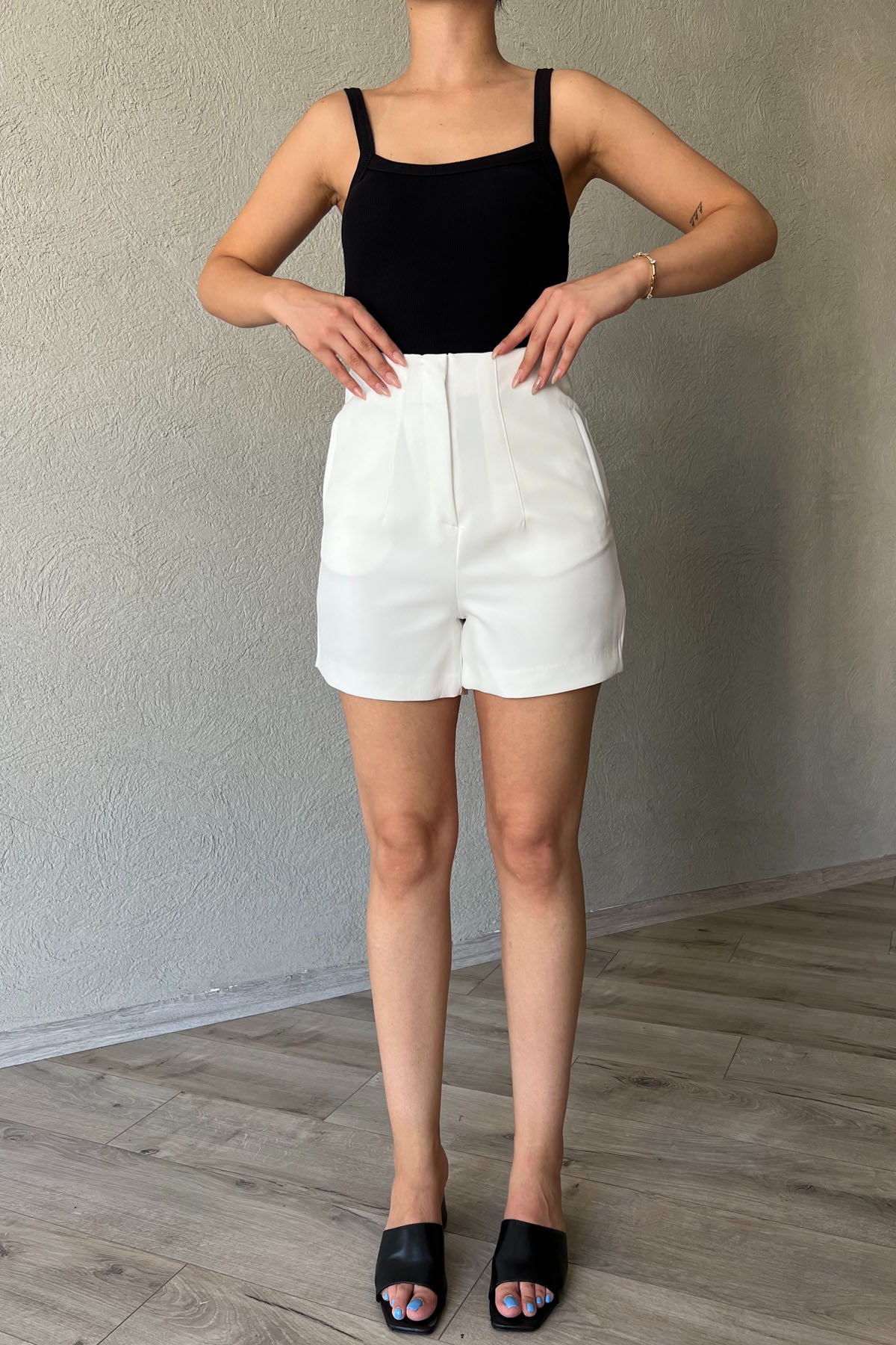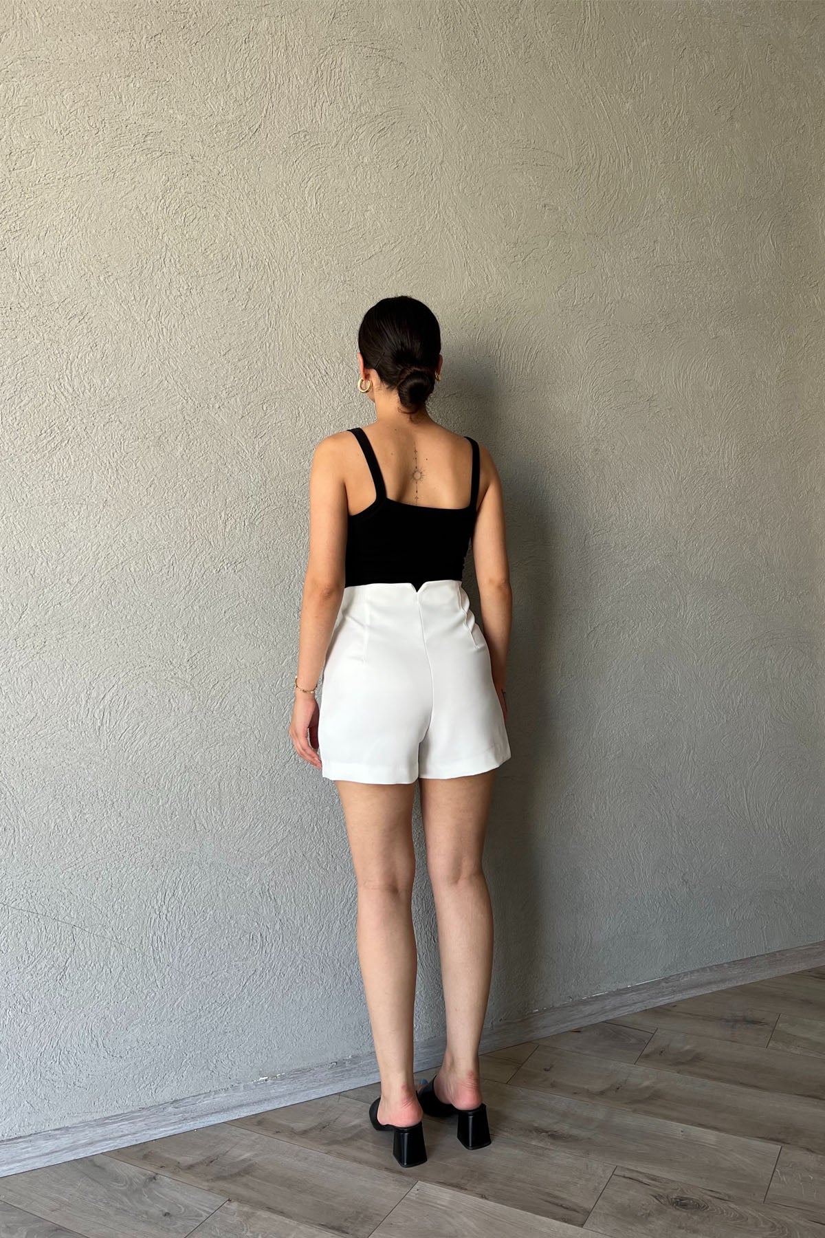 Beyaz Pens Detaylı Mini Şort SY-2305-Beyaz