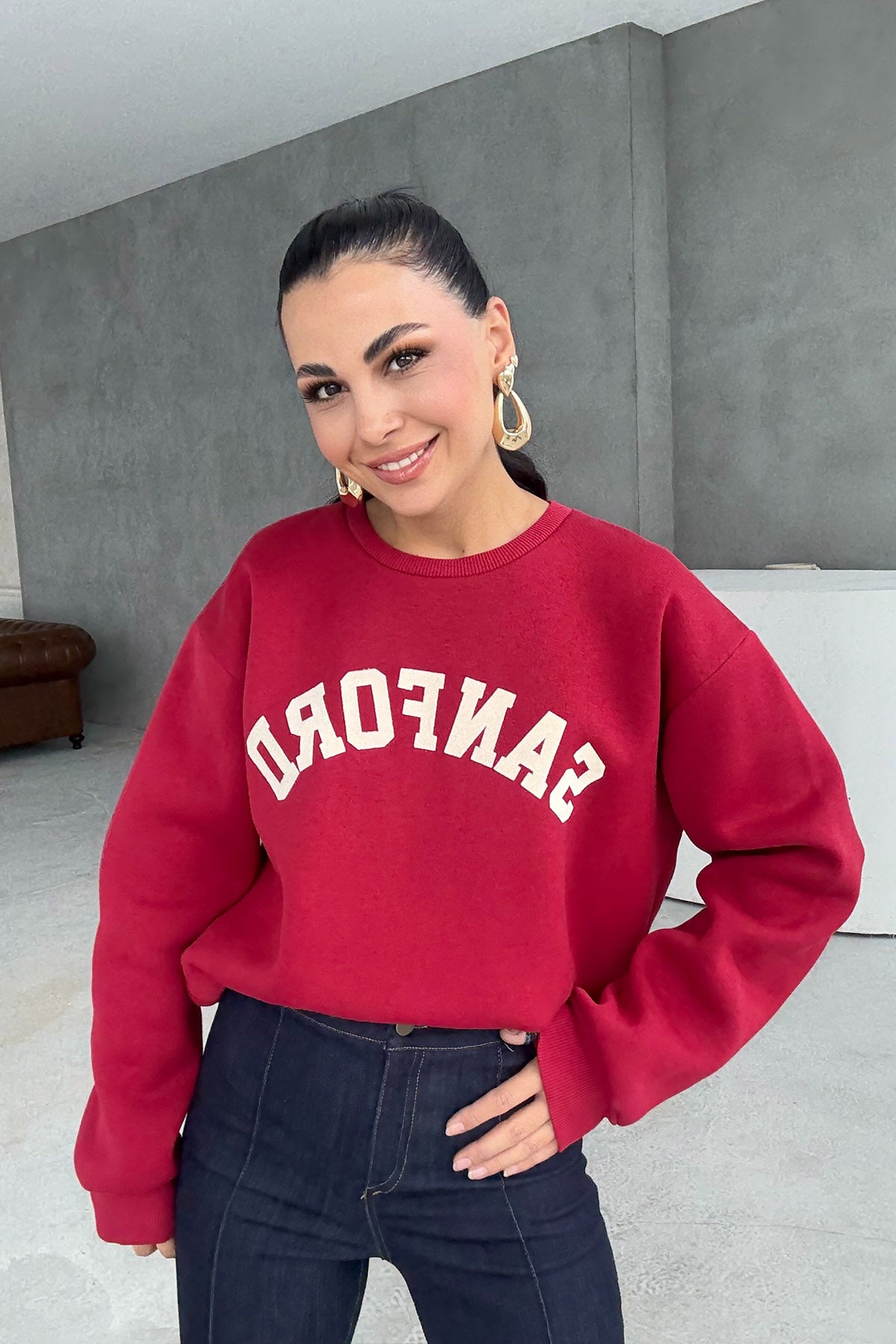 Bordo Yazı Baskılı Sweatshırt SY-2414-Bordo