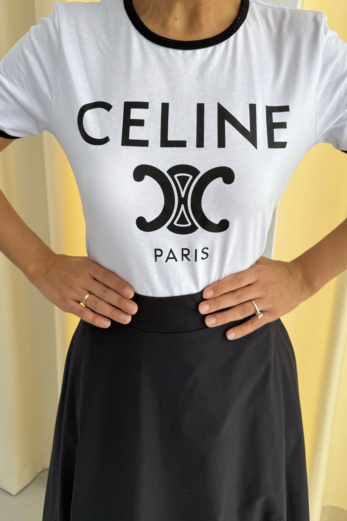 Ürün Detayları ;Beyaz Celine Muadil Baskılı Basic T-shırt
