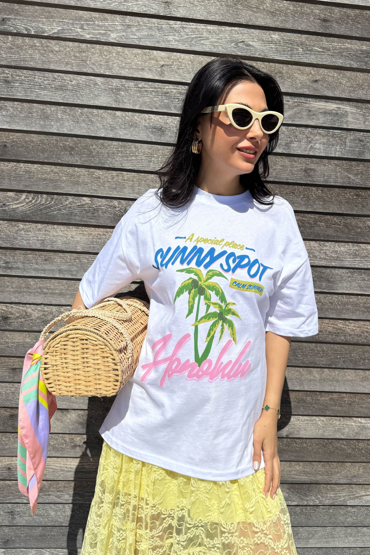 Ürün Detayları:Beyaz Baskılı Renkli Tişört