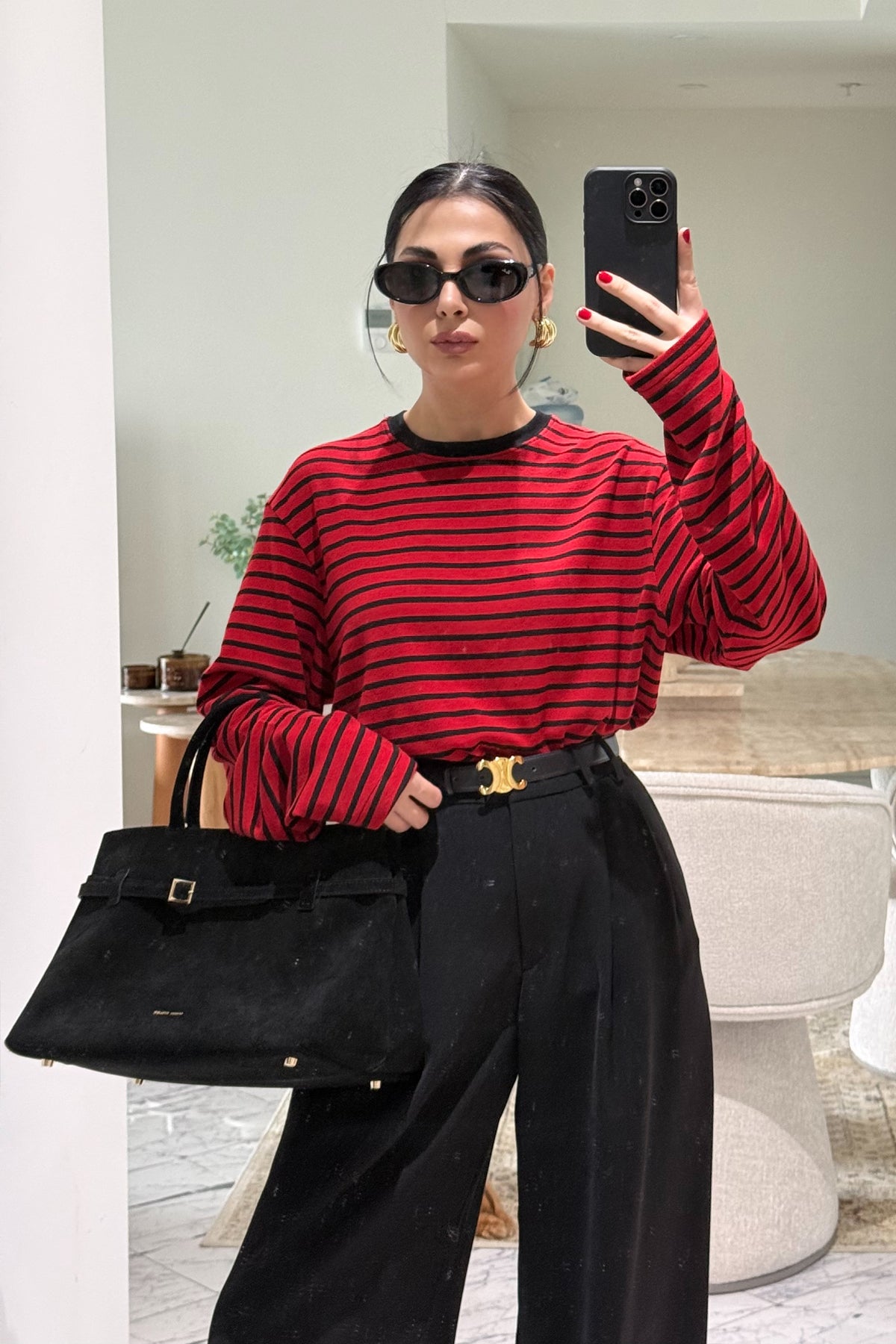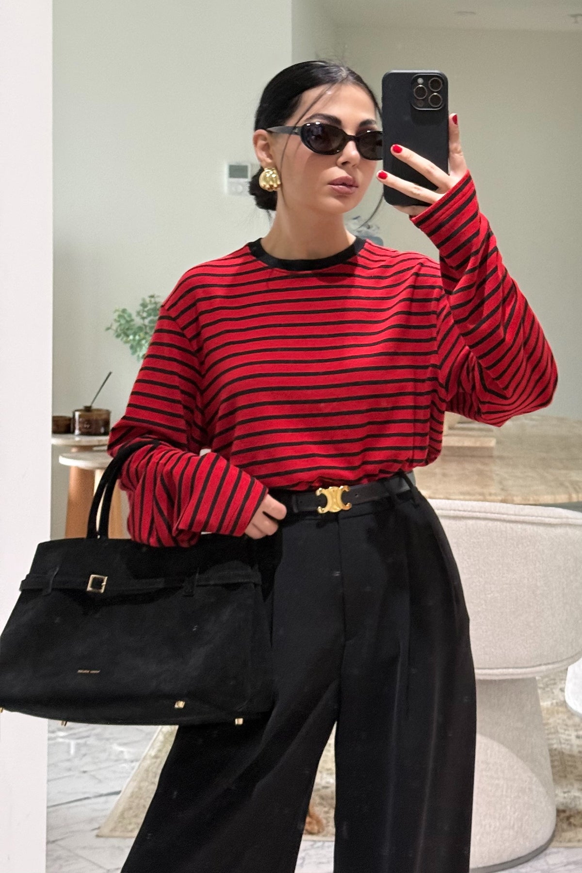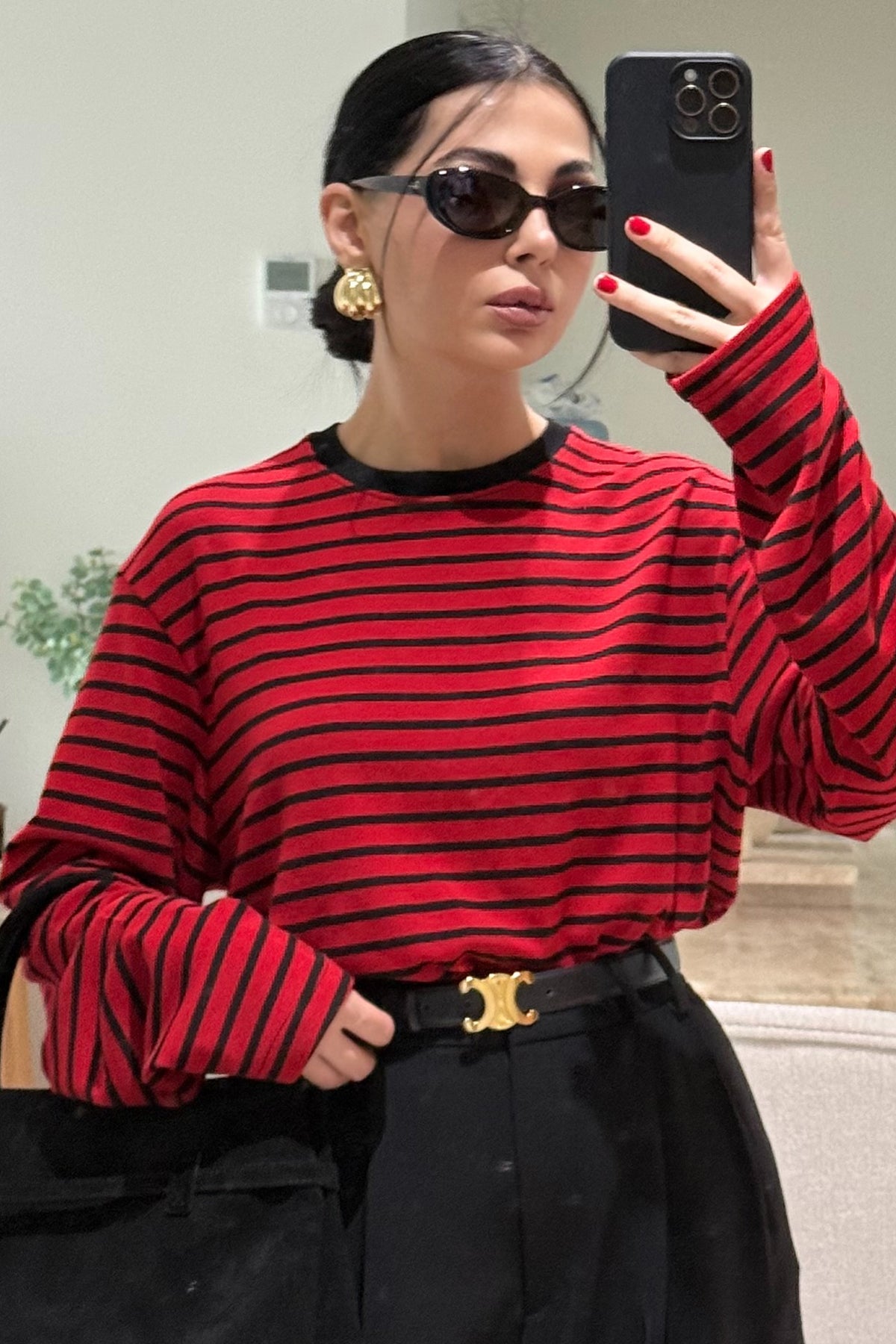 Ürün Detayları:Kırmızı-Siyah Biisiklet Yaka Çizgili Likralı Uzun Kollu T-Shirt