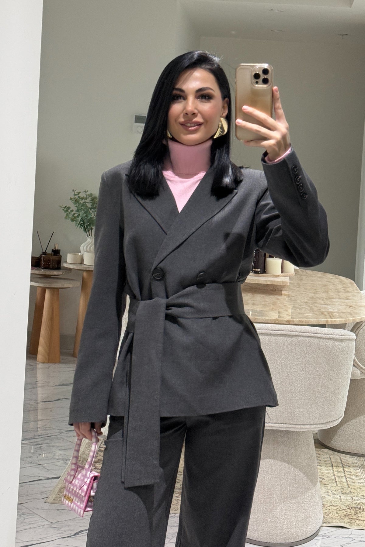 Ürün Detayları:Antrasit Kuşak Detaylı Ceket ve Pantolon Takım