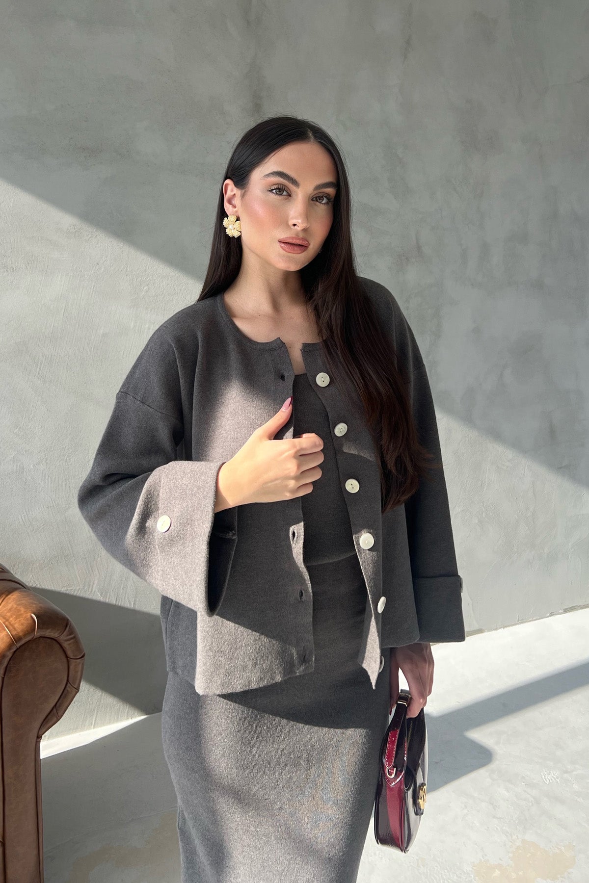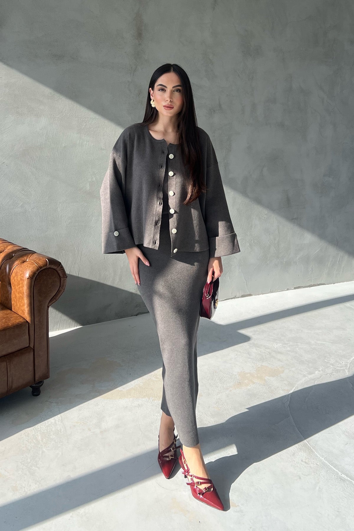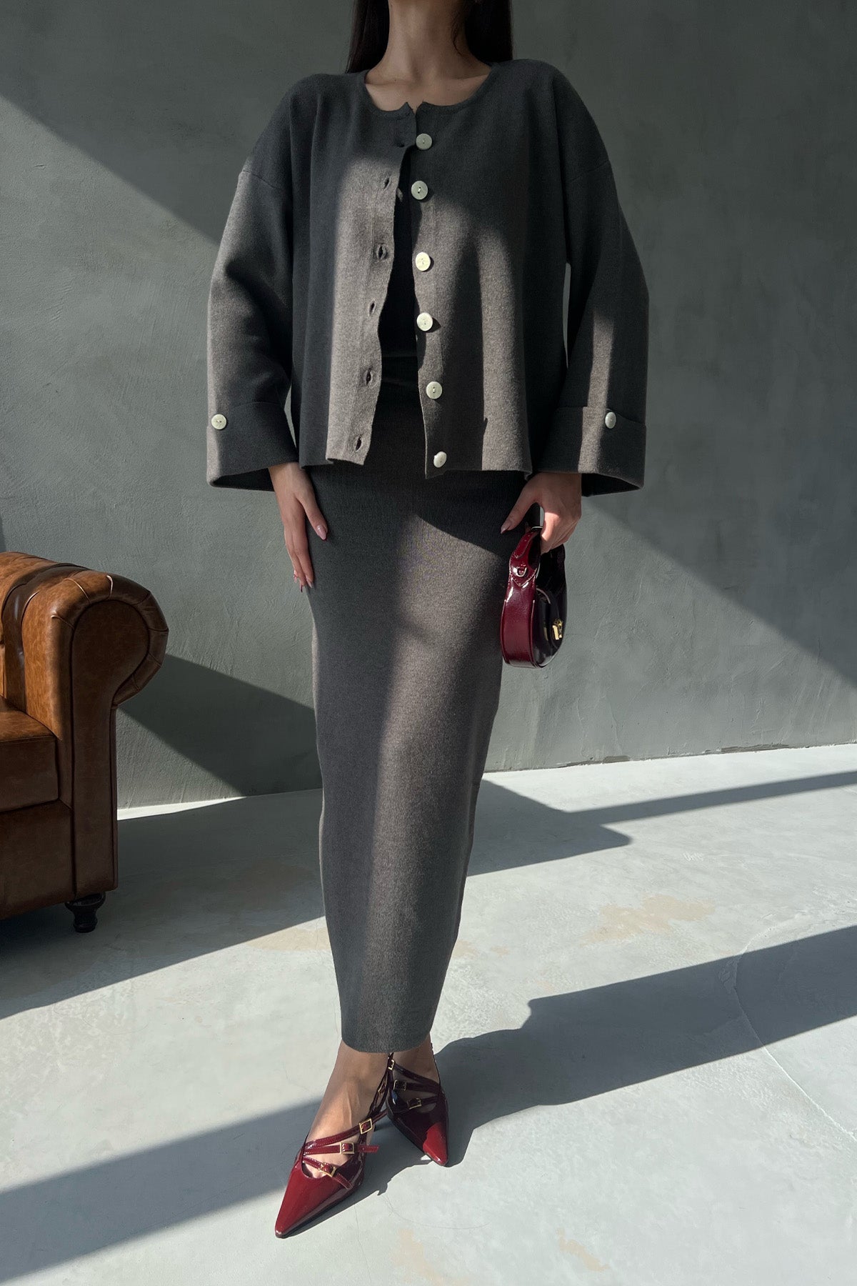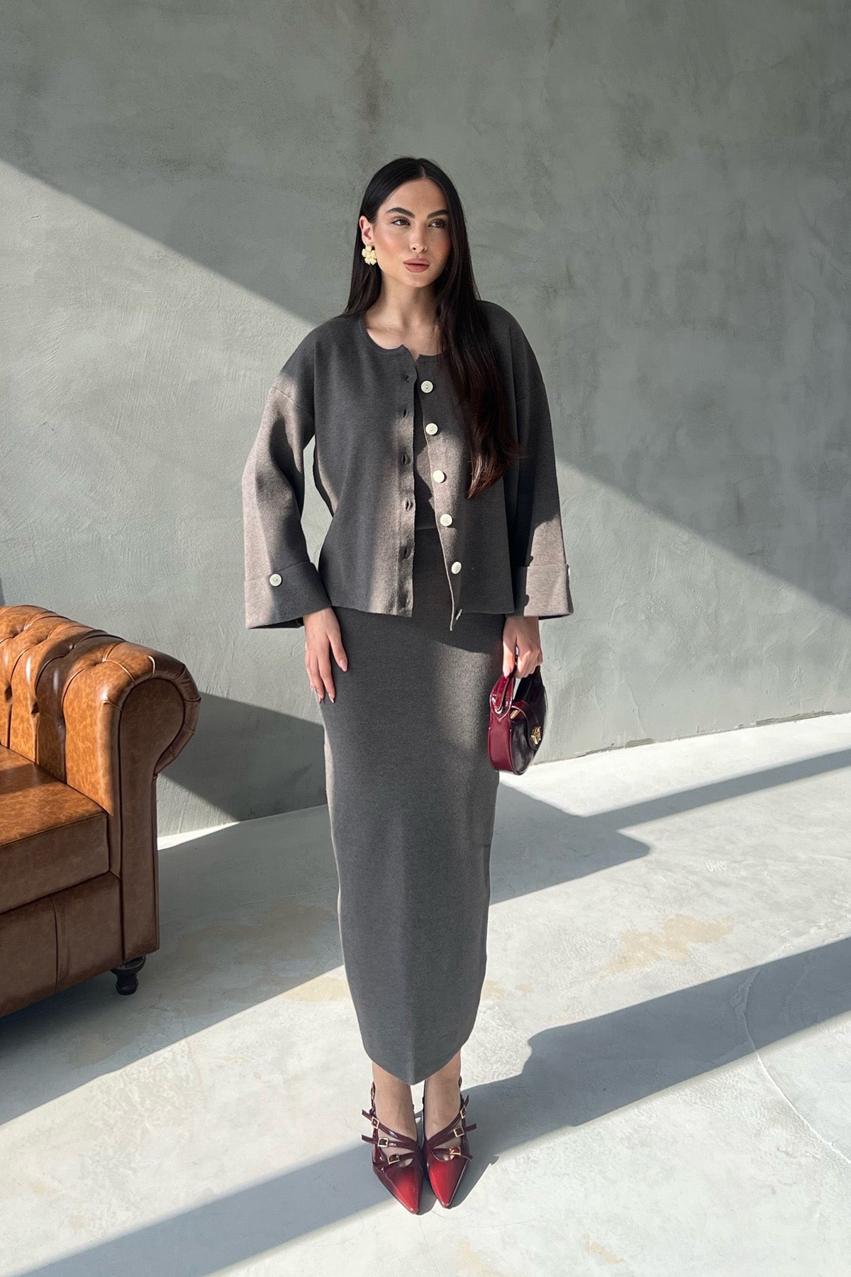 Antrasit Tasarım Triko Hırka Bluz Etek Takım SY-2432-Antrasit