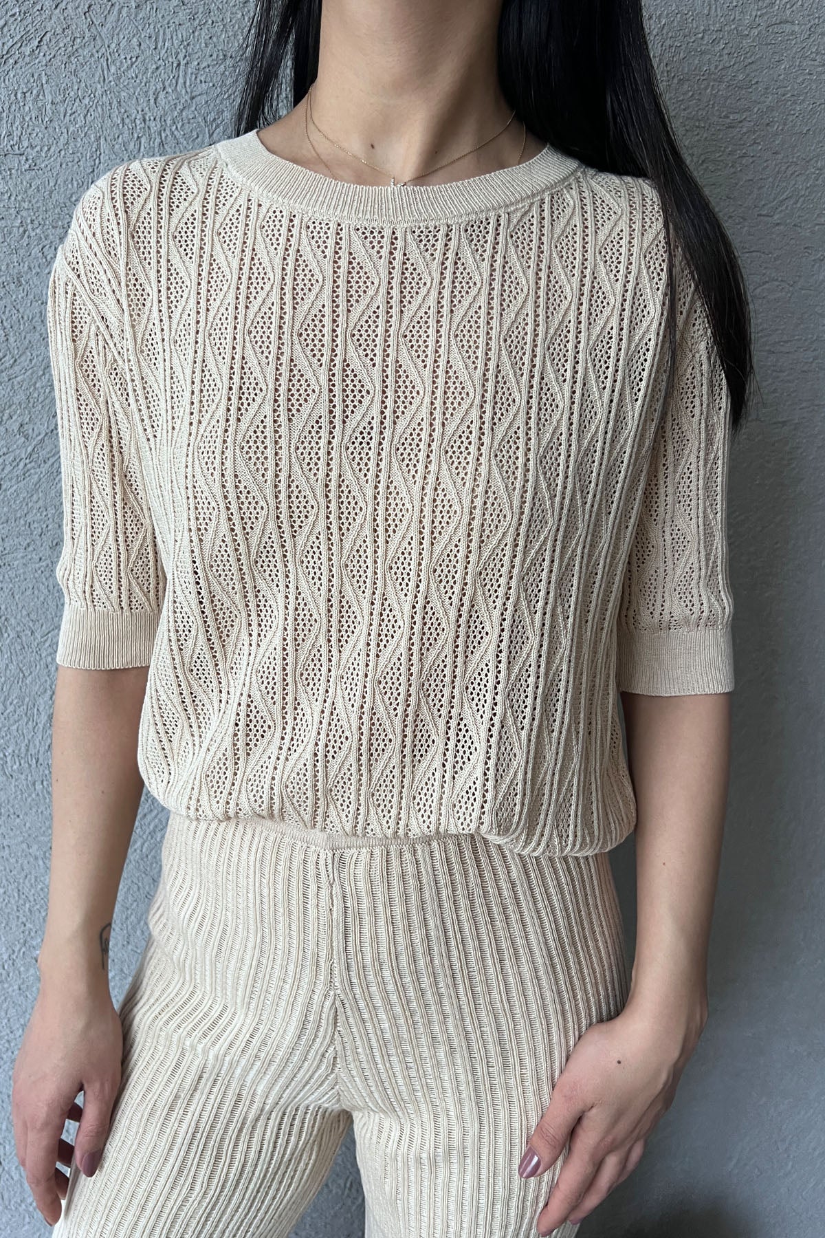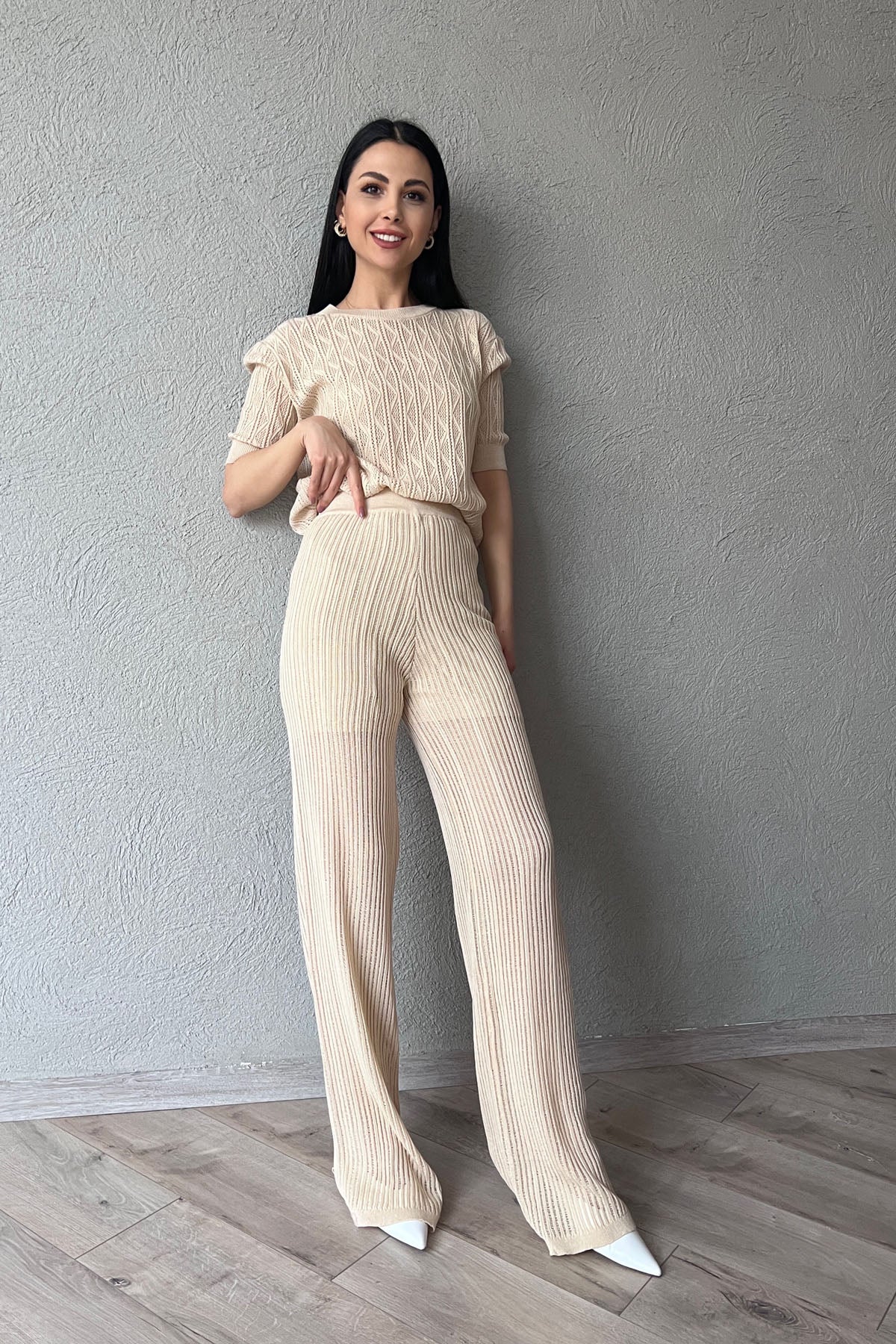 Bej Delikli Ajurlu İkili Tasarım Takım SY-0493-Bej