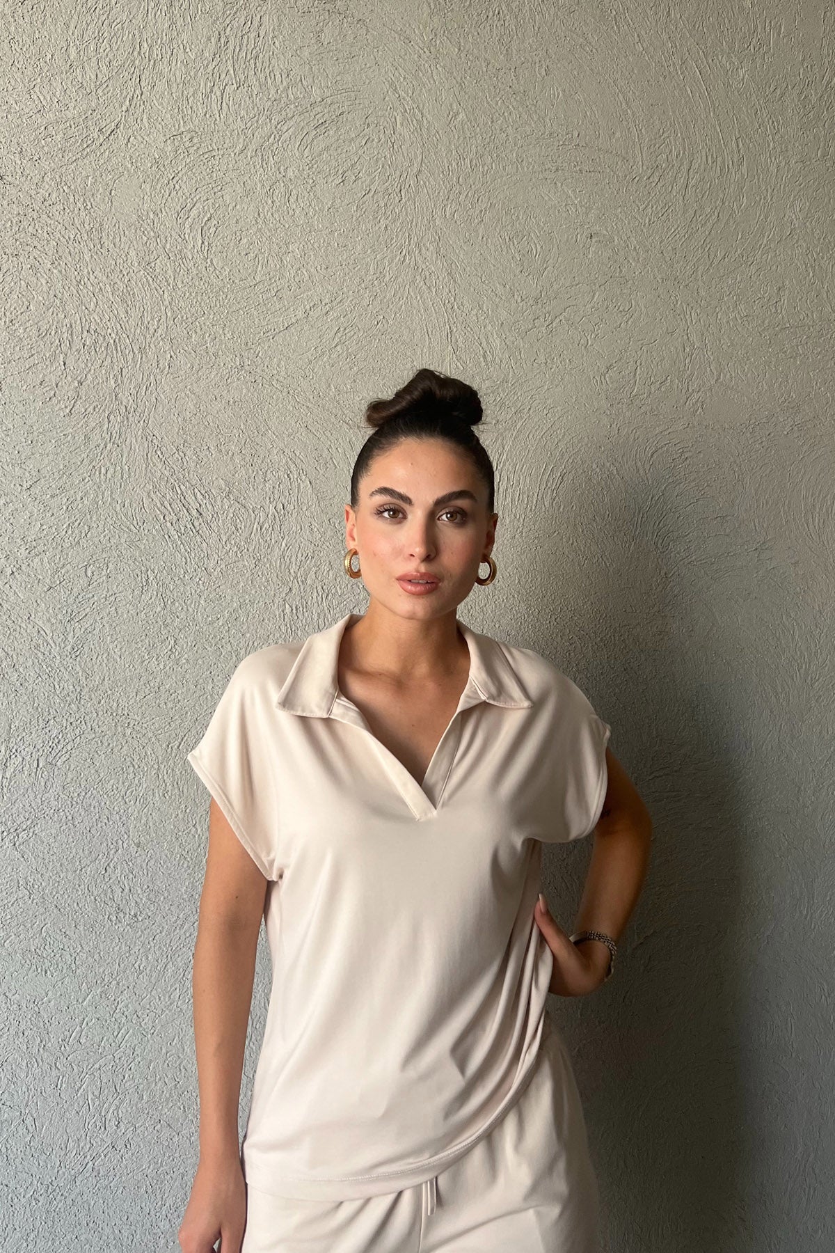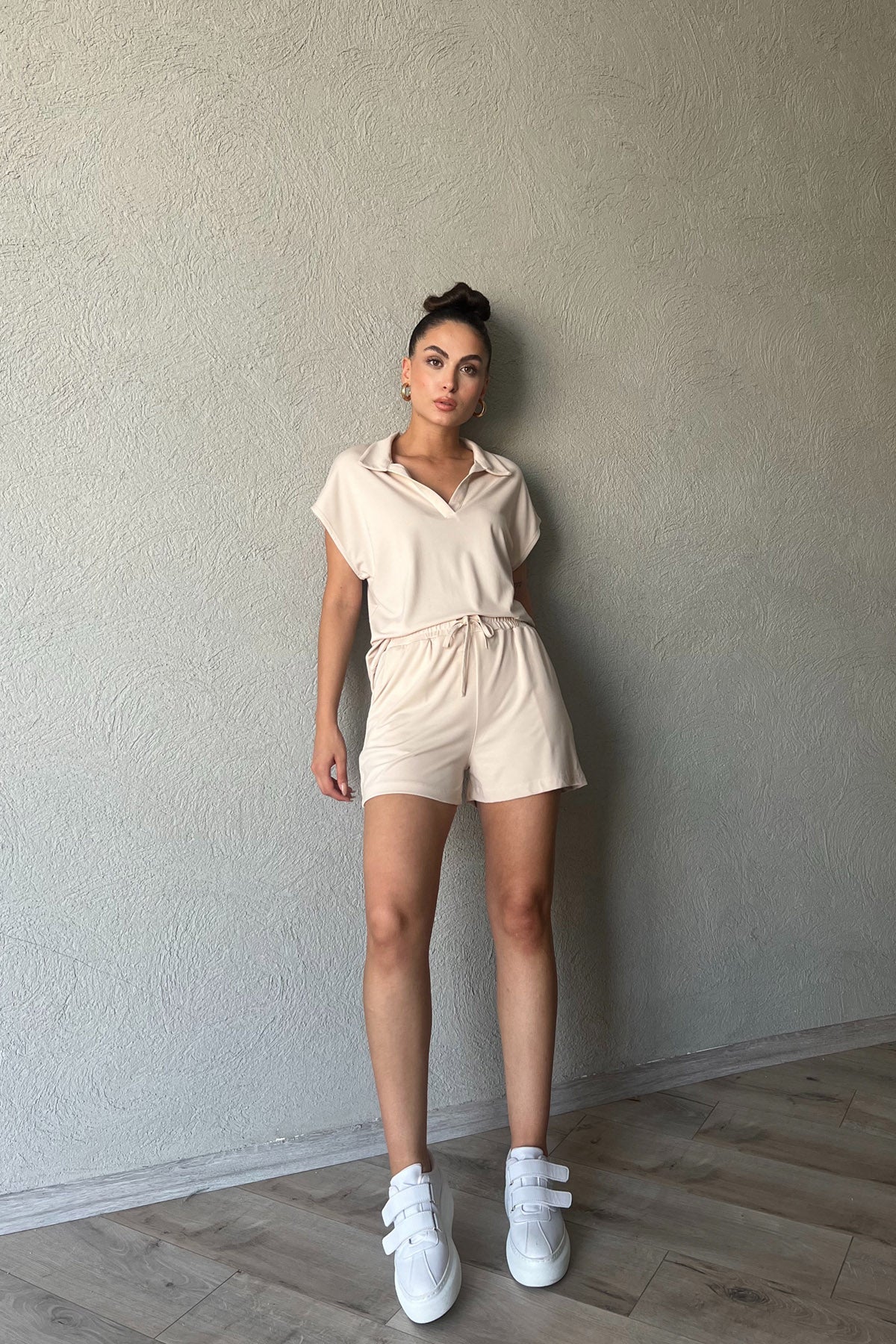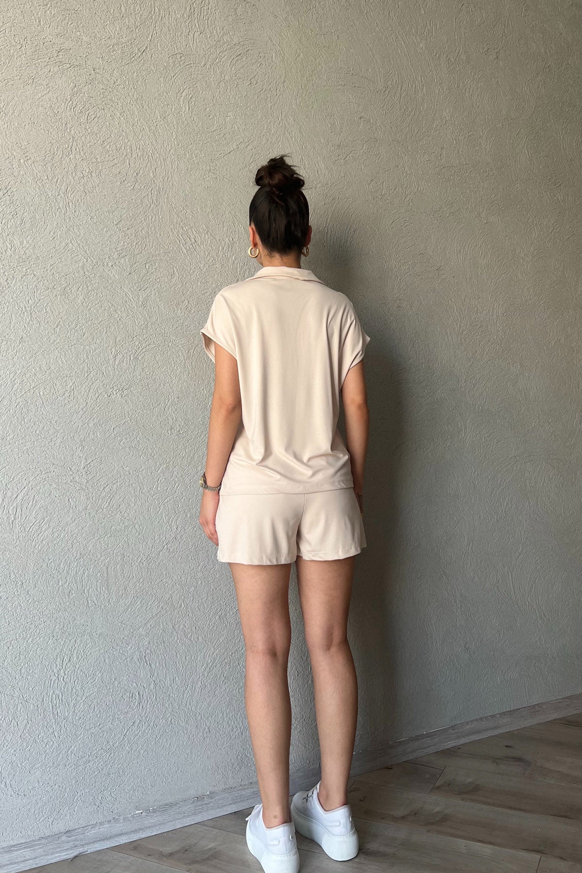 Bej Marka Model T-shirt Şort Takım SY-2254-Bej
