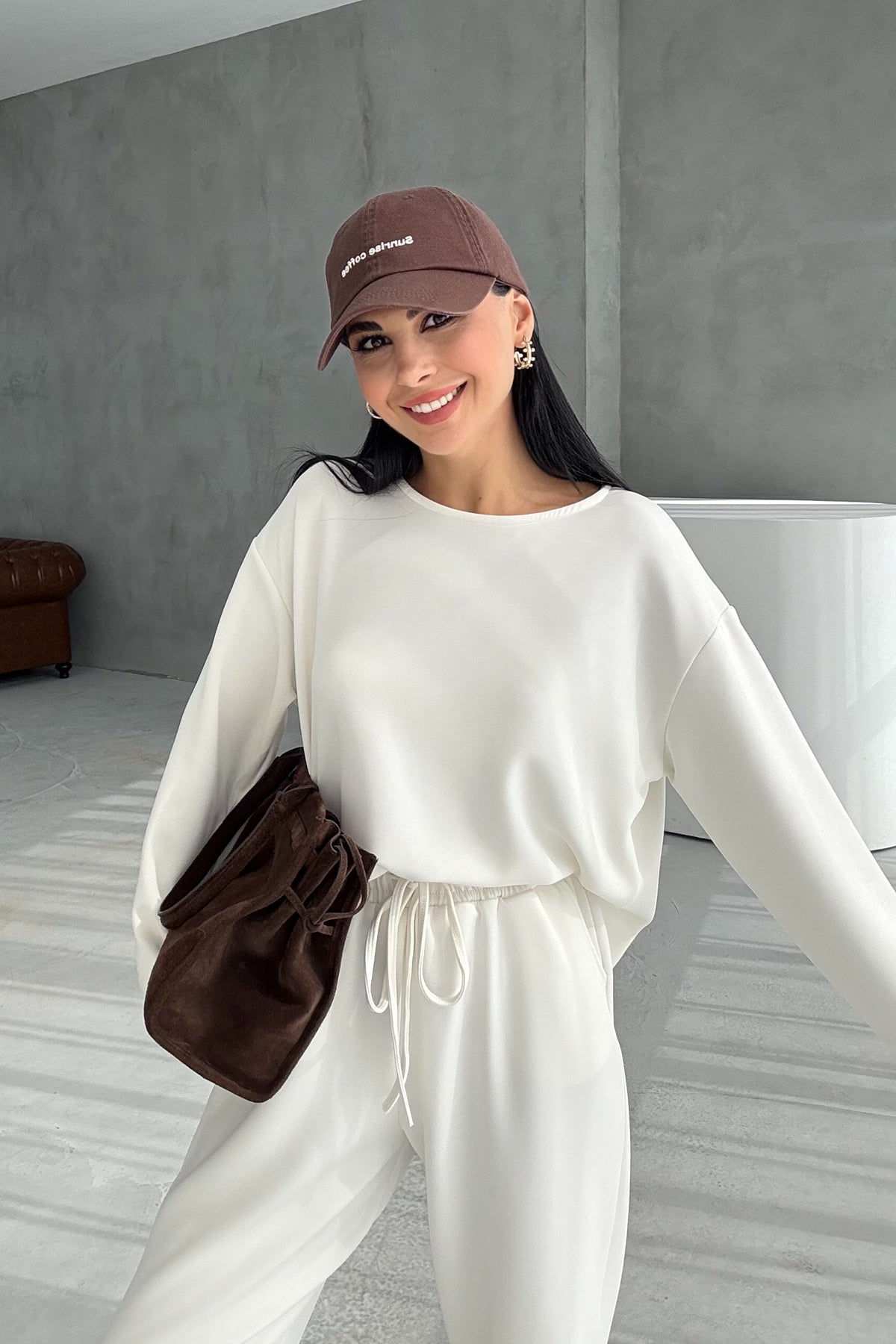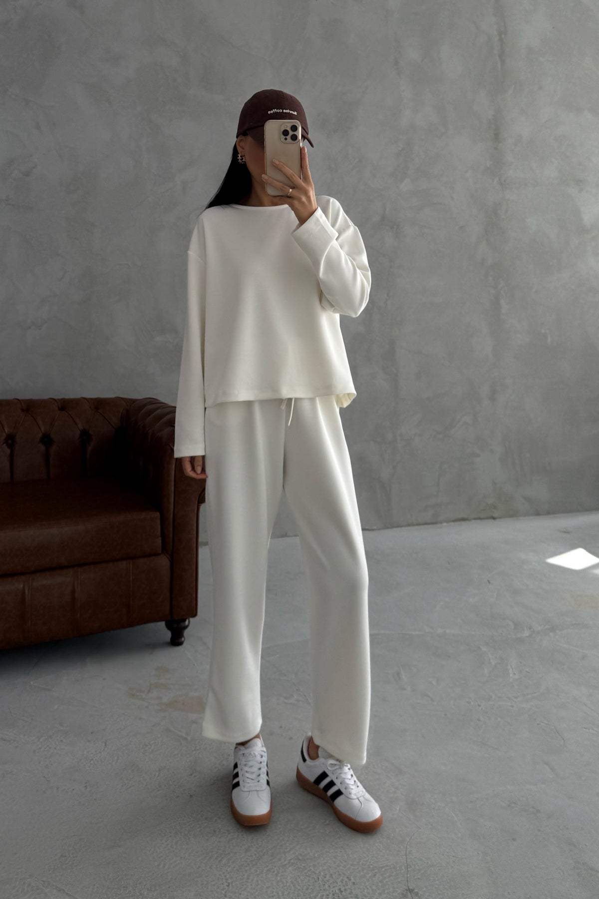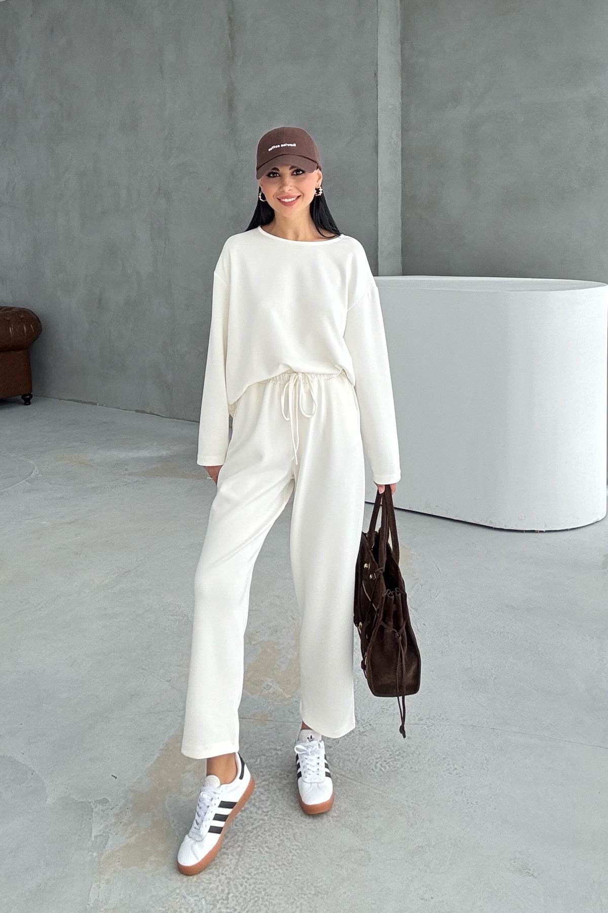 Ekru Uzun Kollu Beli Lastikli Modal Takım SY-3383-Ekru