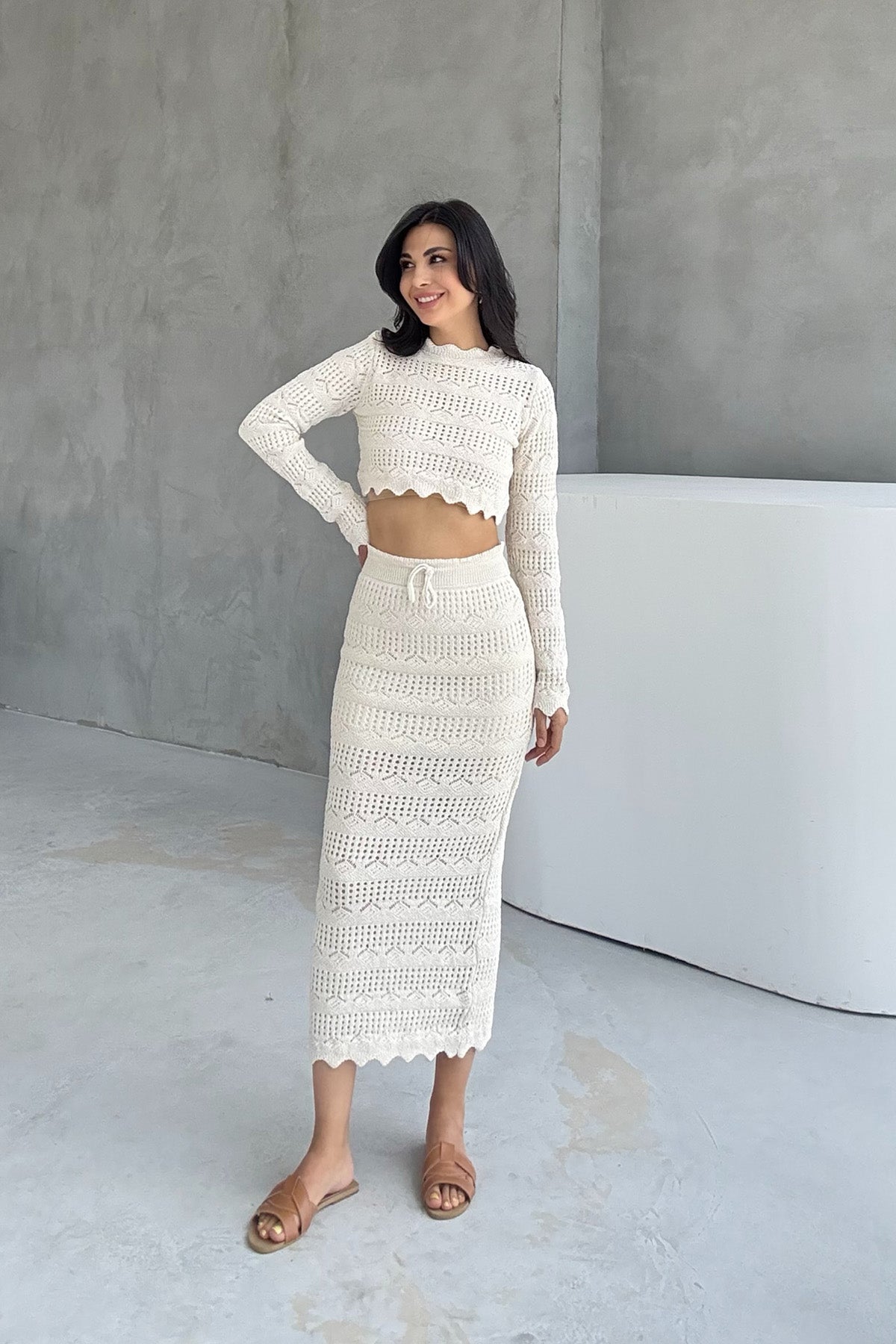 Ekru Uzun Kollu Bluz Etek Takım SY-0743- Ekru