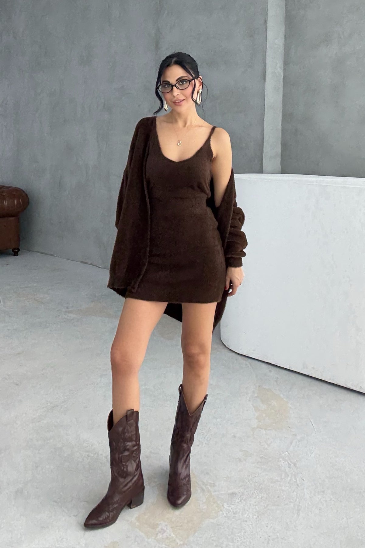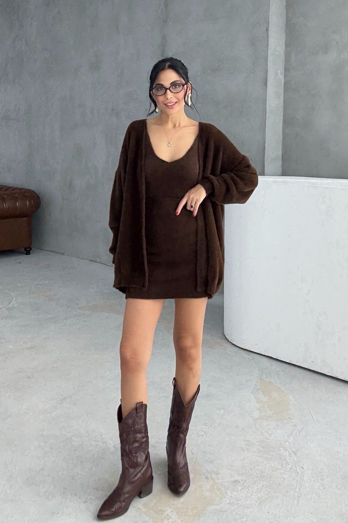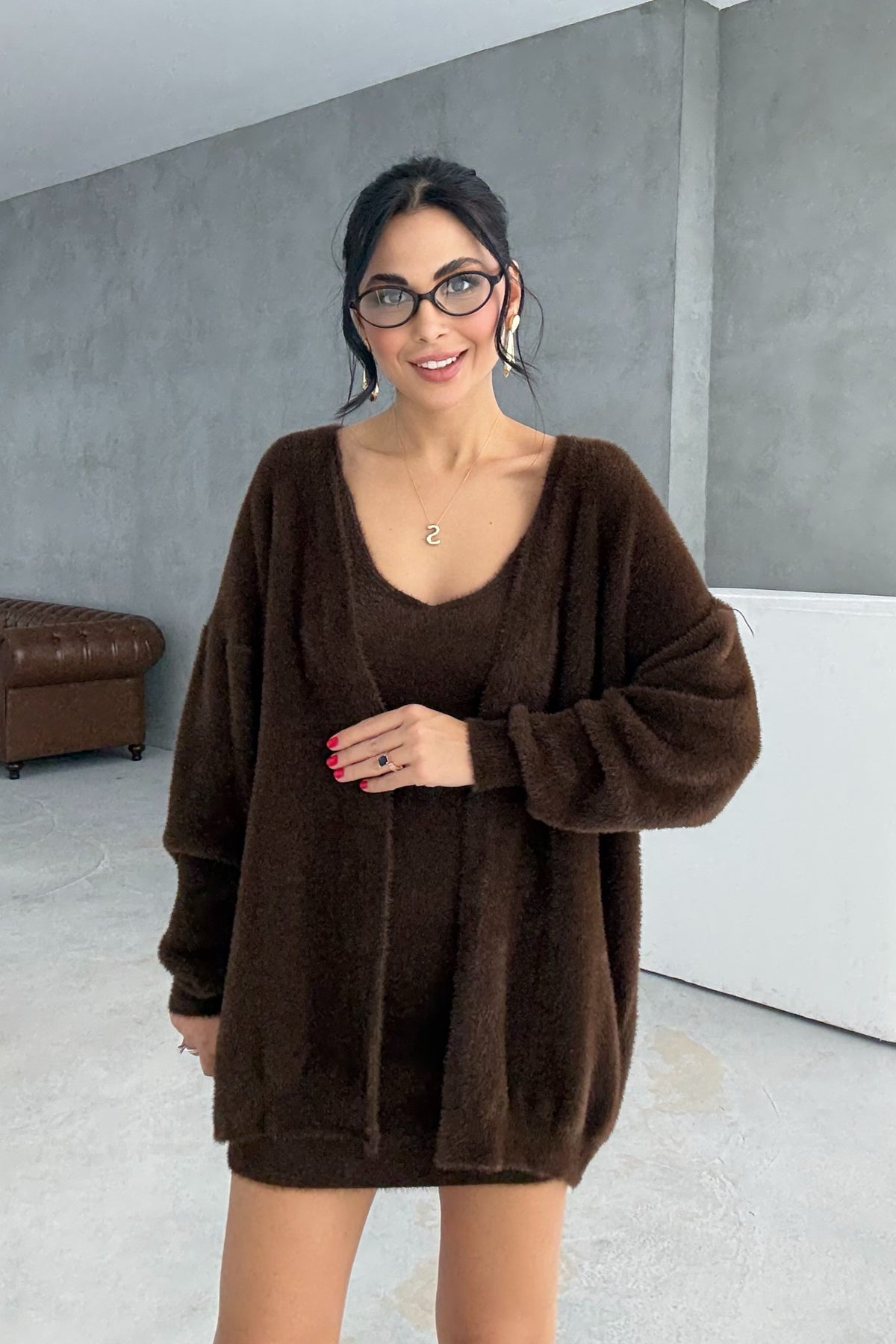 Ürün Detayları; Kahverengi Yumoş 3'lü Etekli Takım