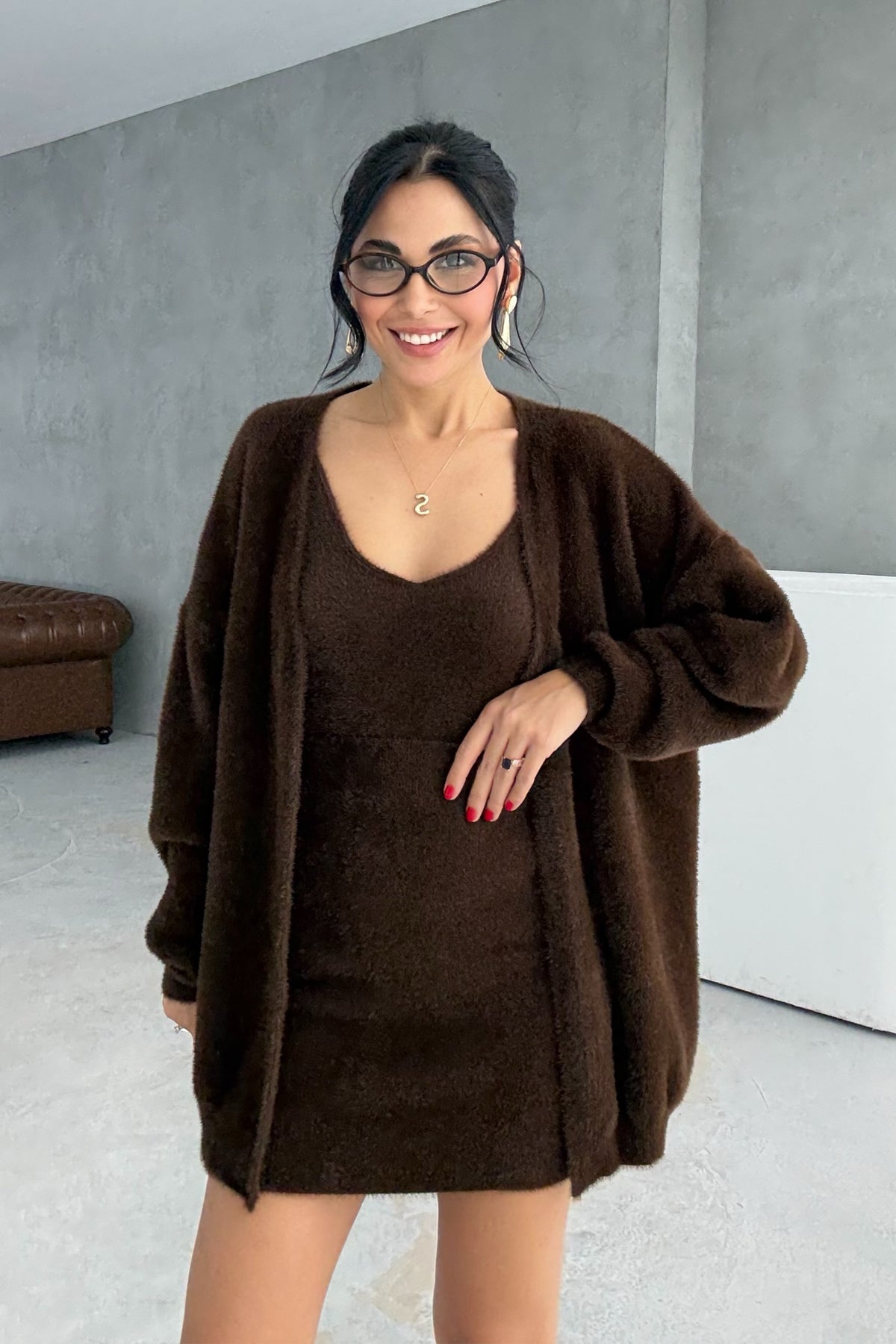 Kahverengi Yumoş 3'lü Etekli Takım SY-3441-Kahverengi