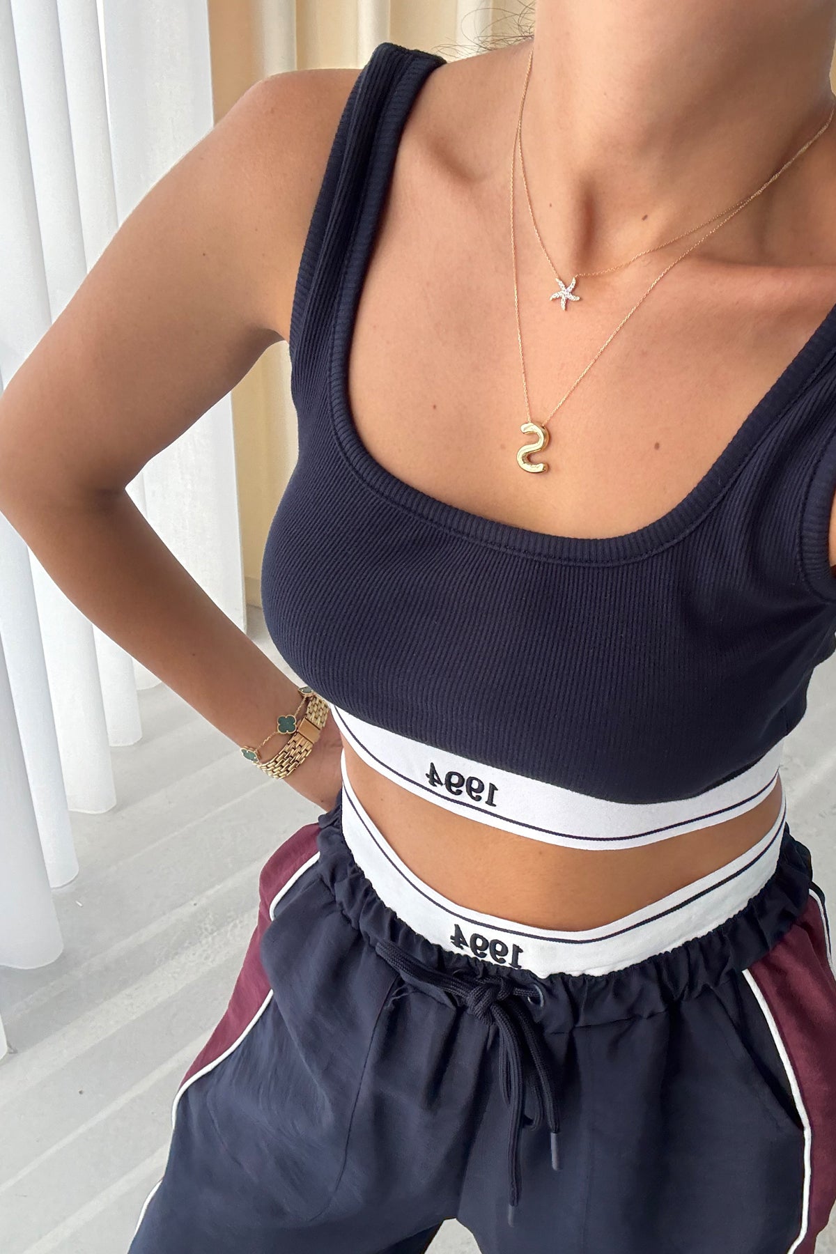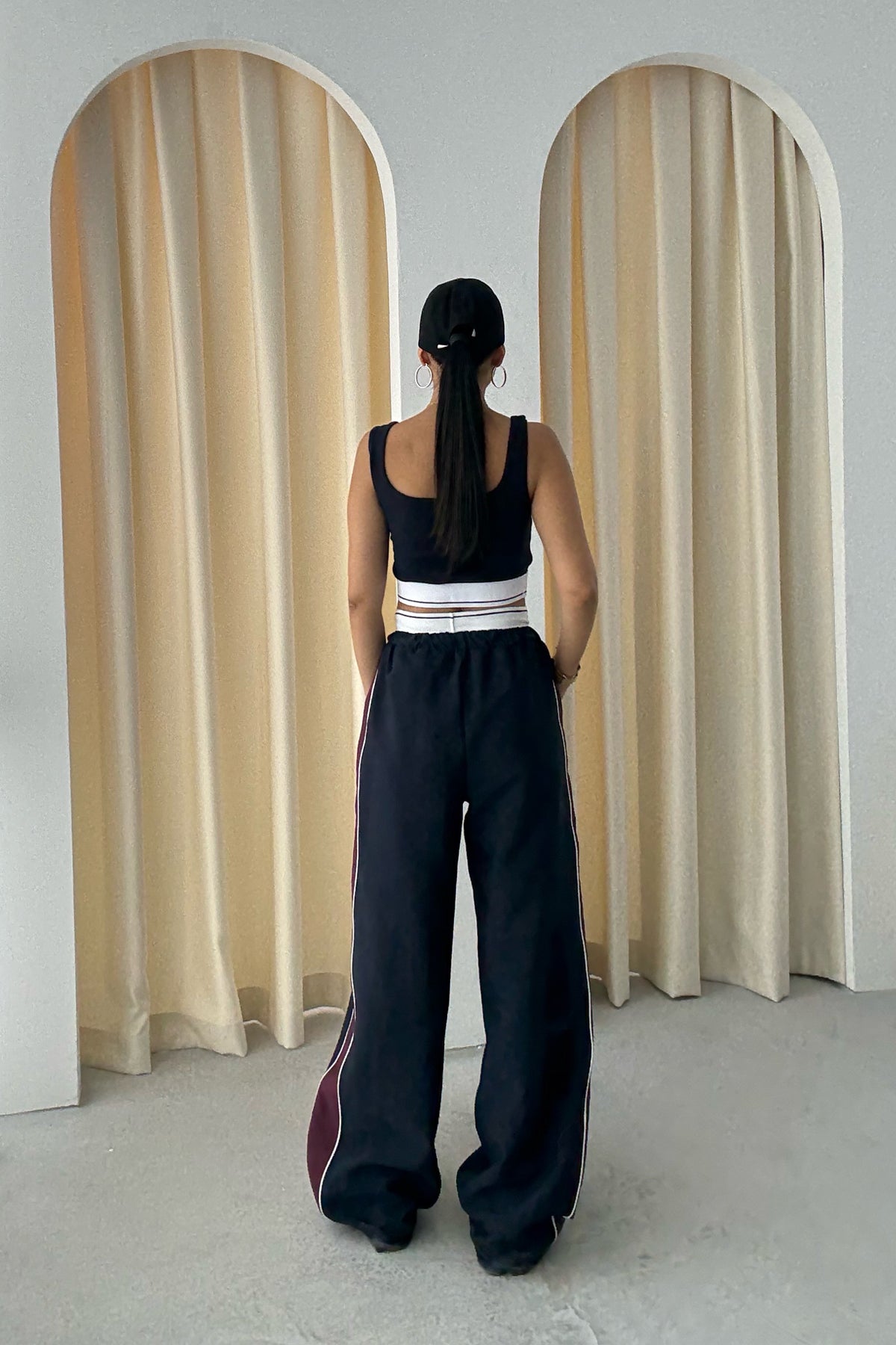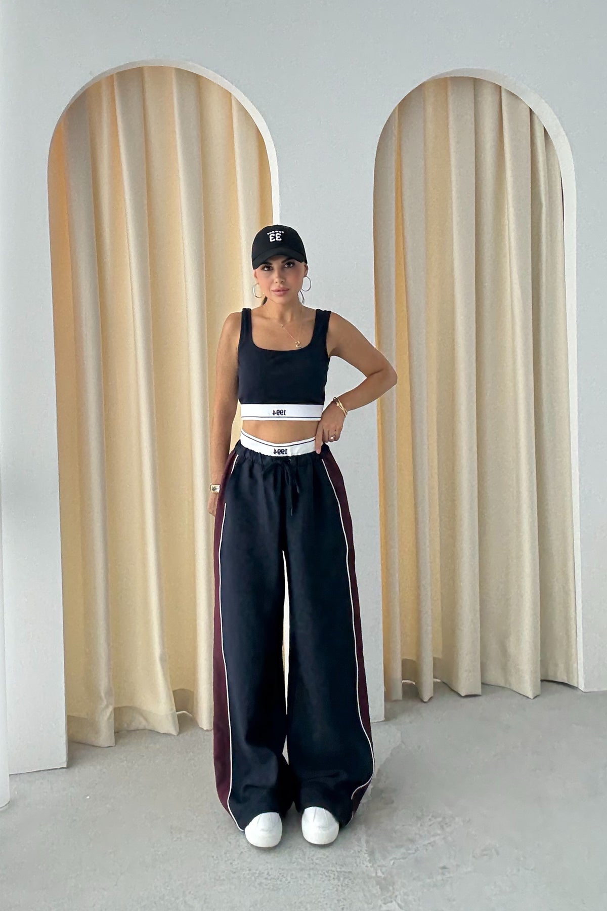 Lacivert Beli Ribanalı Şerit Detaylı Bol Paça Pantolon Bustiyer Takım SY-3319-Lacivert