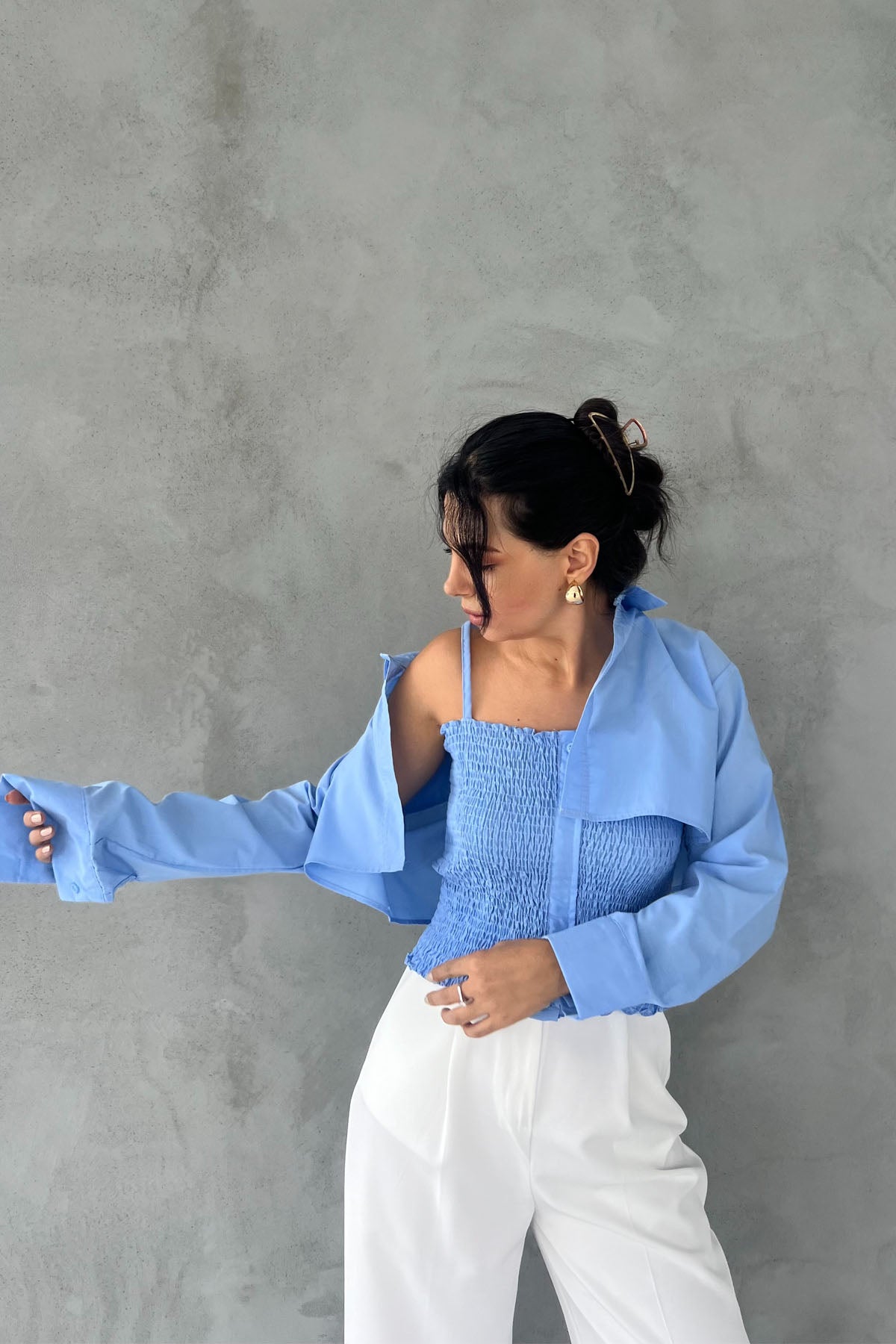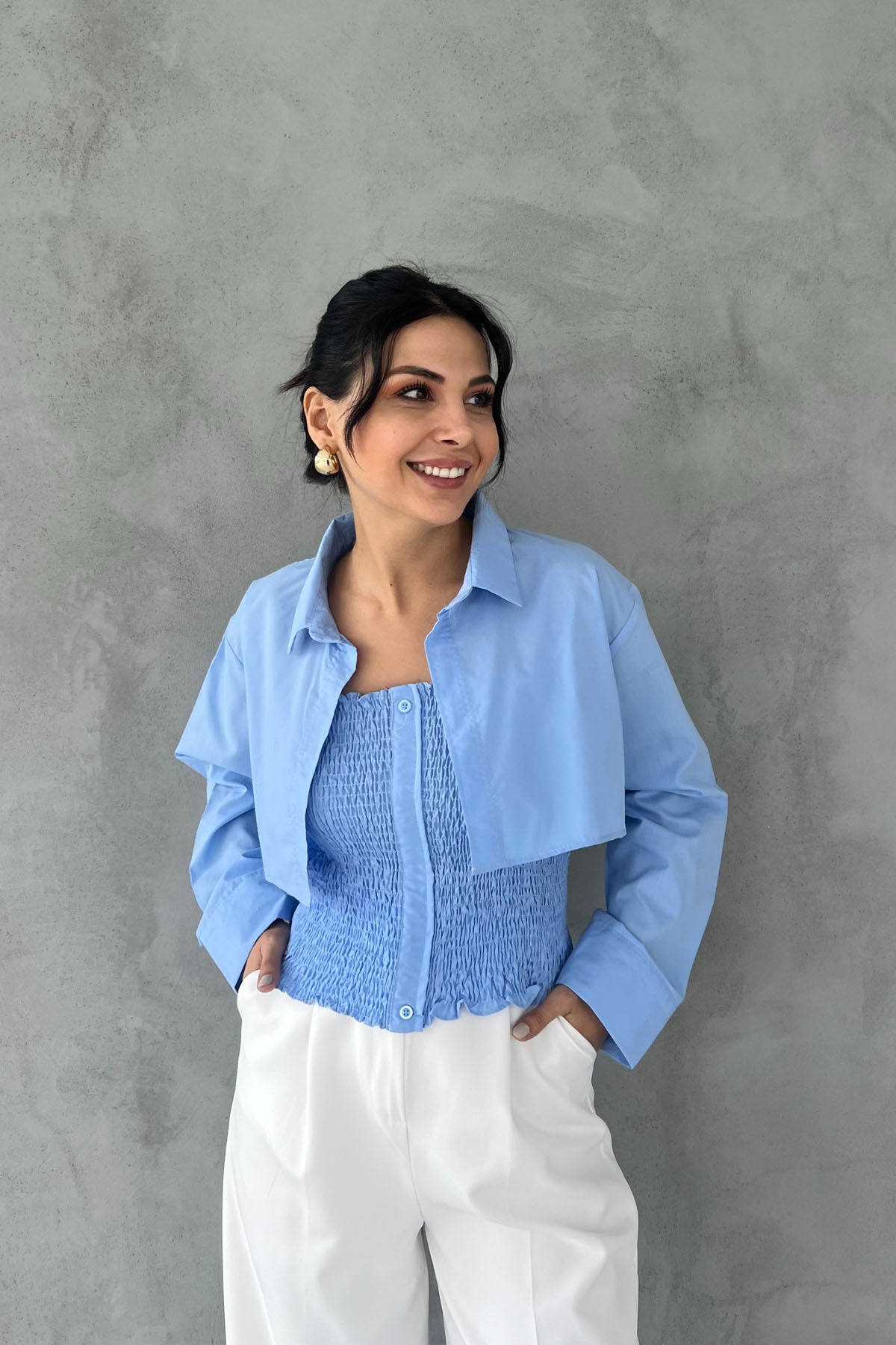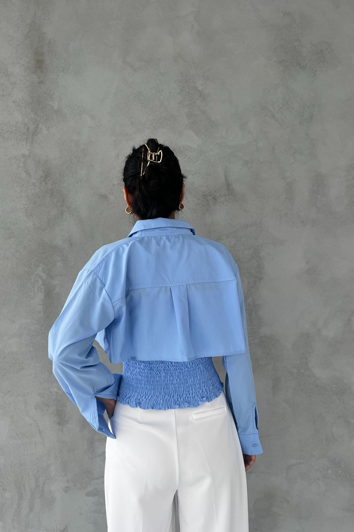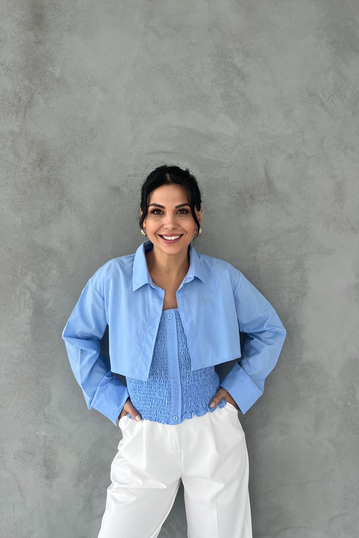 Mavi Gipeli Crop Gömlek Poplin Takım SY-2466-Mavi