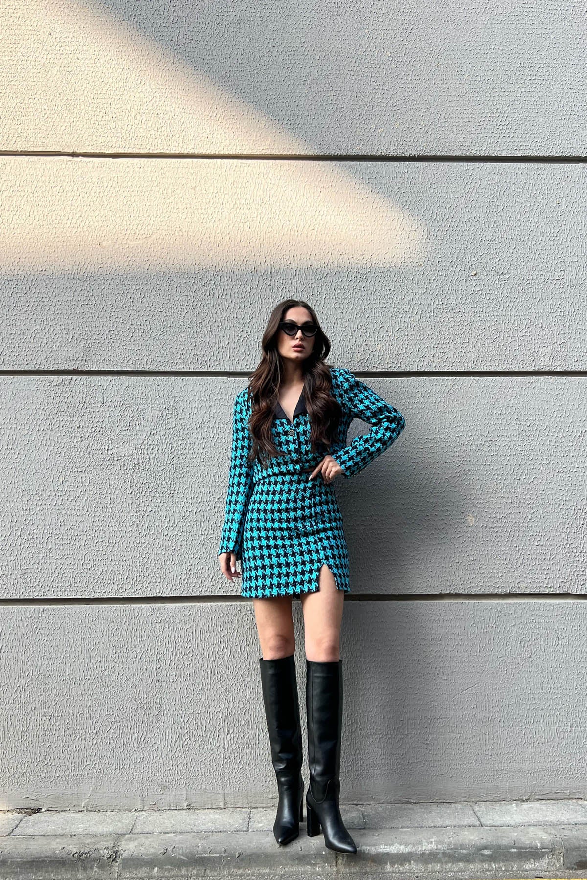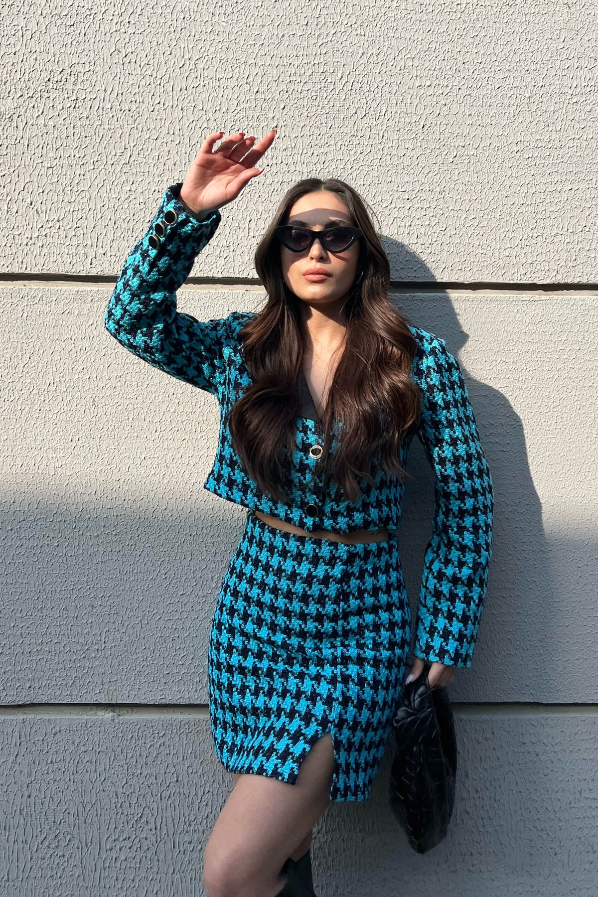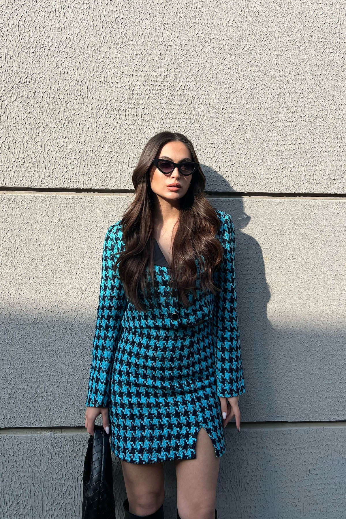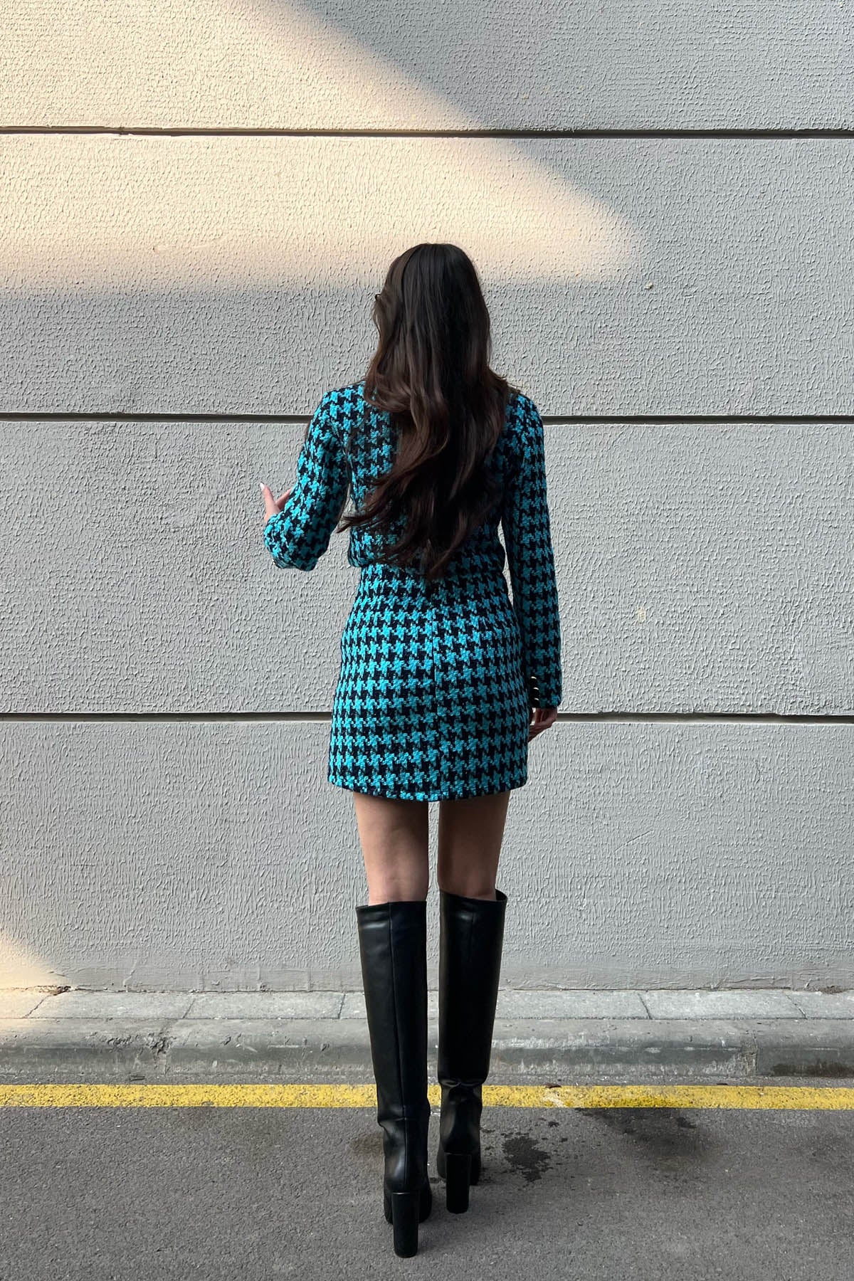 Ürün Detayları ; Etek ve Ceket astarlıdır.Kolları düğmeli ceketi ve küçük yırtmacı ile etek.